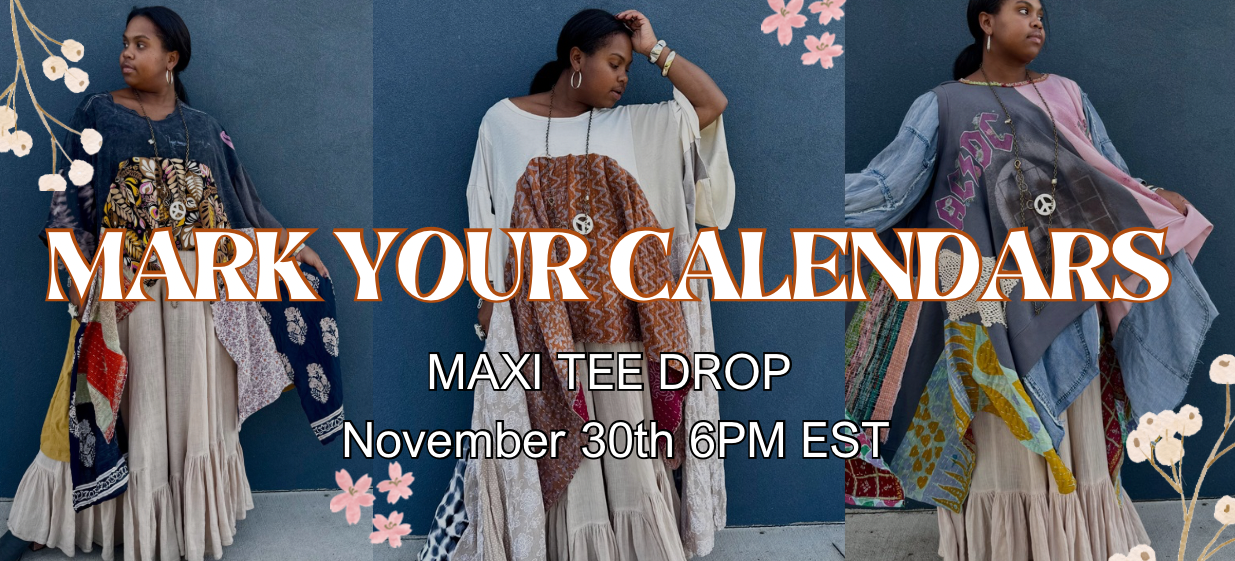 All designs are oversized because of the extra fabric we use to create each one. Most of our tees are in men’s sizing, so if you prefer a more fitted look, we suggest sizing down by one size. Our Maxi Tees come with ties on the sides, allowing you to belt them at your waist for a custom fit!