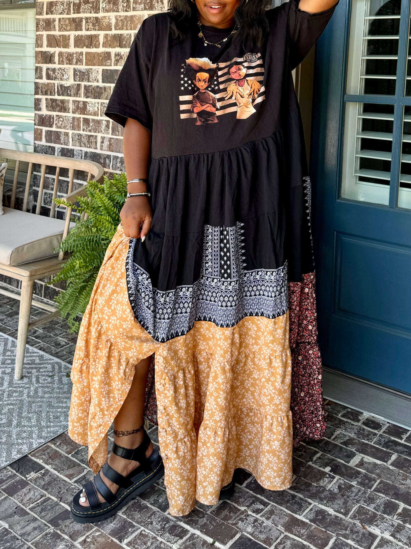 - All fabrics are hand arranged and cut into pieces to make a beautiful skirt.