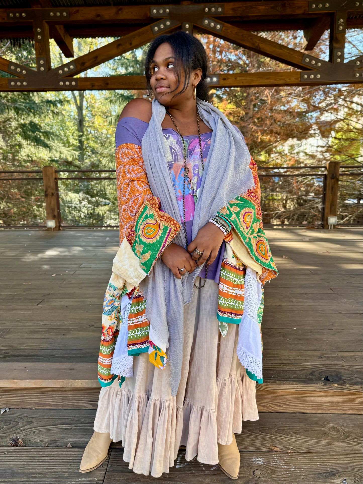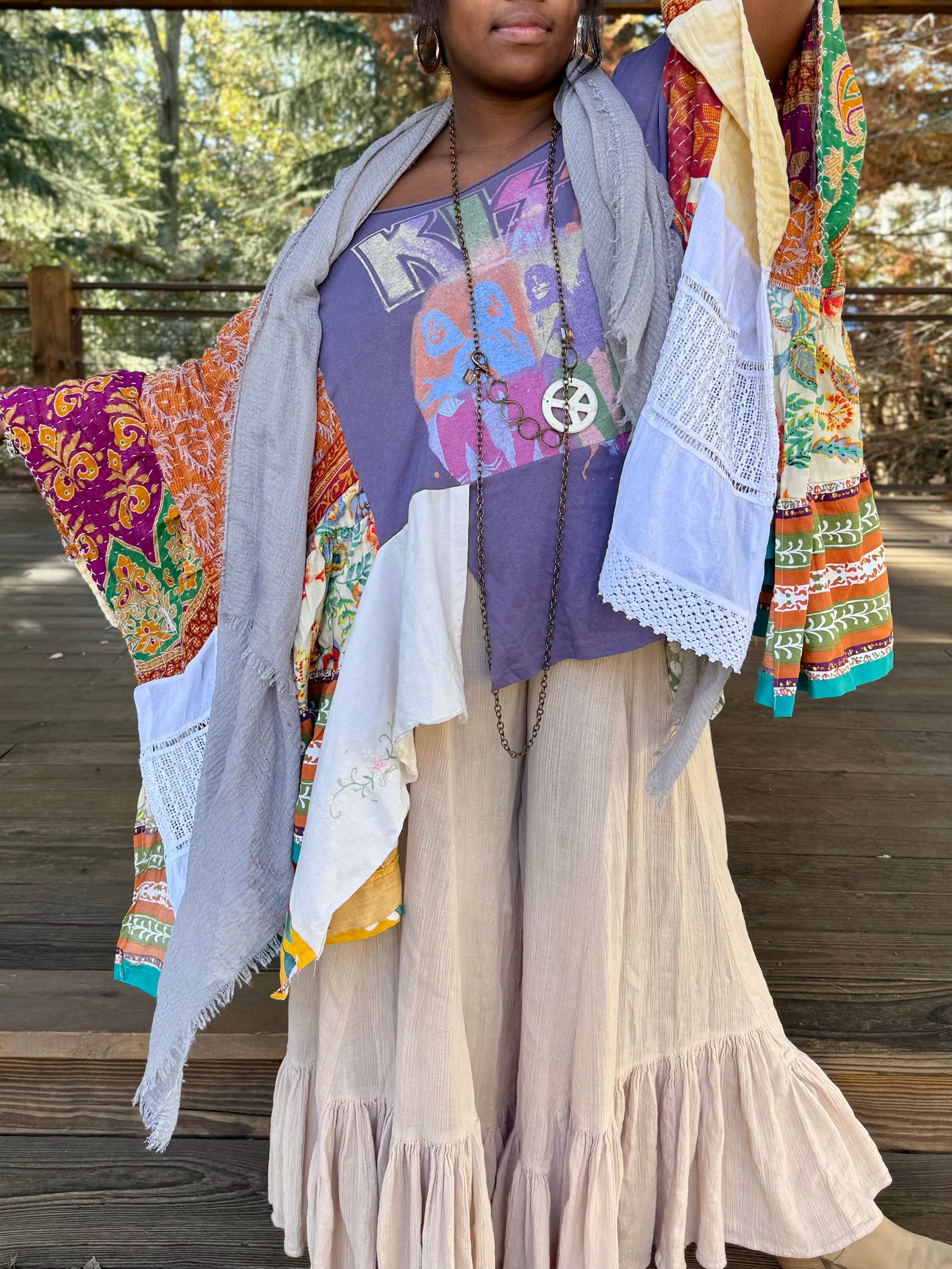 - Sierra is 5'4, usually a size large and can fit all of the poncho tees.