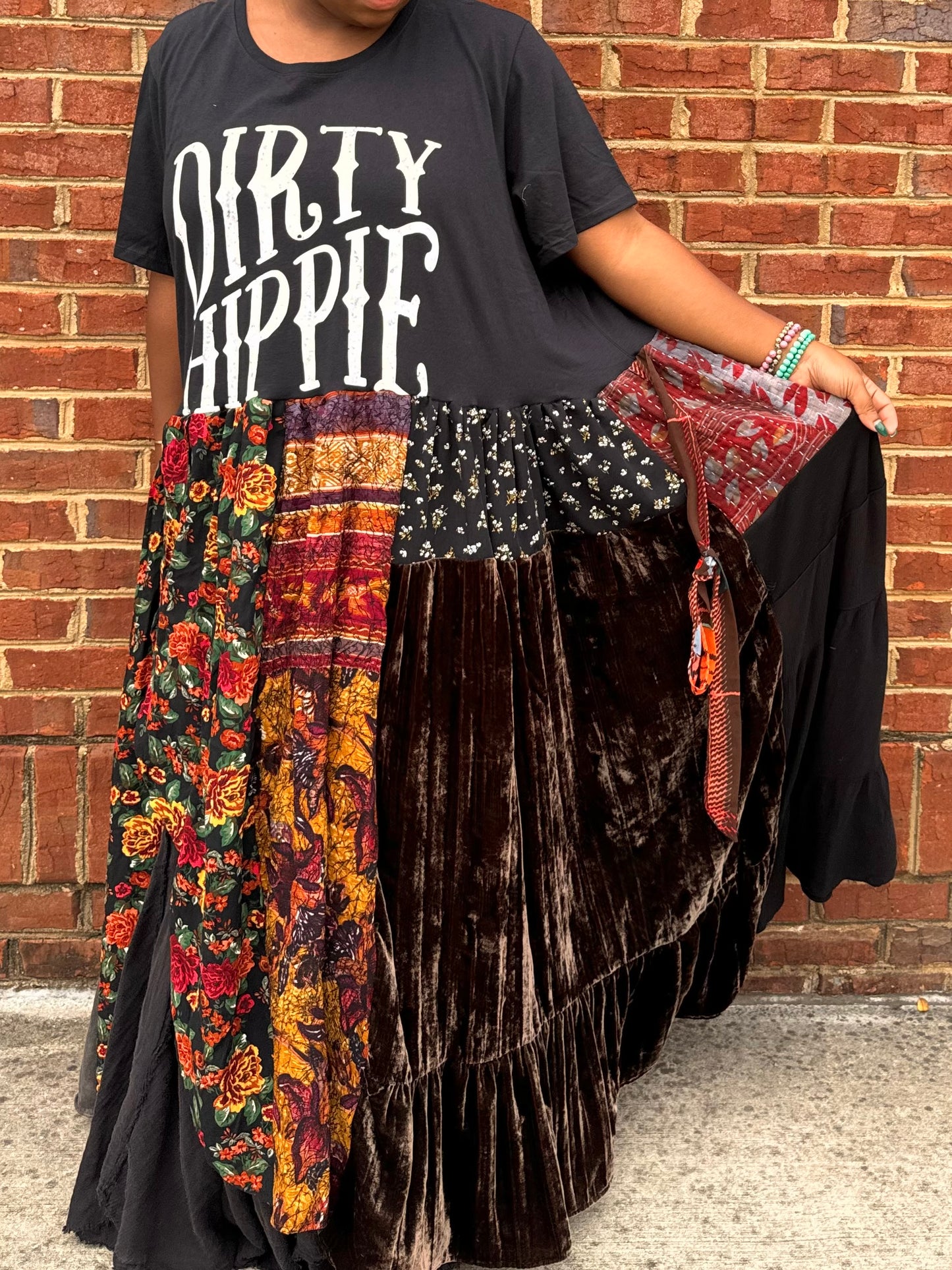 - All fabrics are hand arranged and cut into pieces to make a beautiful skirt.
