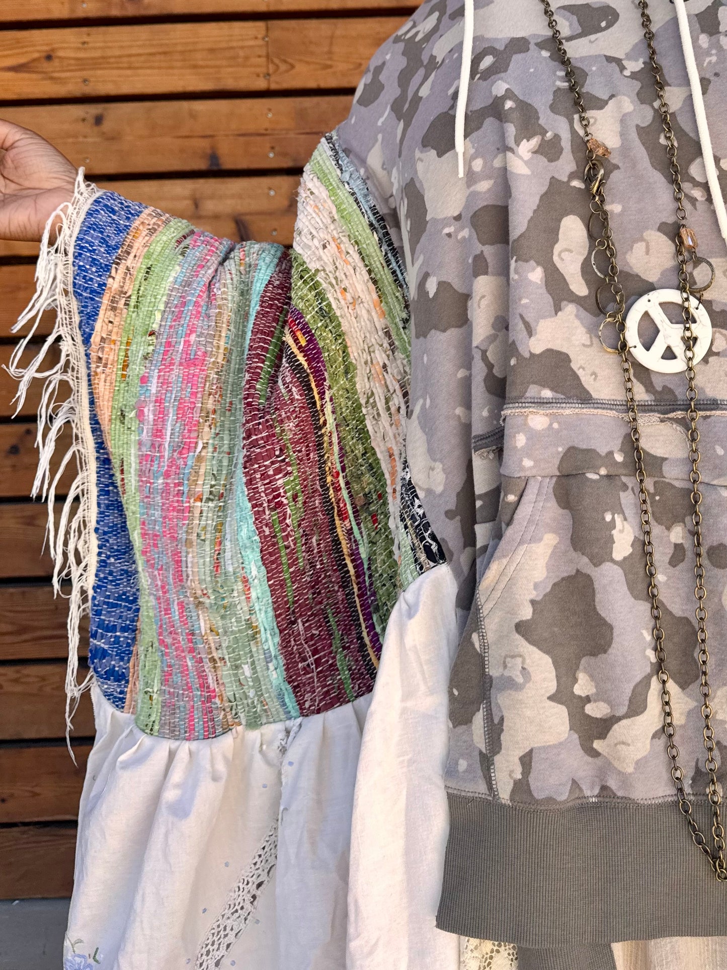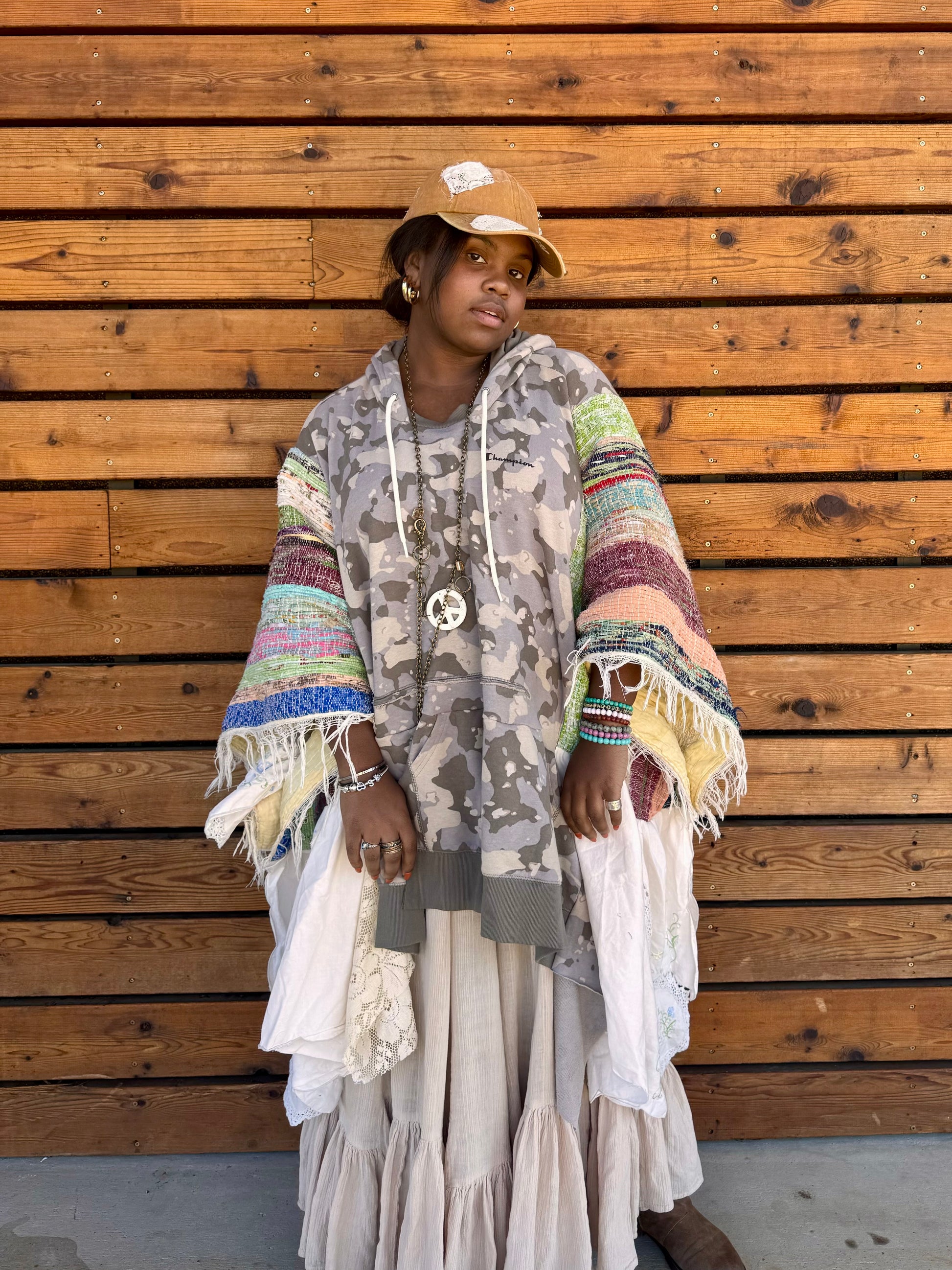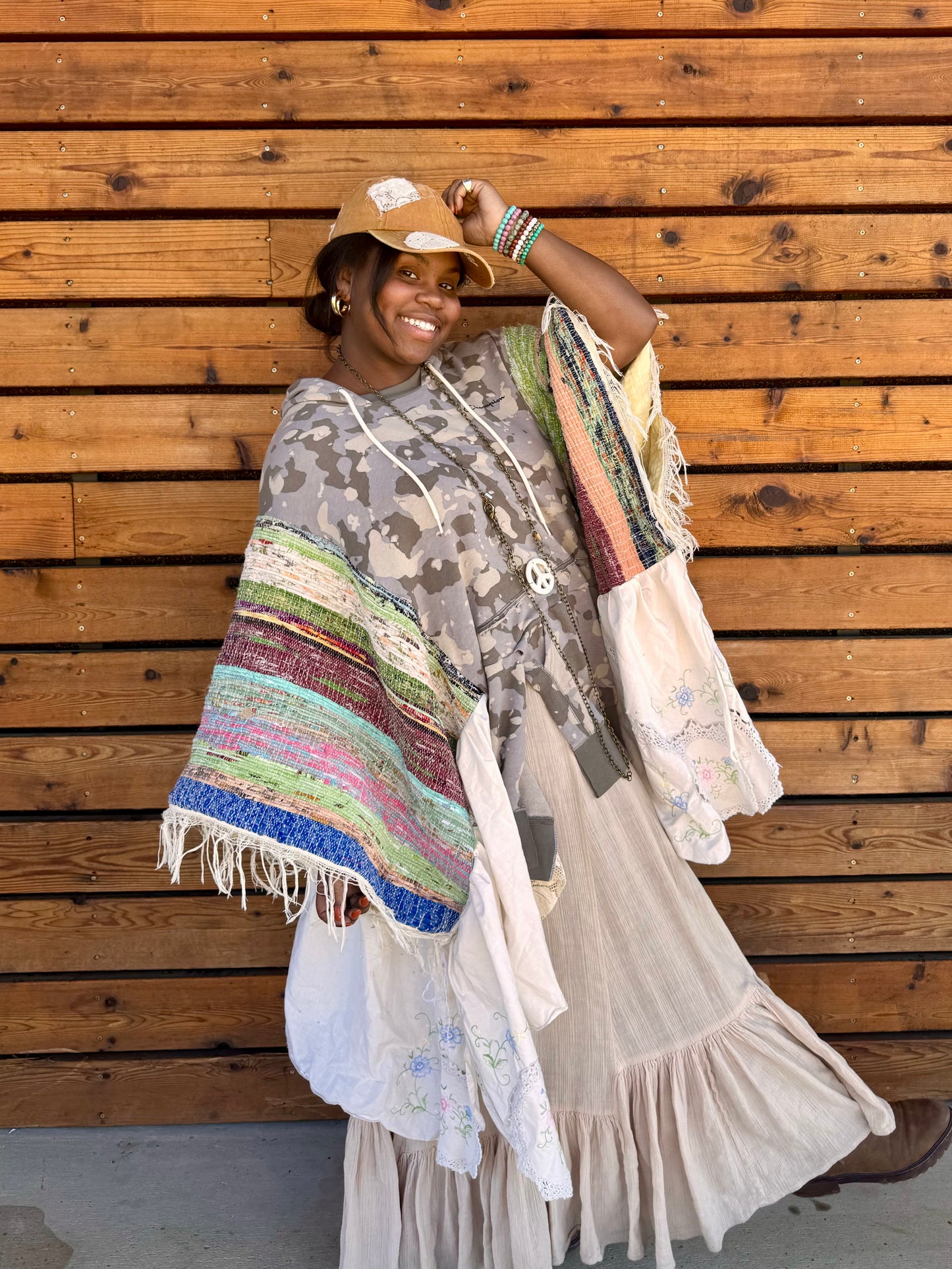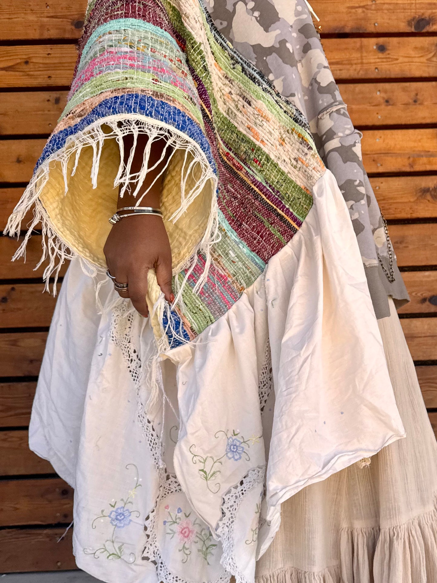 - Made with hand woven blanket.
