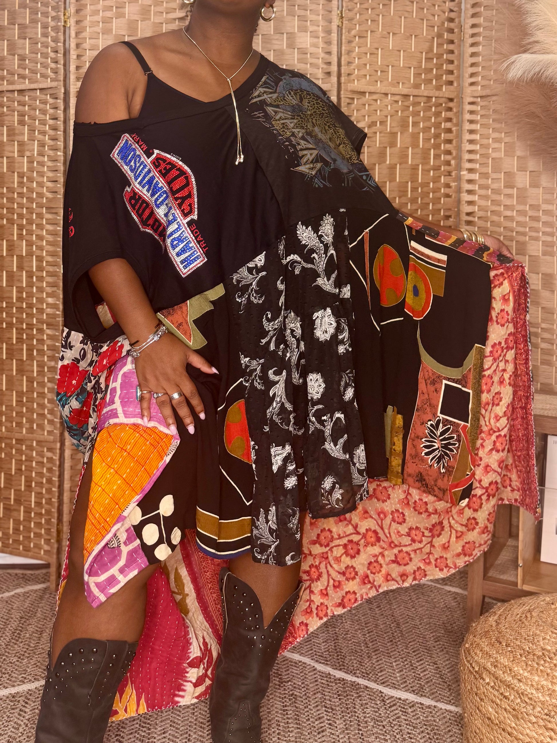 - All fabrics are hand arranged and cut into pieces to make a beautiful skirt.