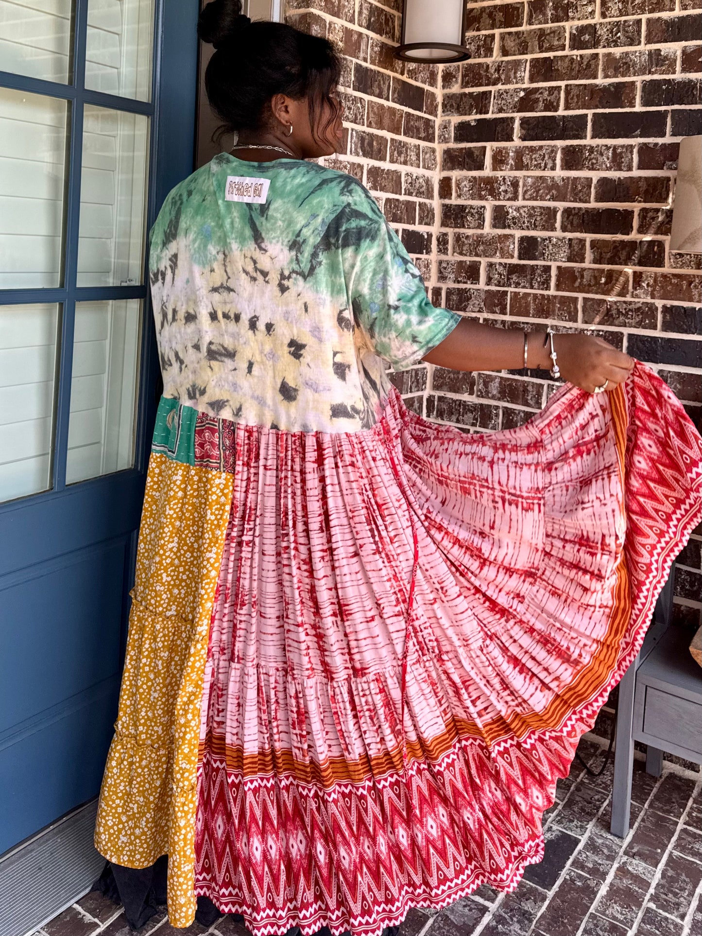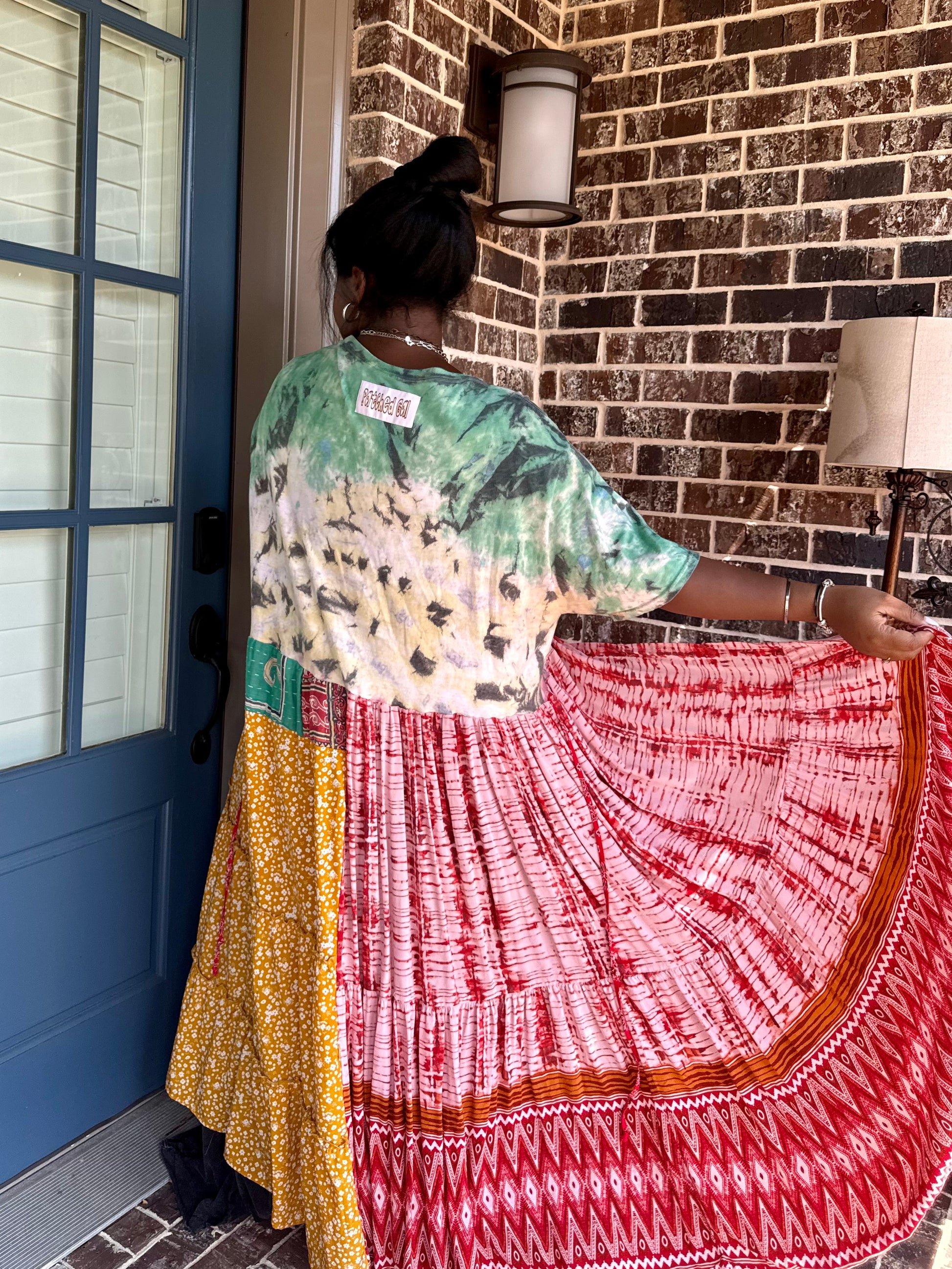 - All fabrics are hand arranged and cut into pieces to make a beautiful skirt.