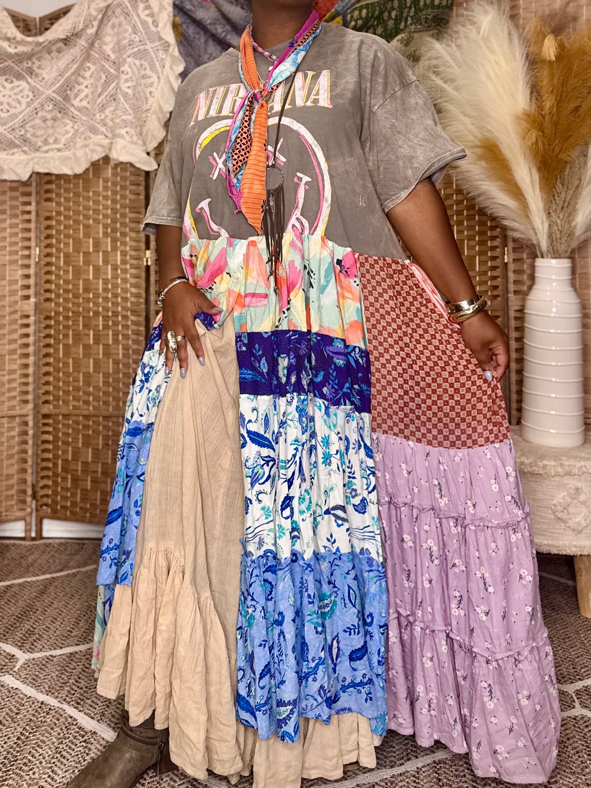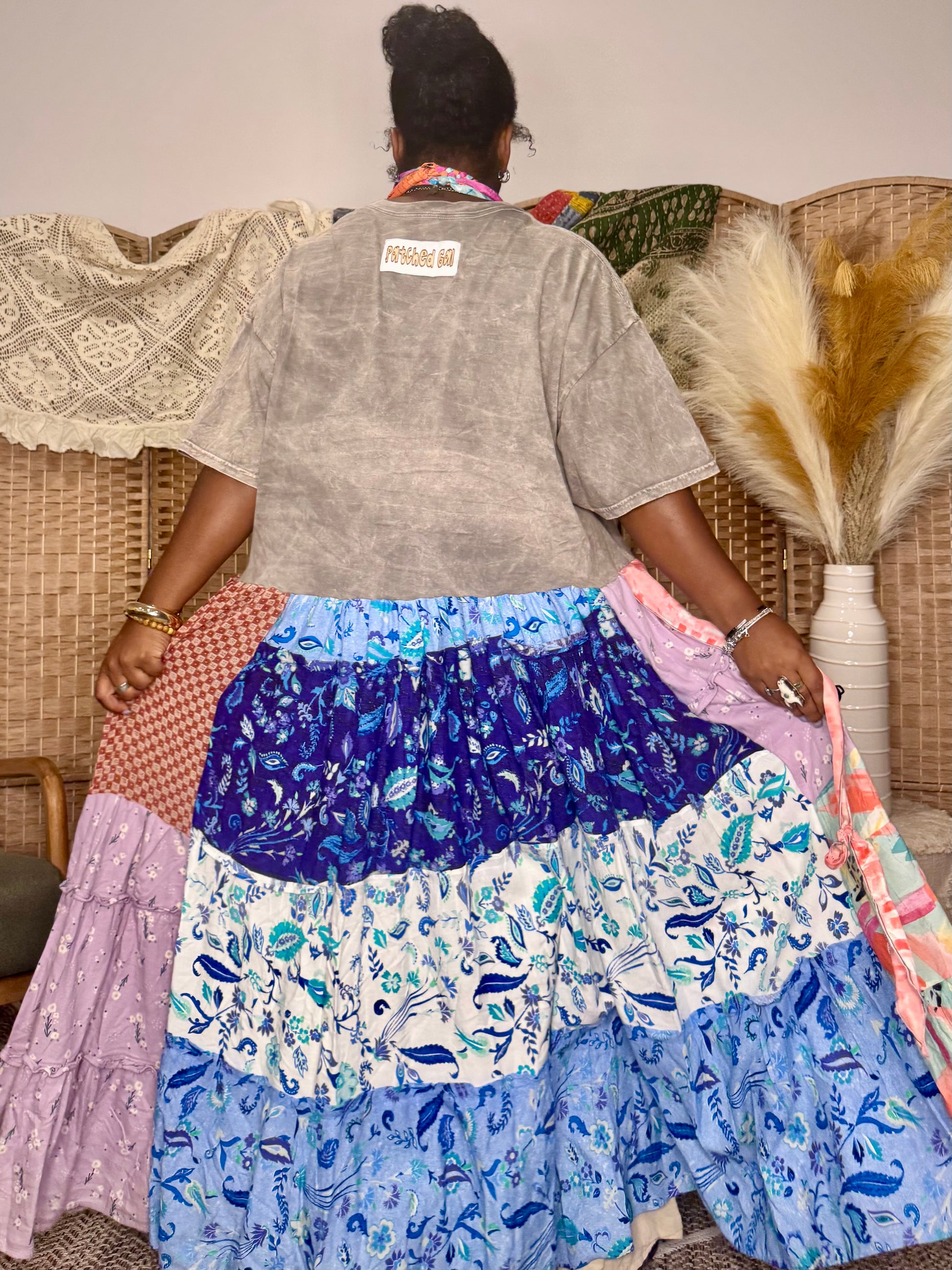 - All fabrics are hand arranged and cut into pieces to make a beautiful skirt.
