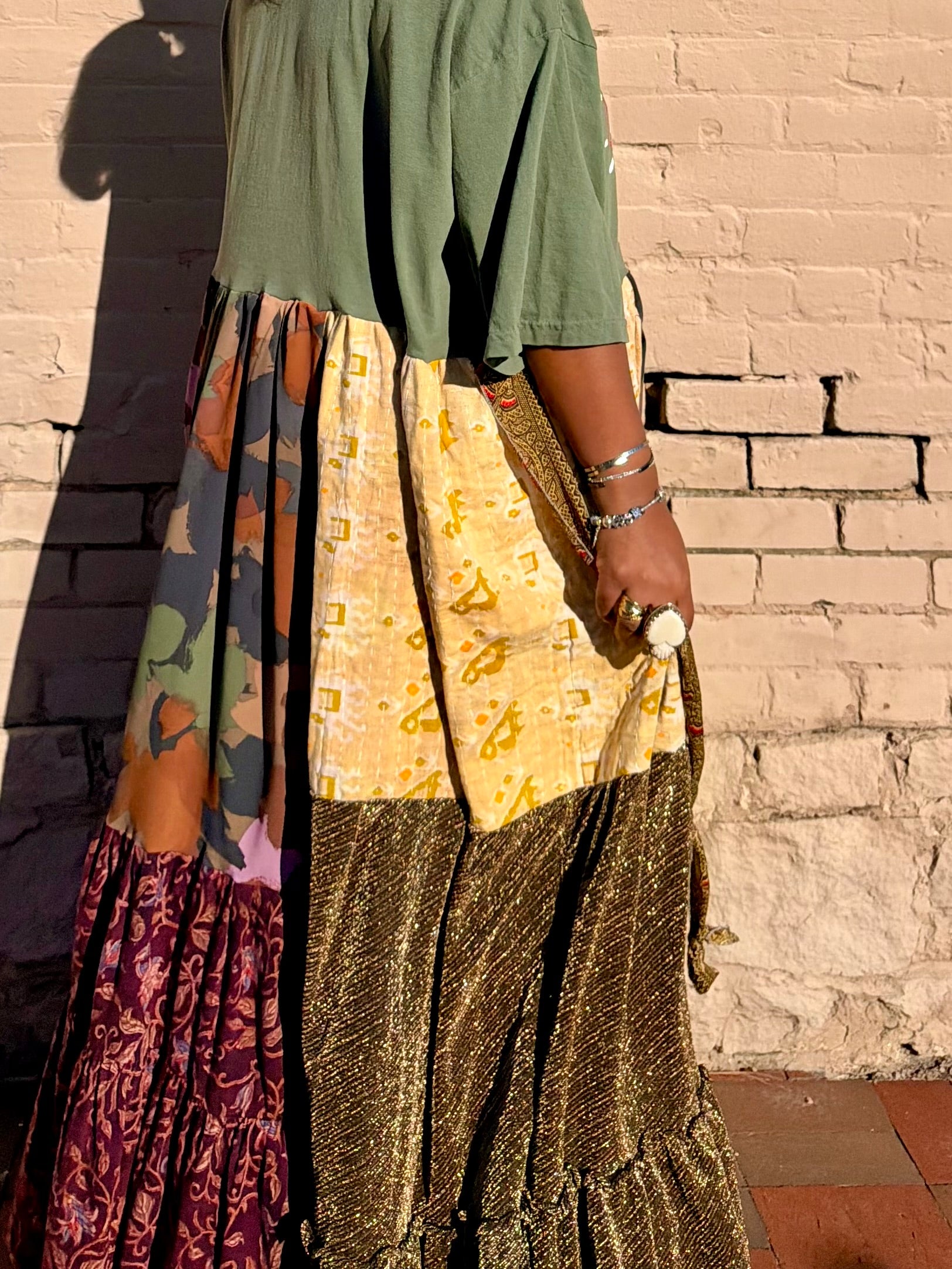 - All fabrics are hand arranged and cut into pieces to make a beautiful skirt.