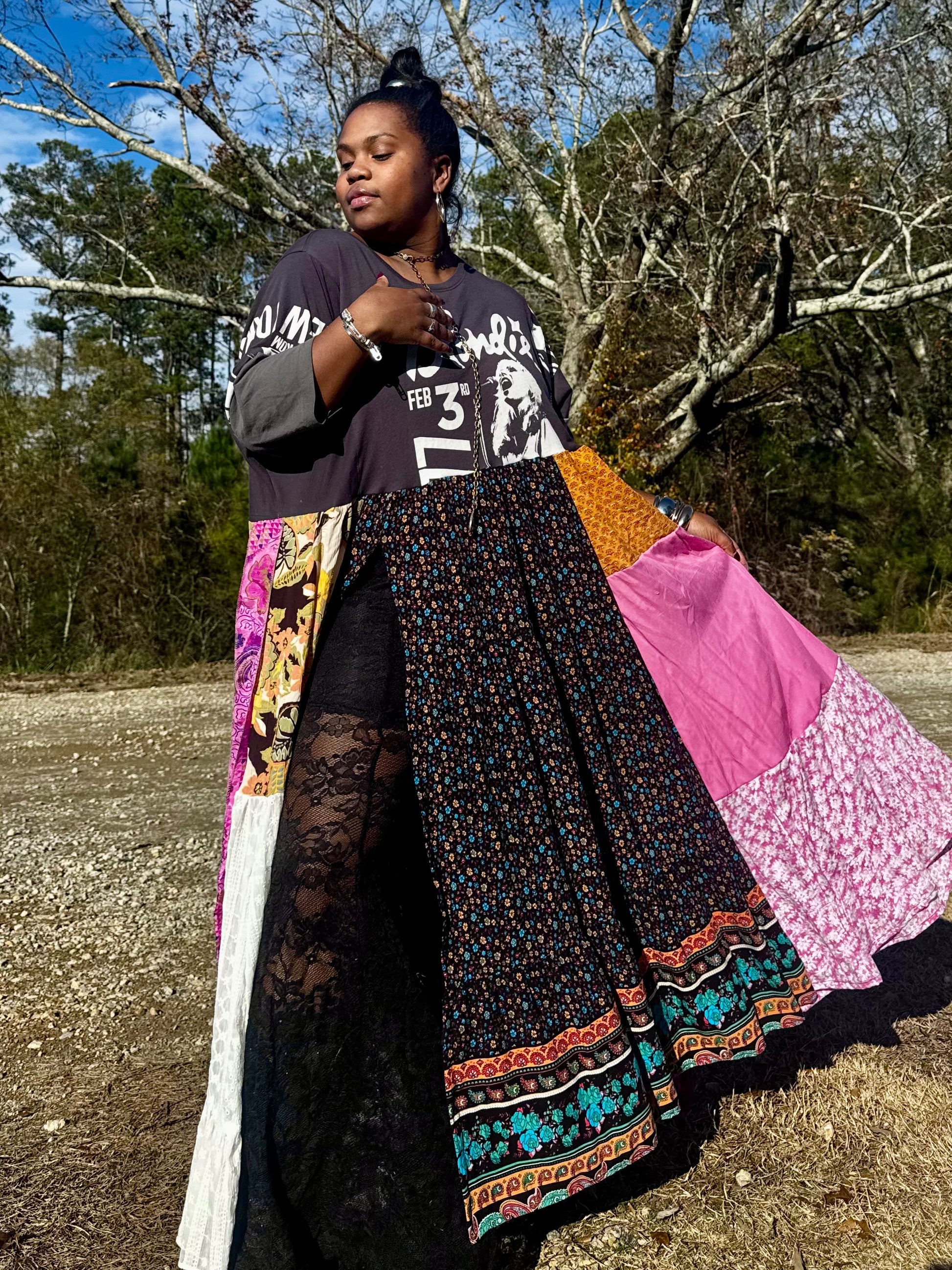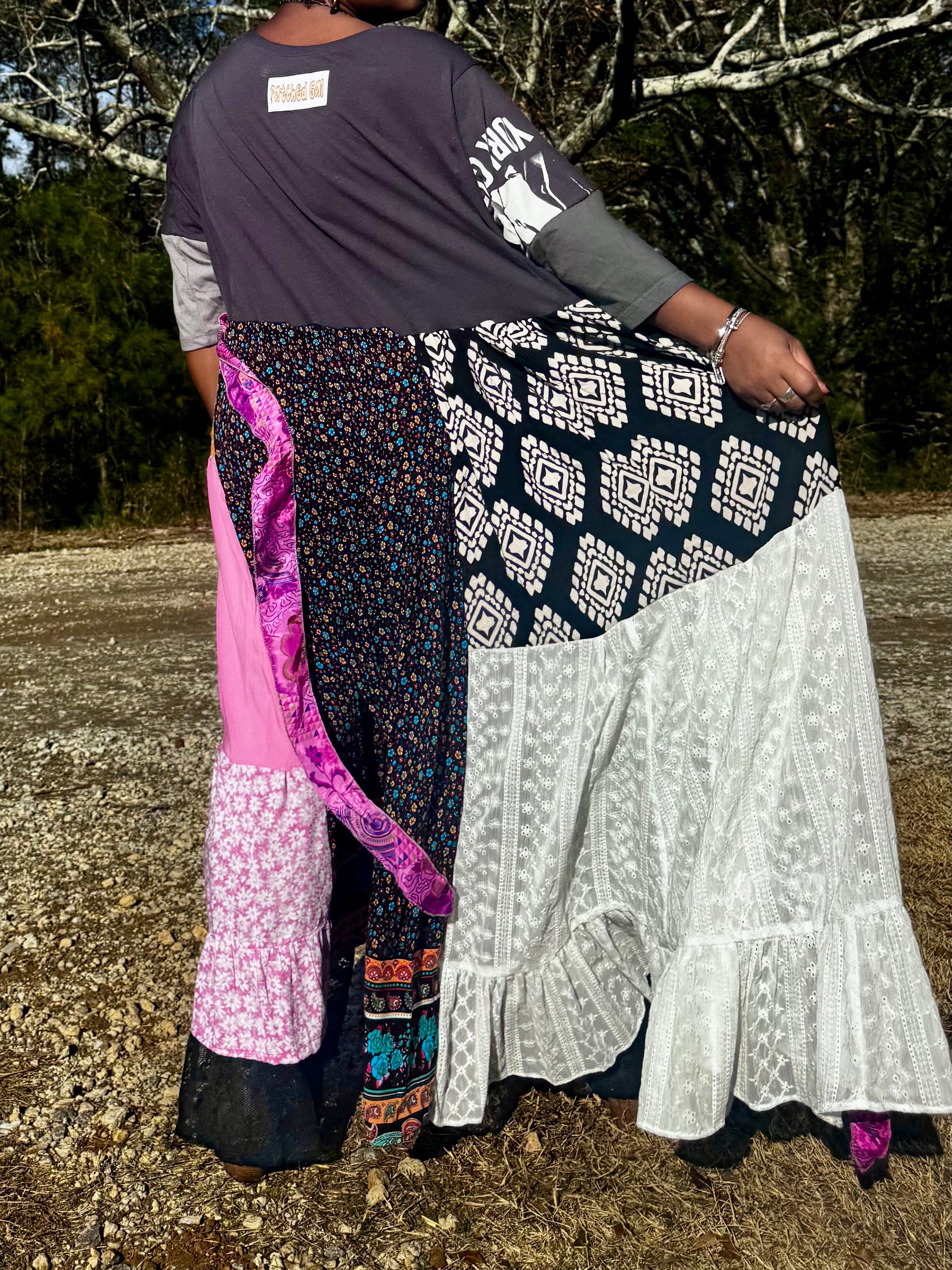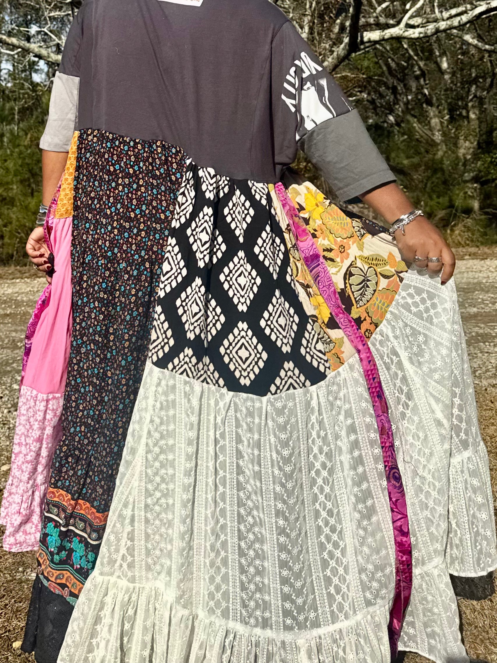 - All fabrics are hand arranged and cut into pieces to make a beautiful skirt.