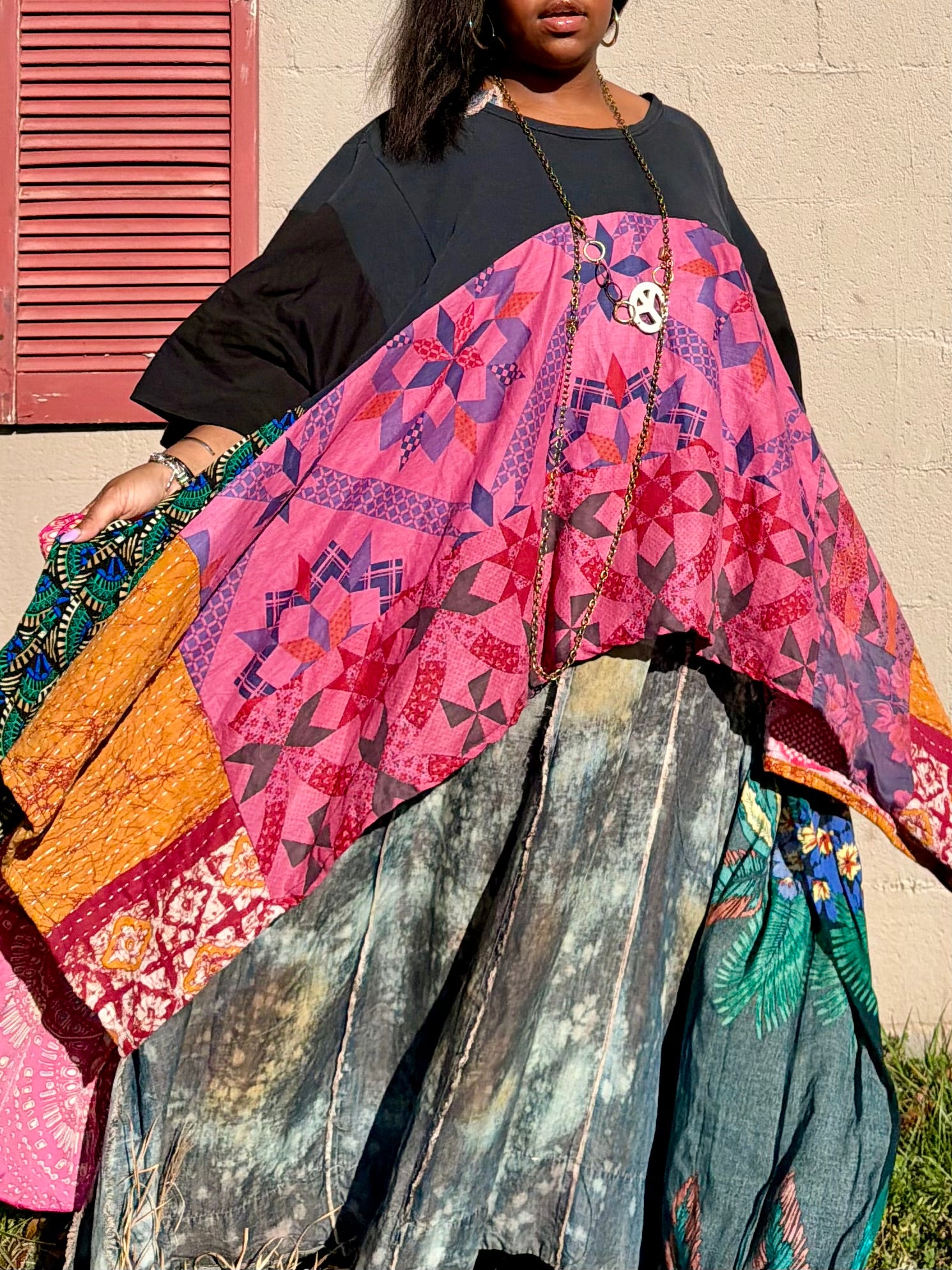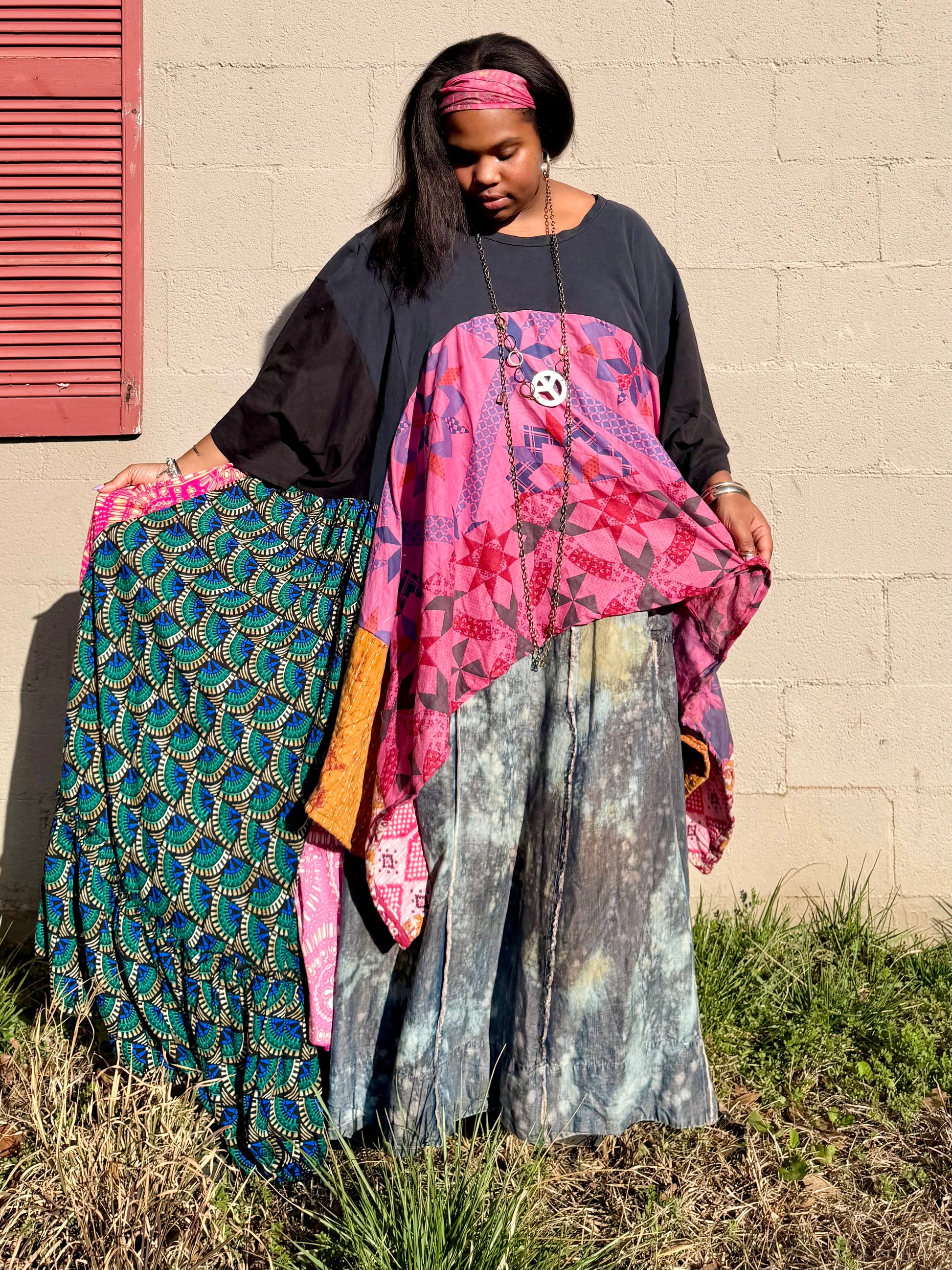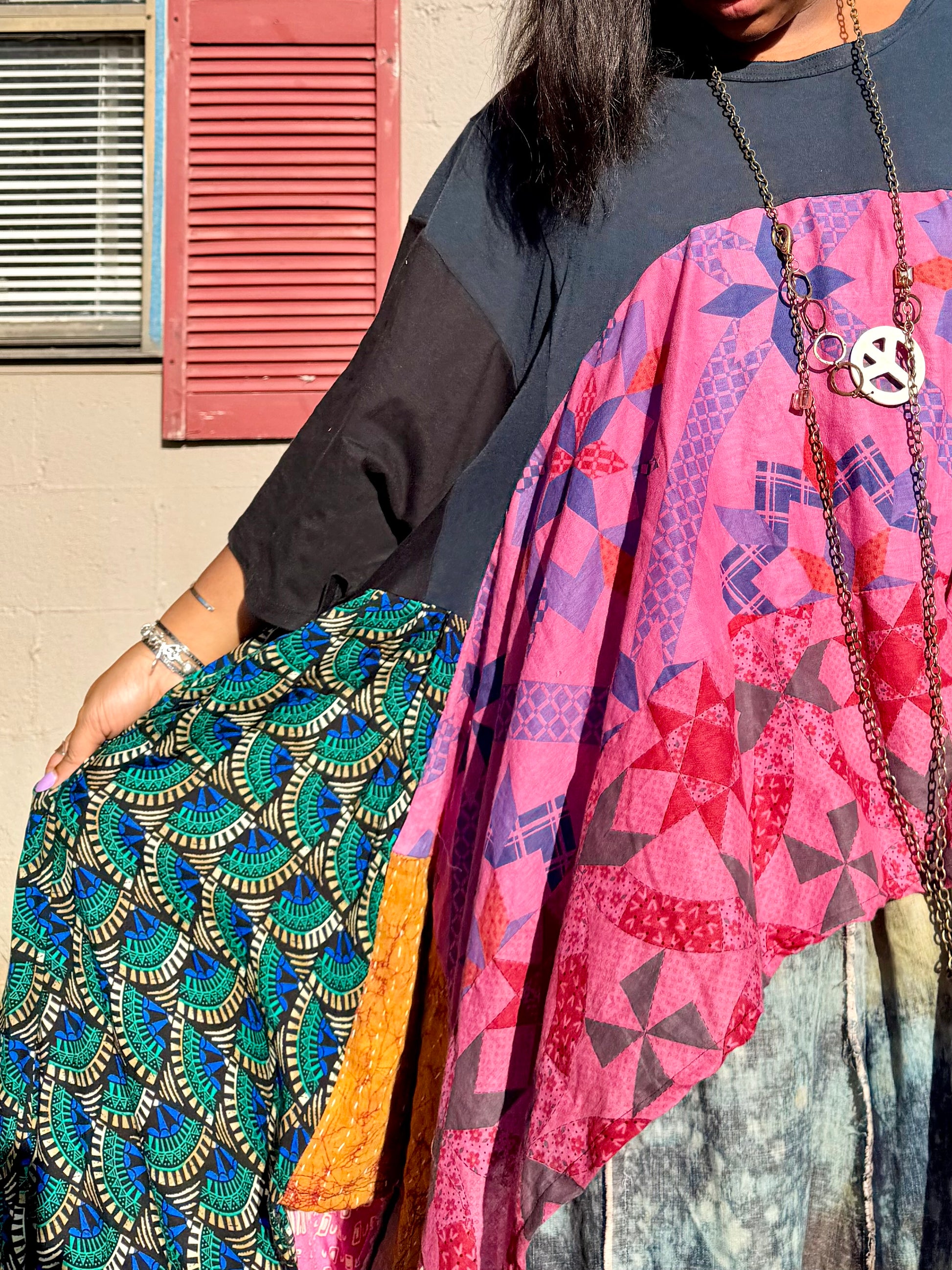 - All fabrics are hand arranged and cut into pieces to make a beautiful skirt.