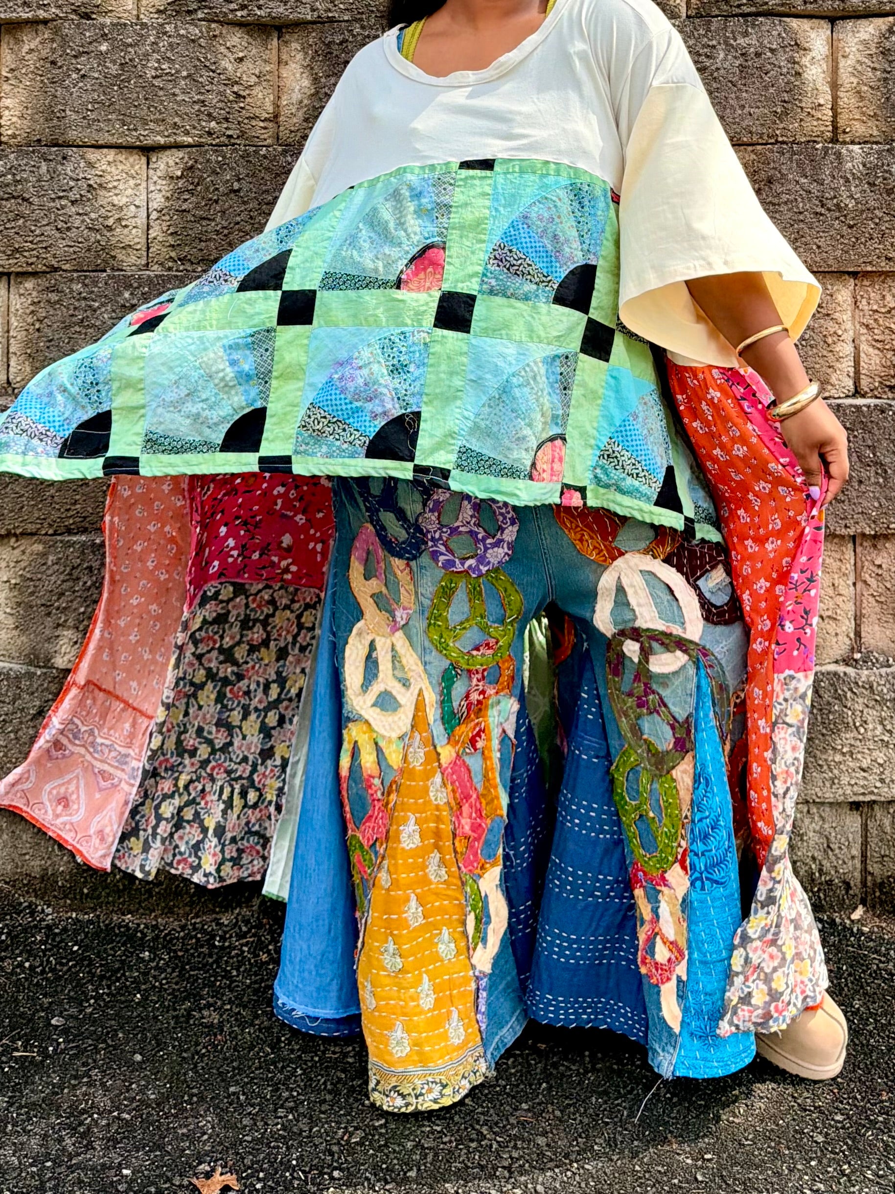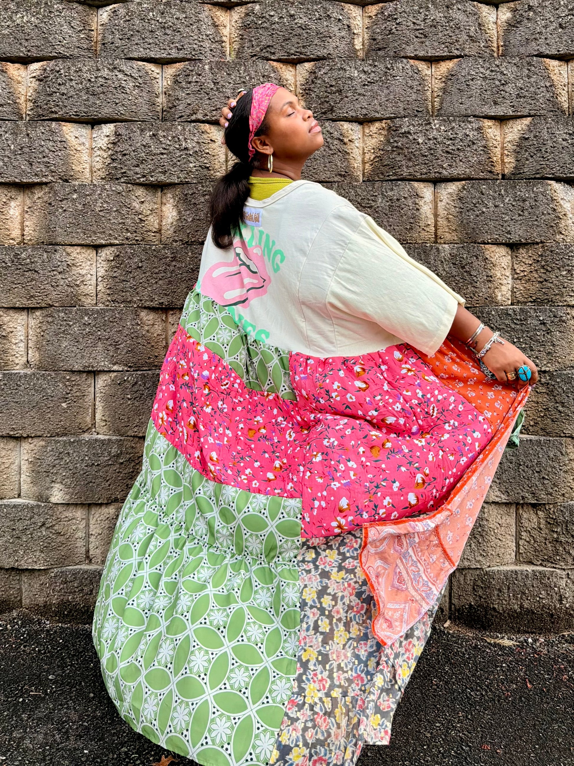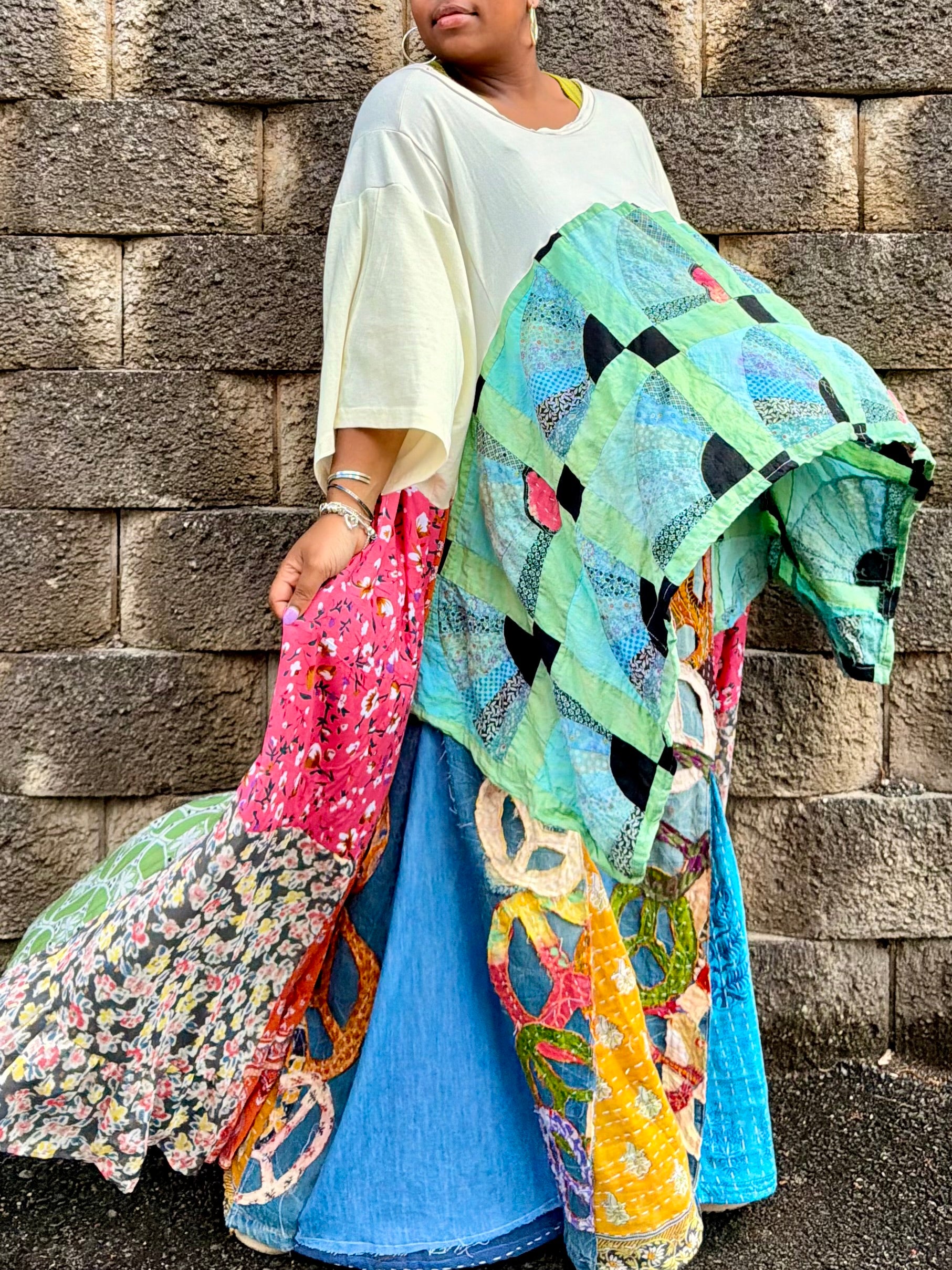 - All fabrics are hand arranged and cut into pieces to make a beautiful skirt.