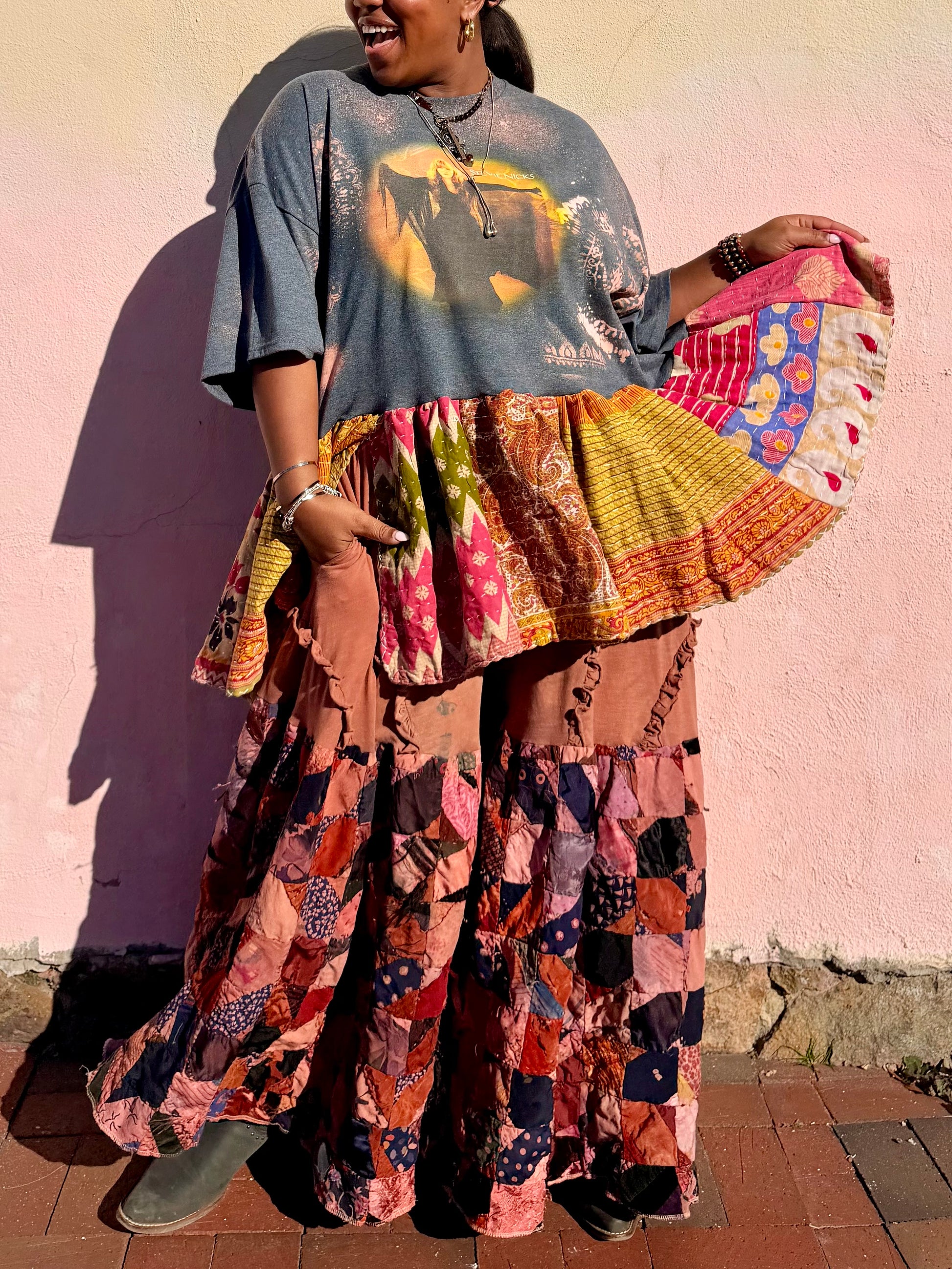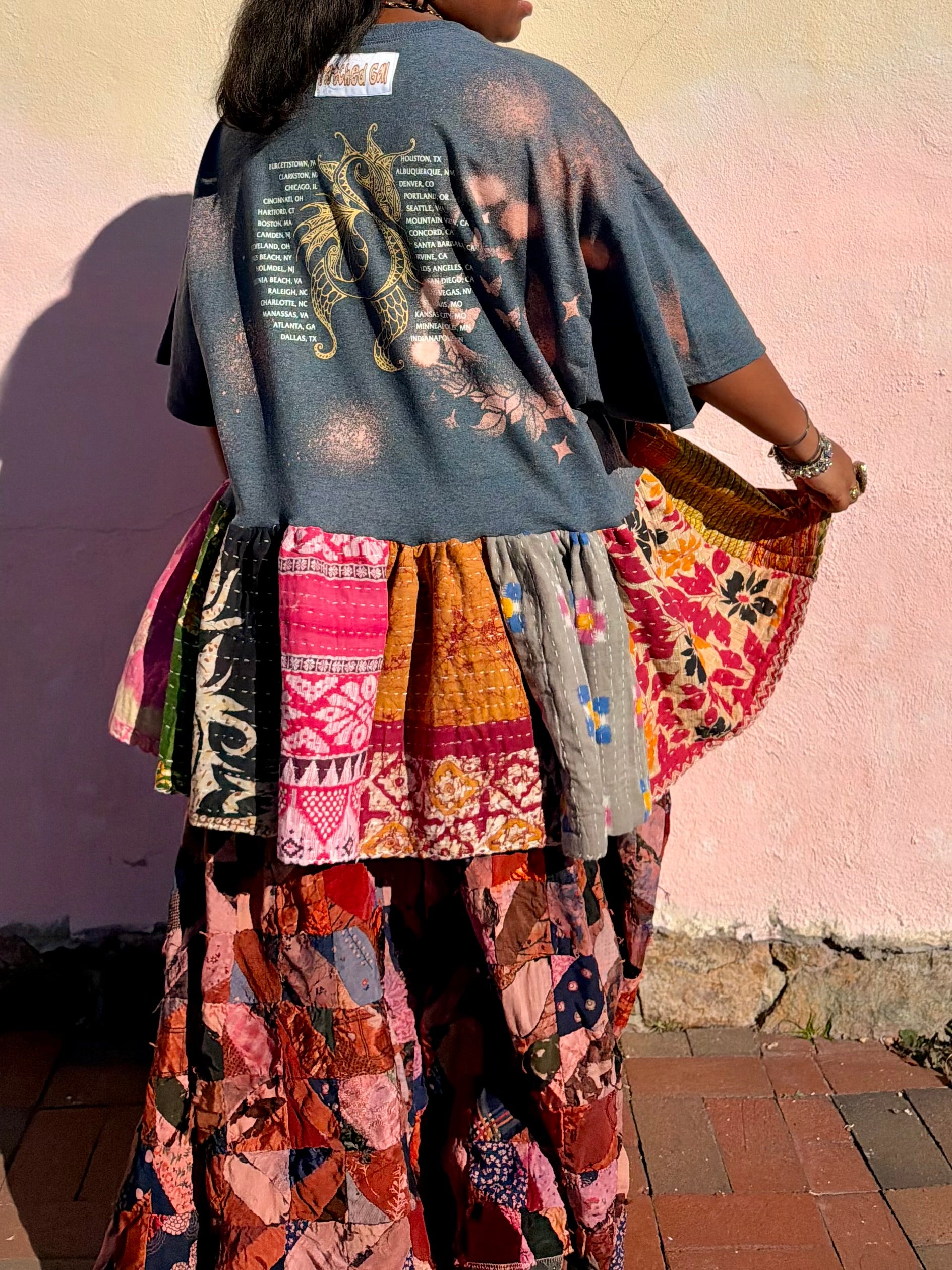 - All fabrics are hand arranged and cut into pieces to make a beautiful skirt.