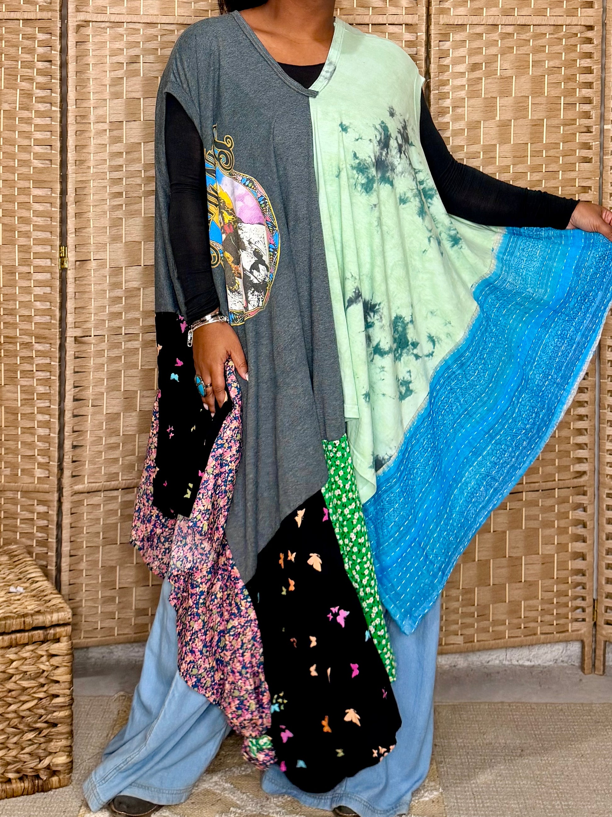 - Made with 2 tshirts and patchwork fabric.