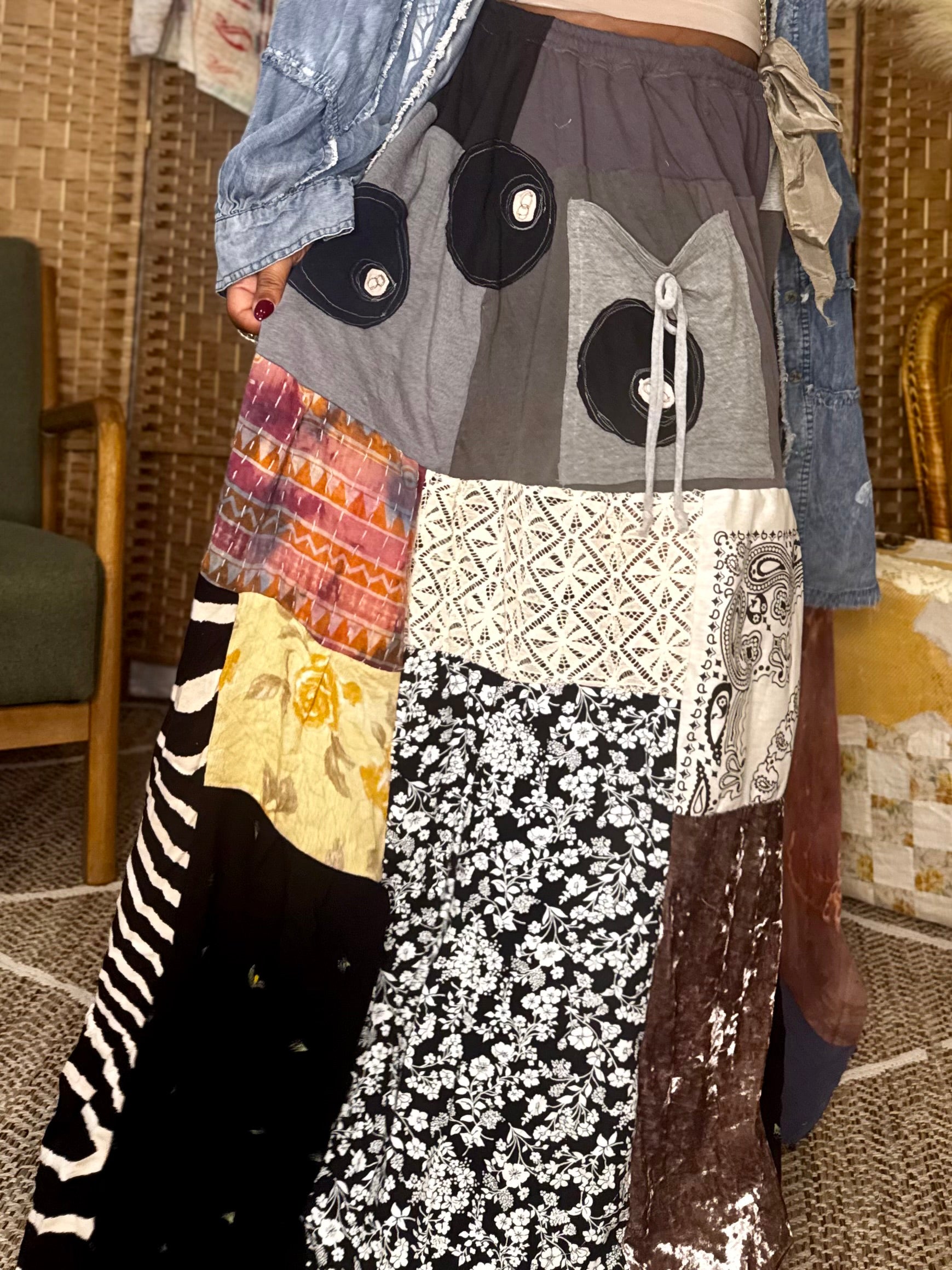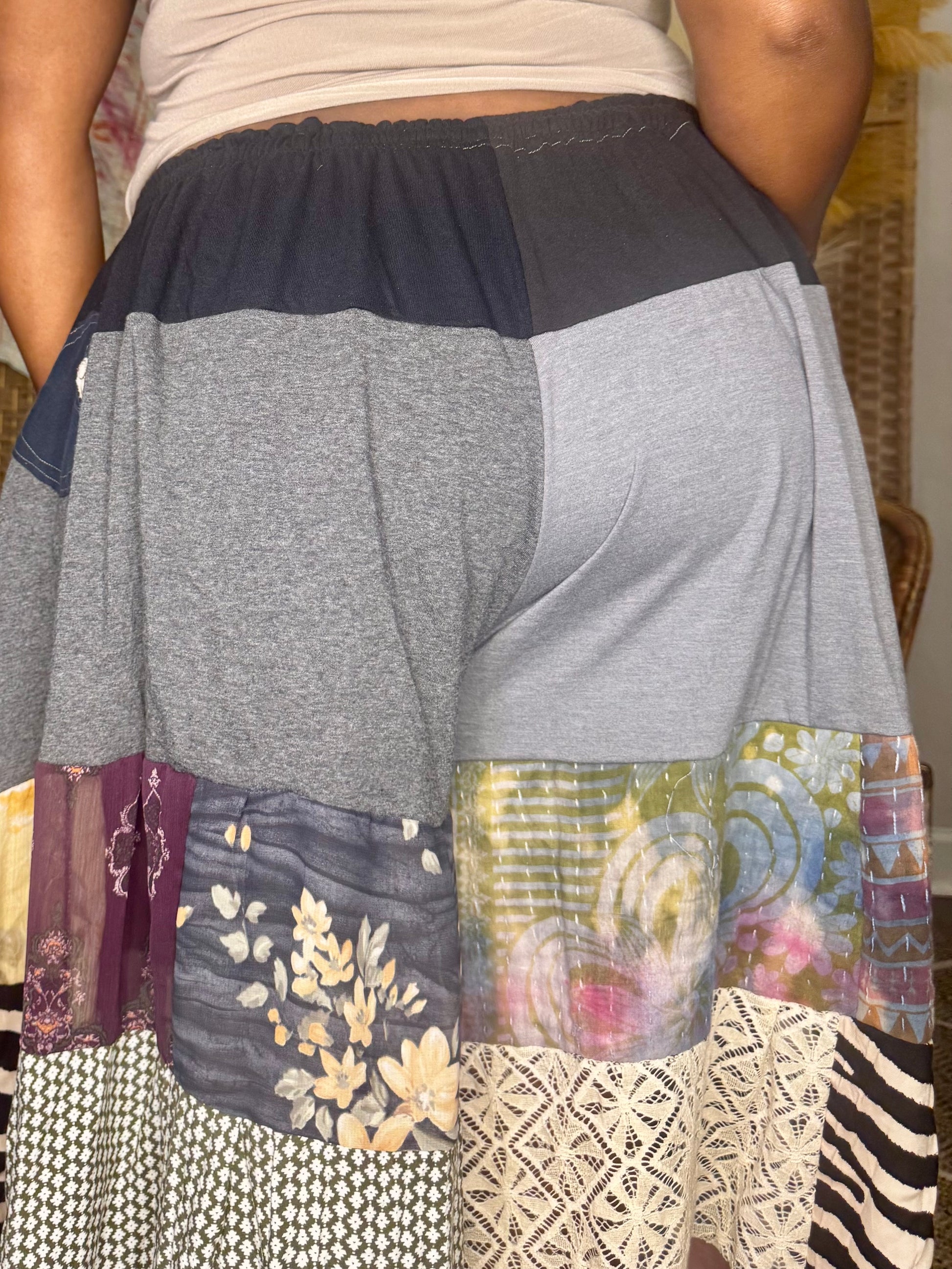 - Double lined tshirt fabric and a mix of fabrics from dresses and skirts.