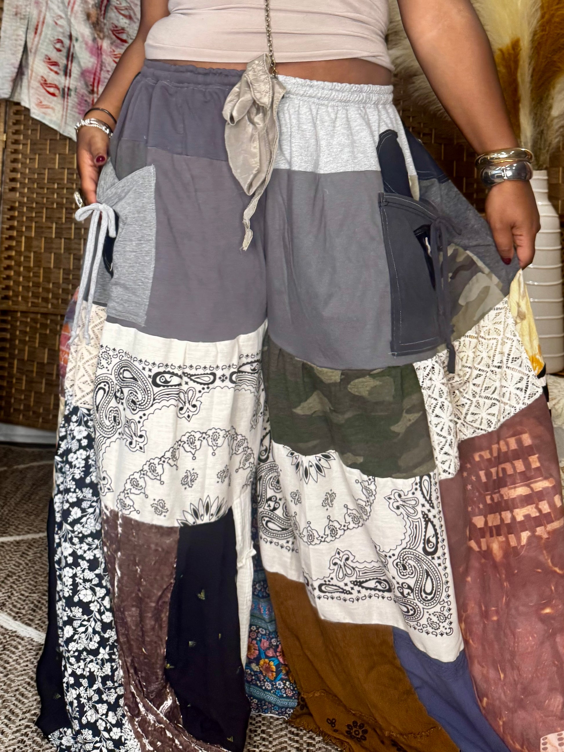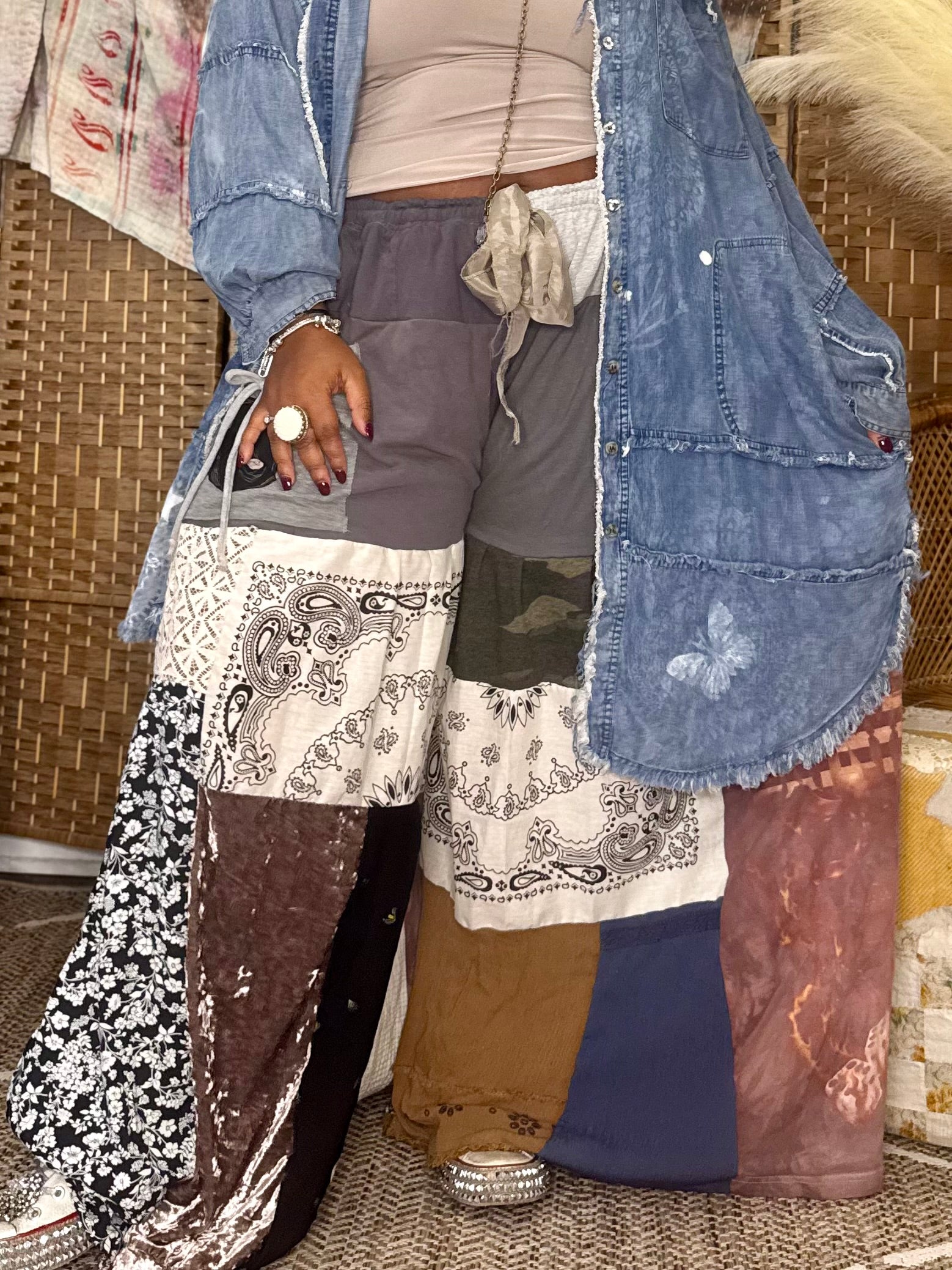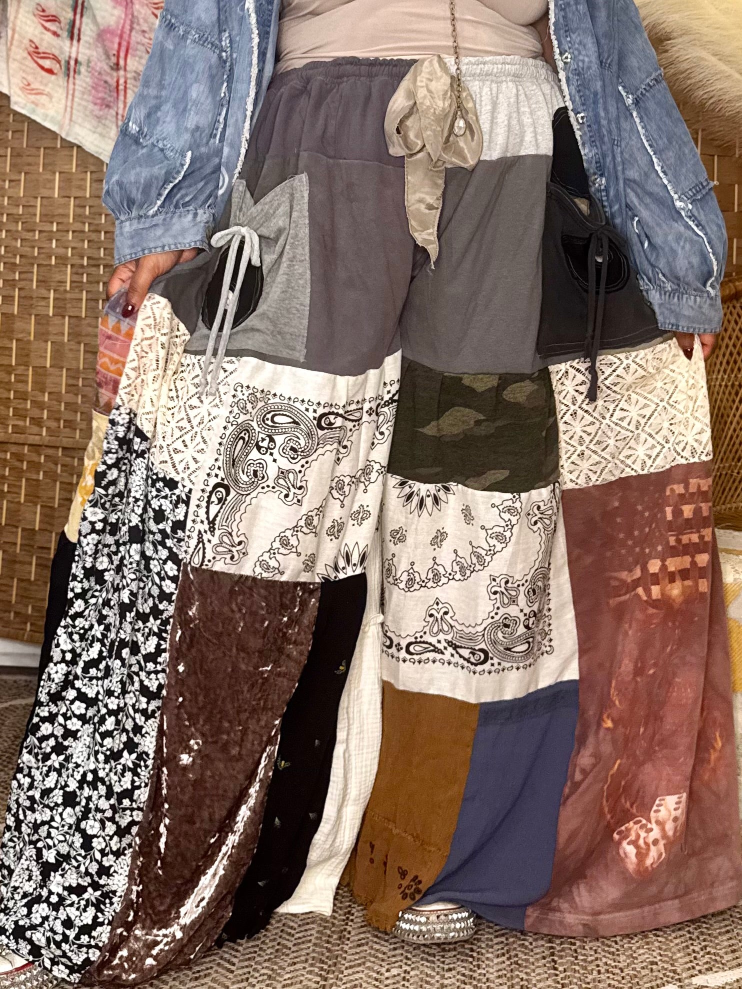 - All fabrics are hand arranged and cut into pieces to make beautiful pant legs.