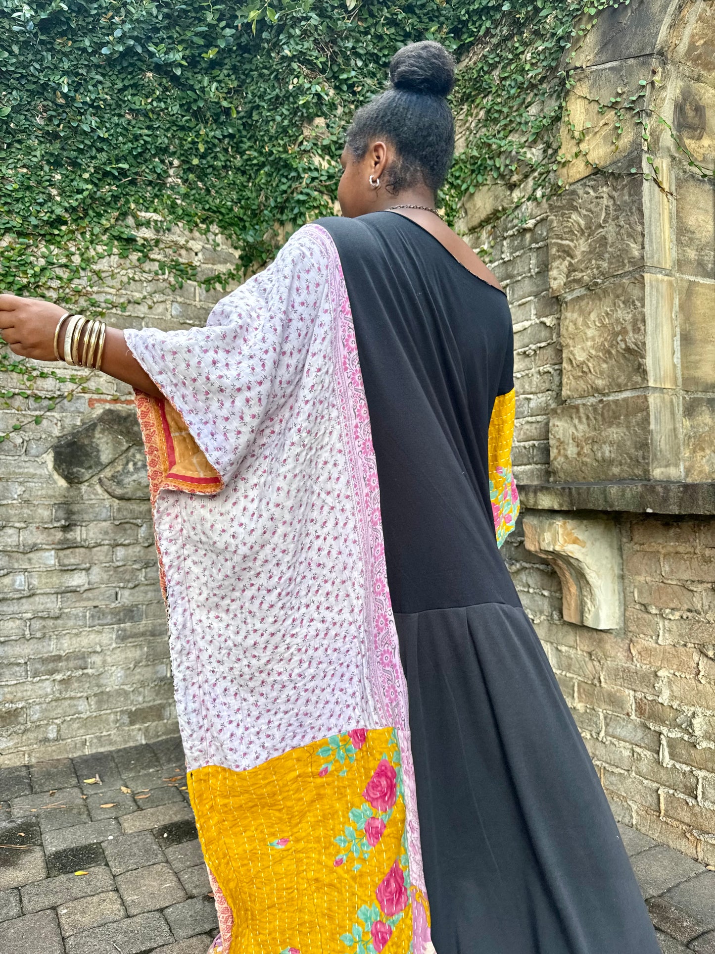 - All fabrics are hand arranged and cut into pieces to make a beautiful dress.