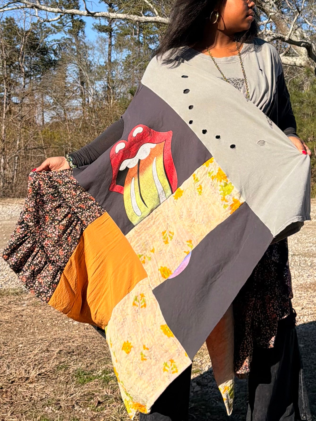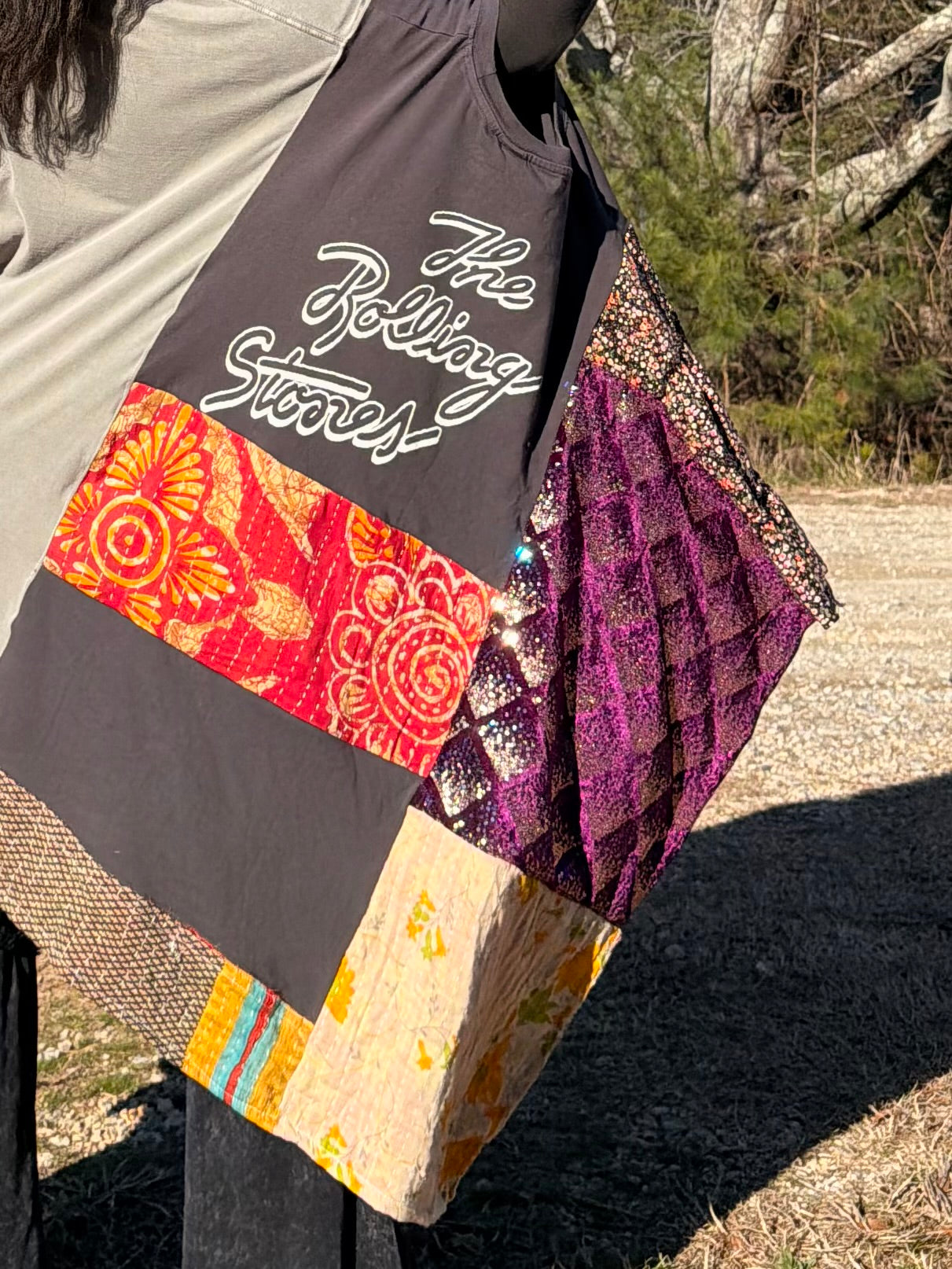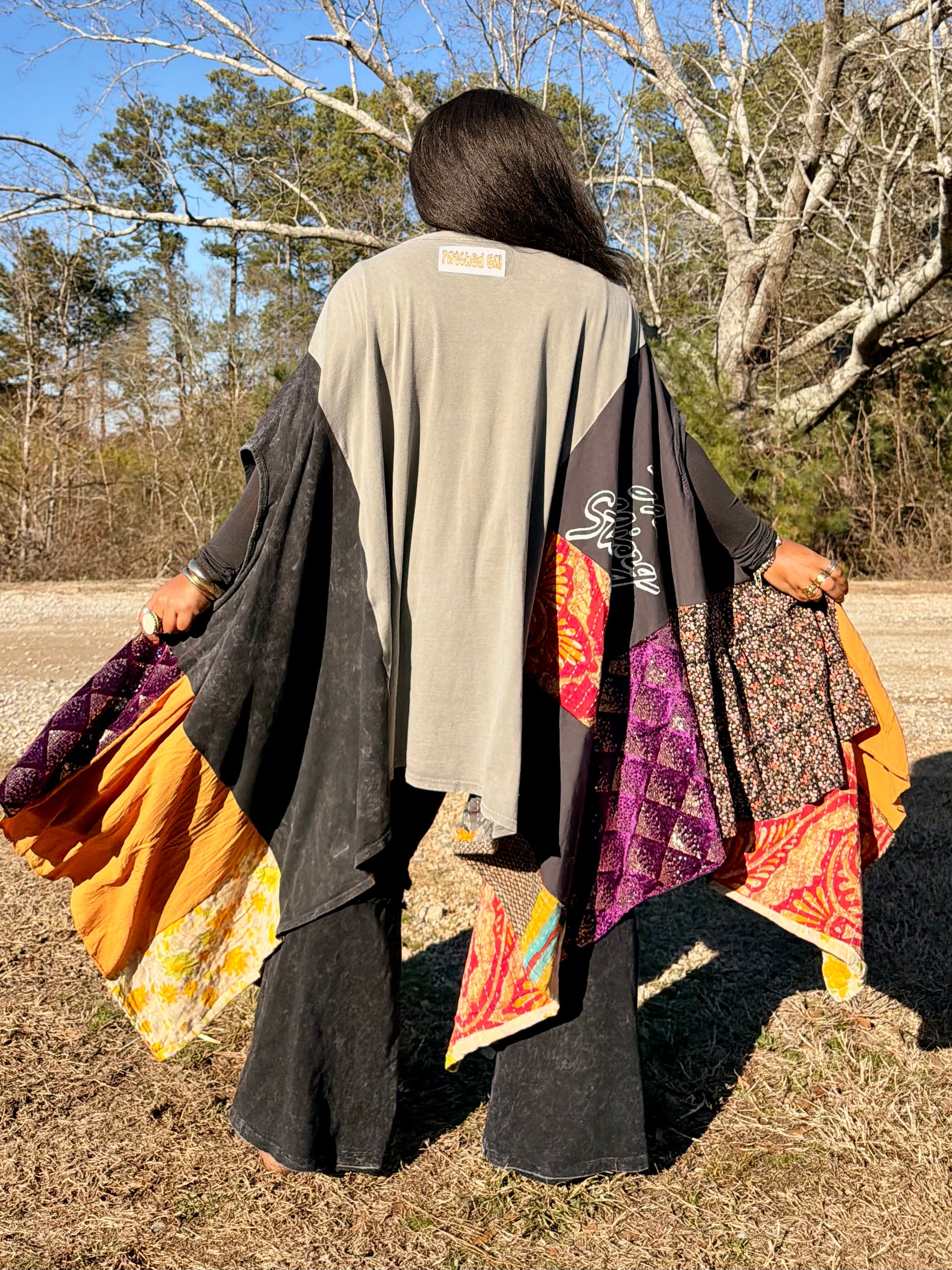 - Made with 3 tshirts and patchwork fabric.