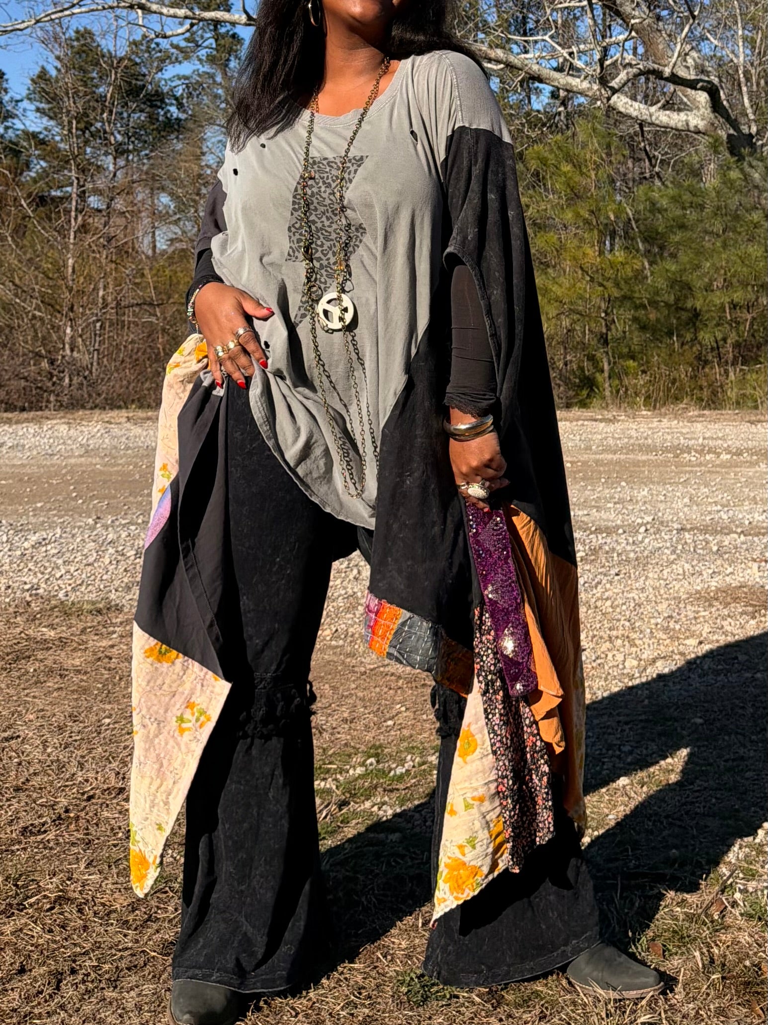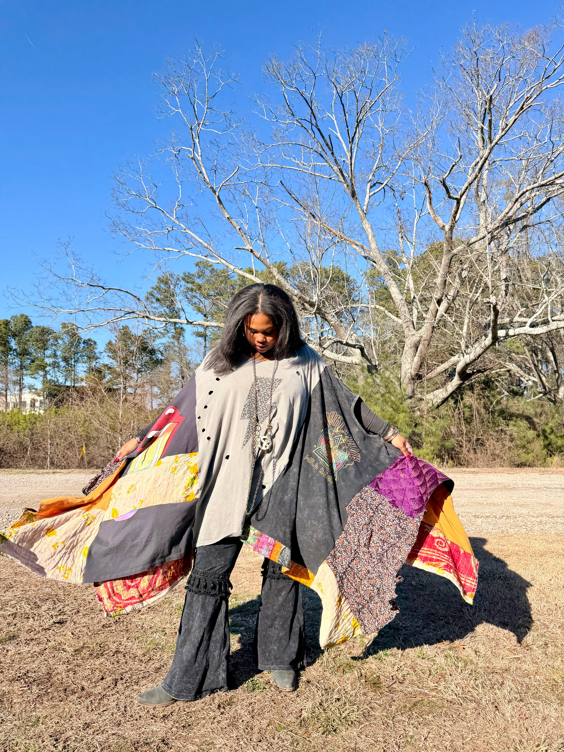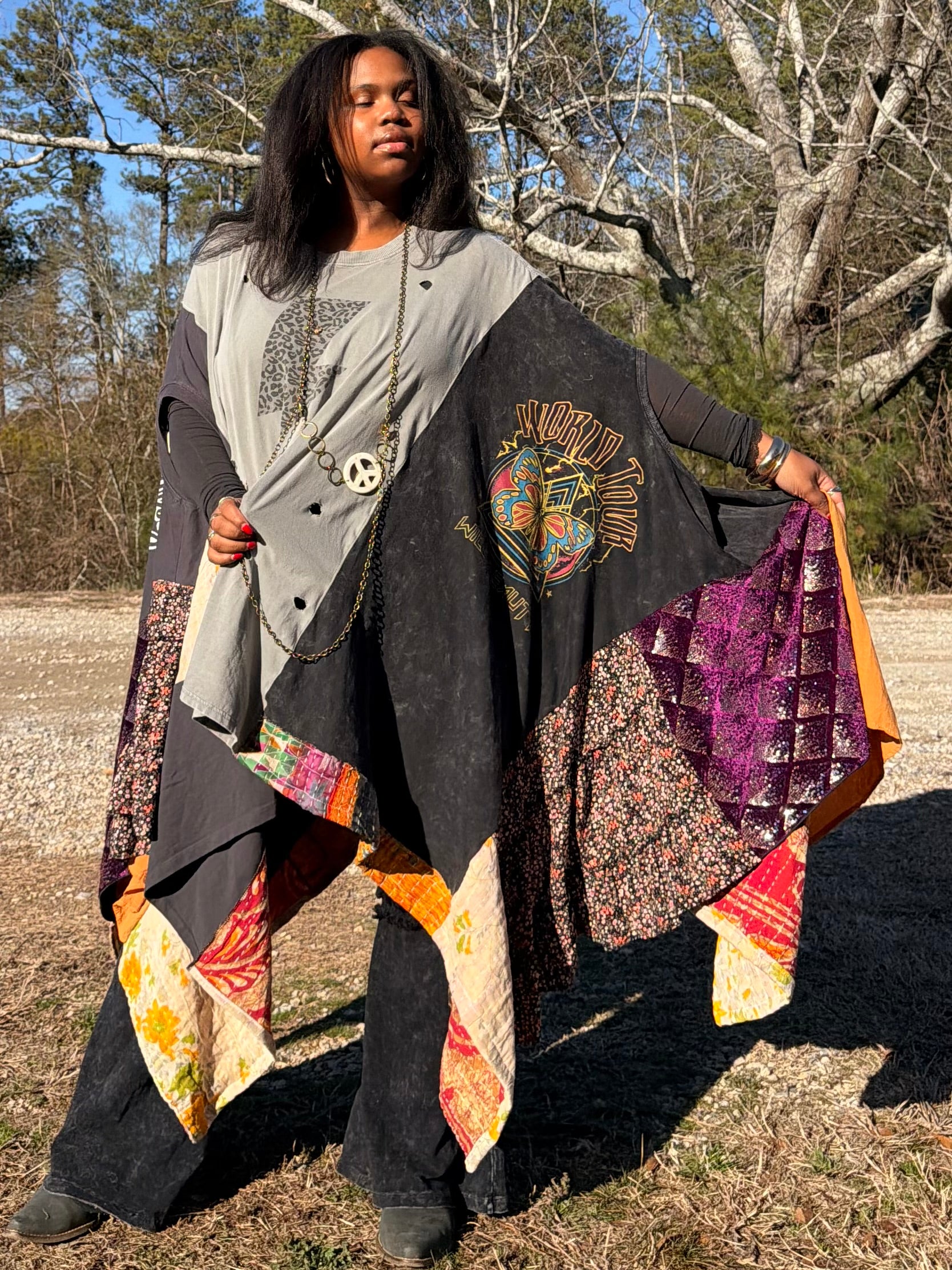 - Made with 3 tshirts and patchwork fabric.
