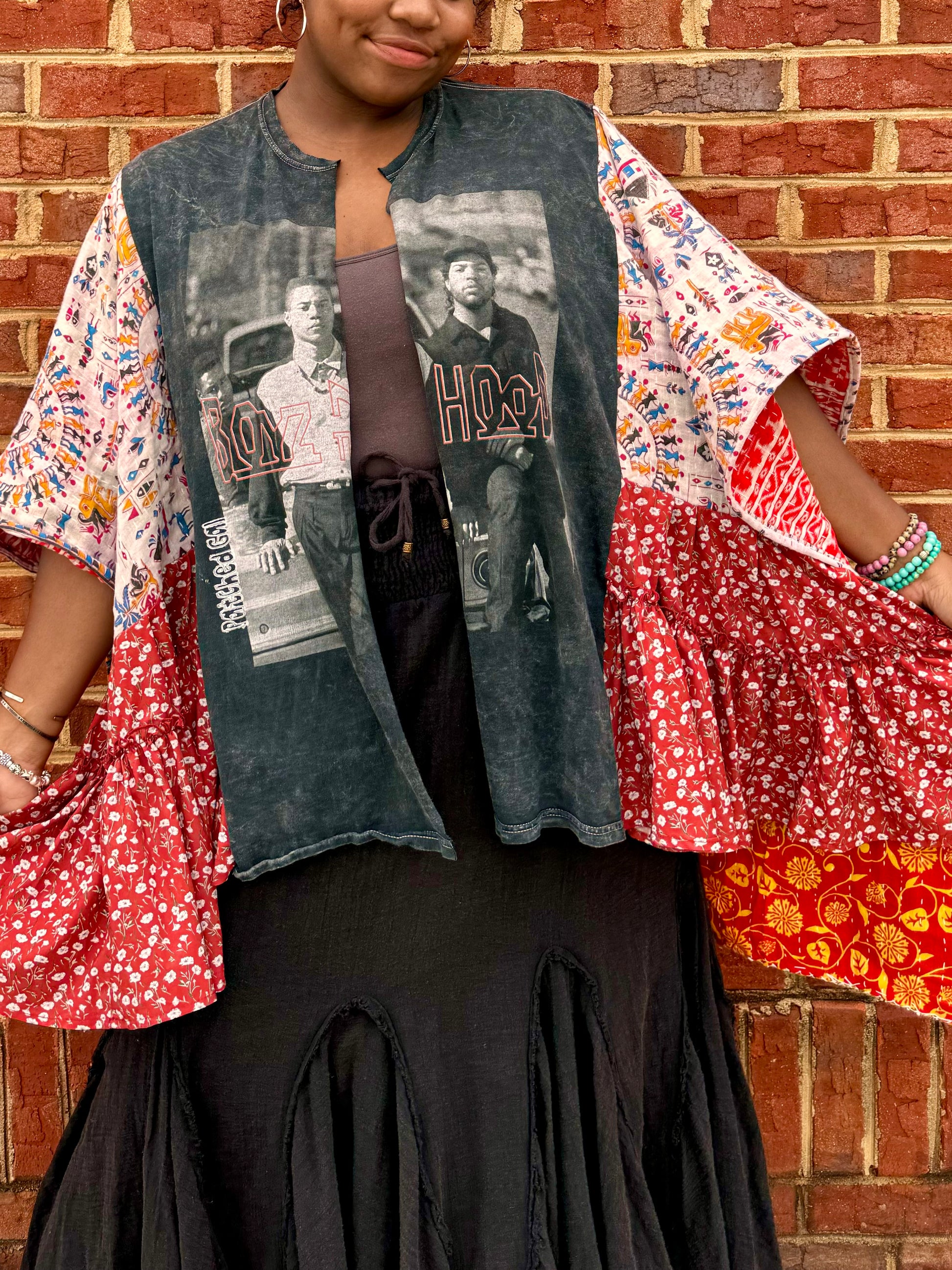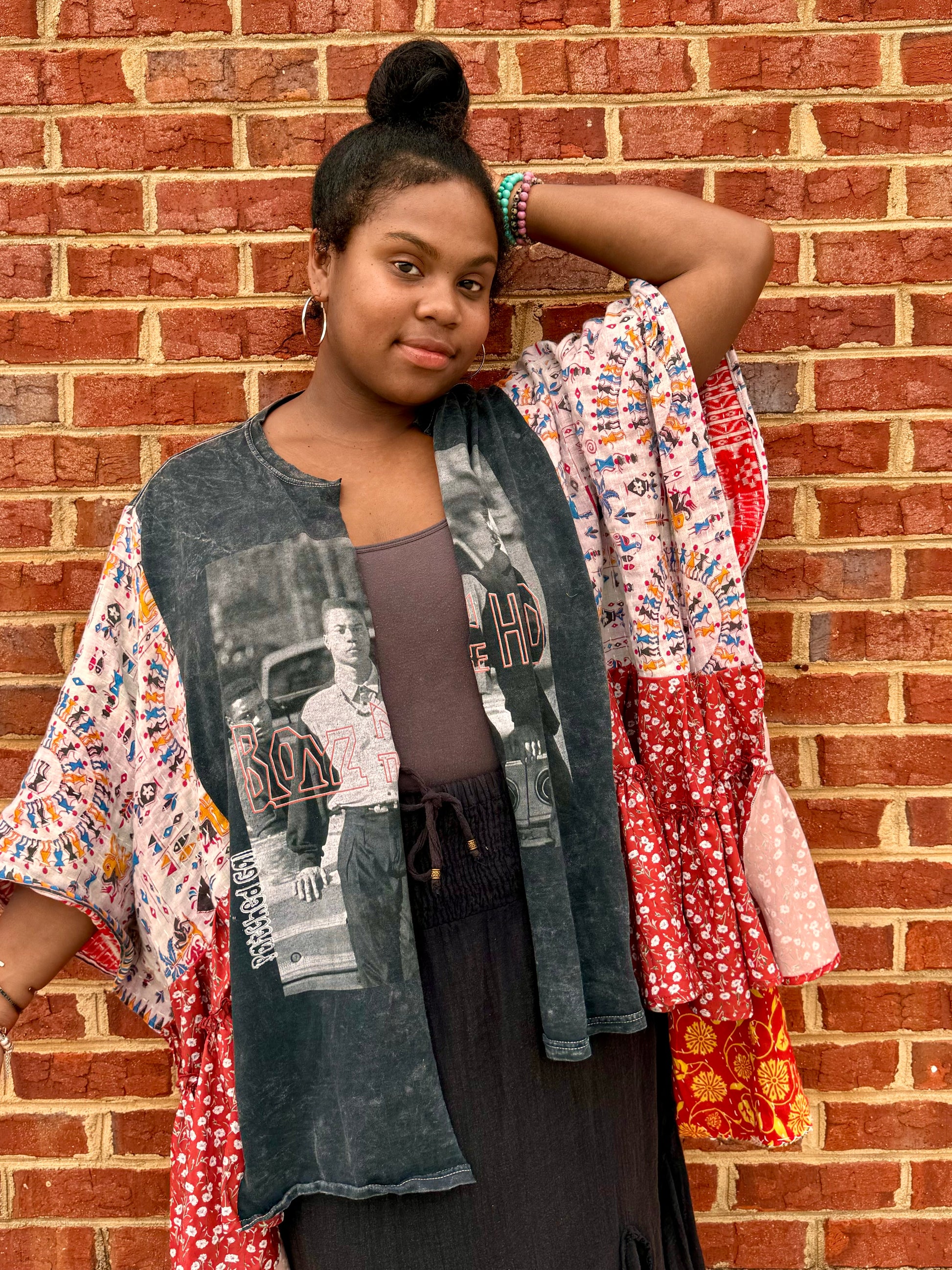 - Sierra is 5'4, usually a size large and can fit all of the kimonos.