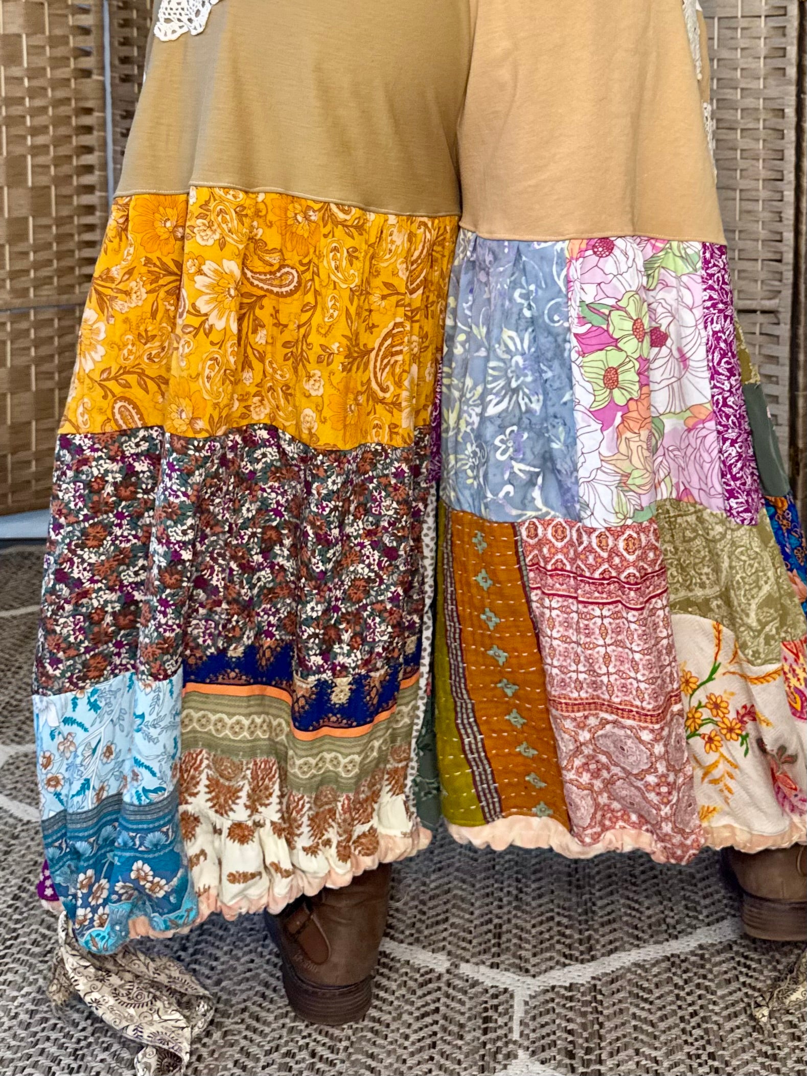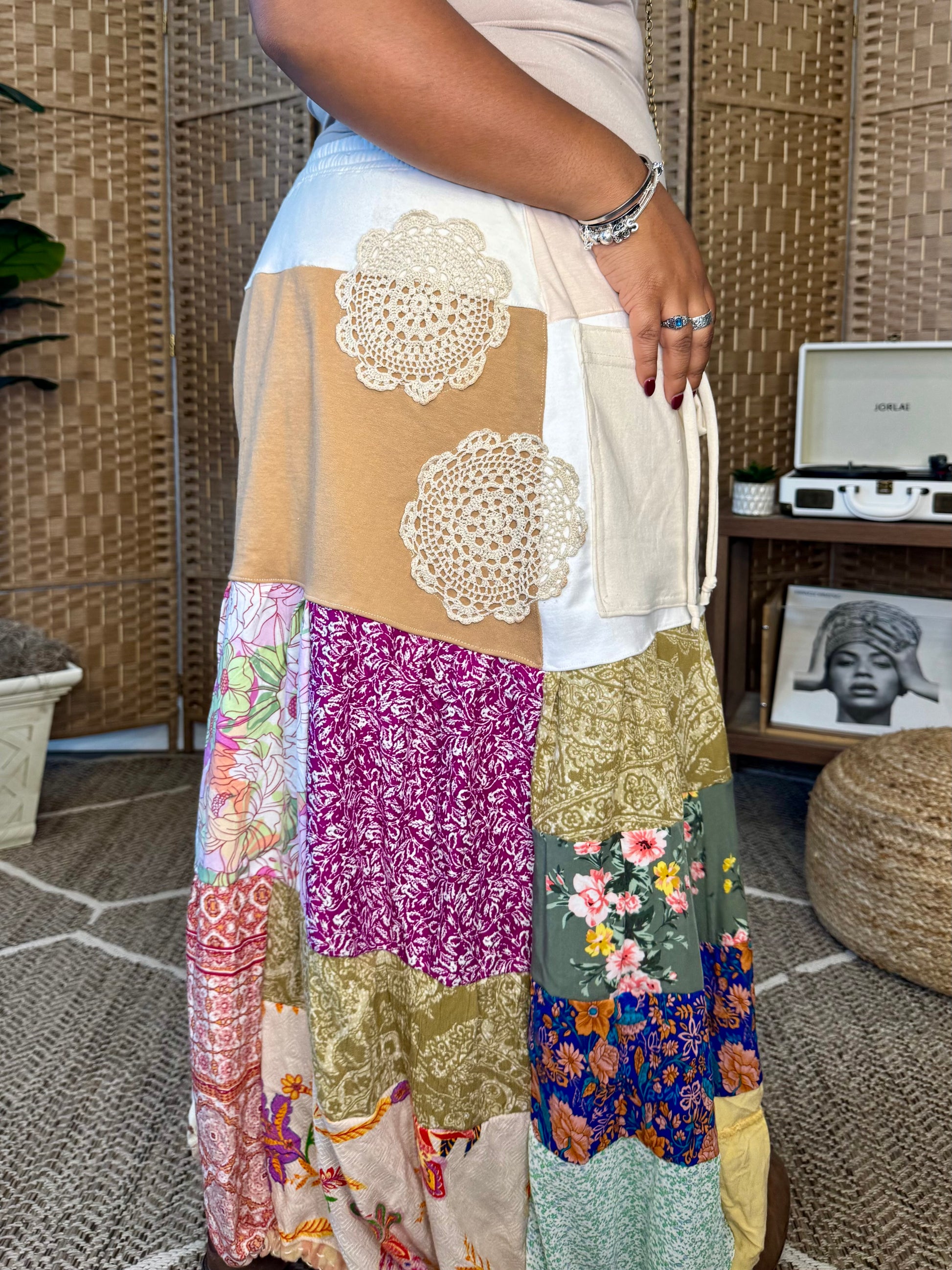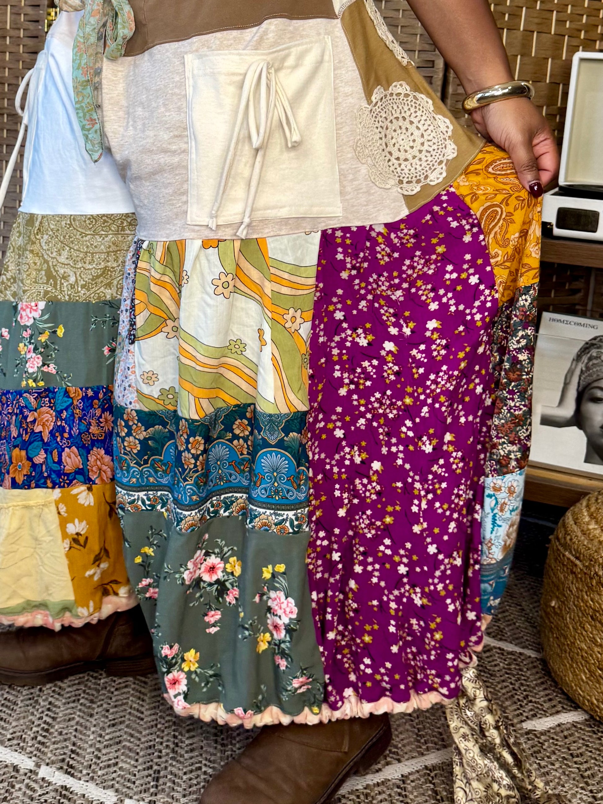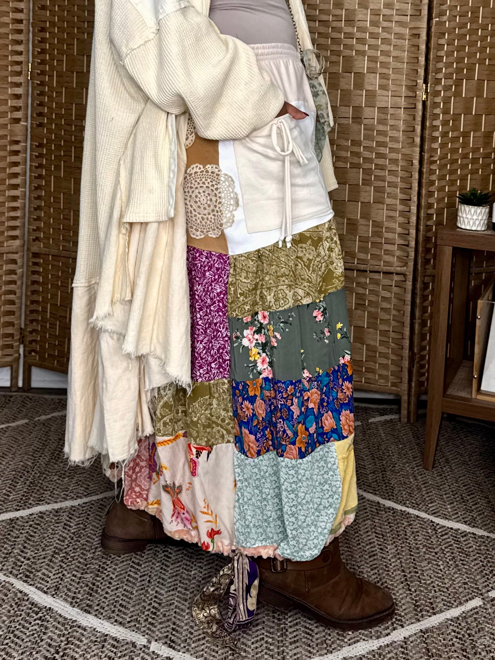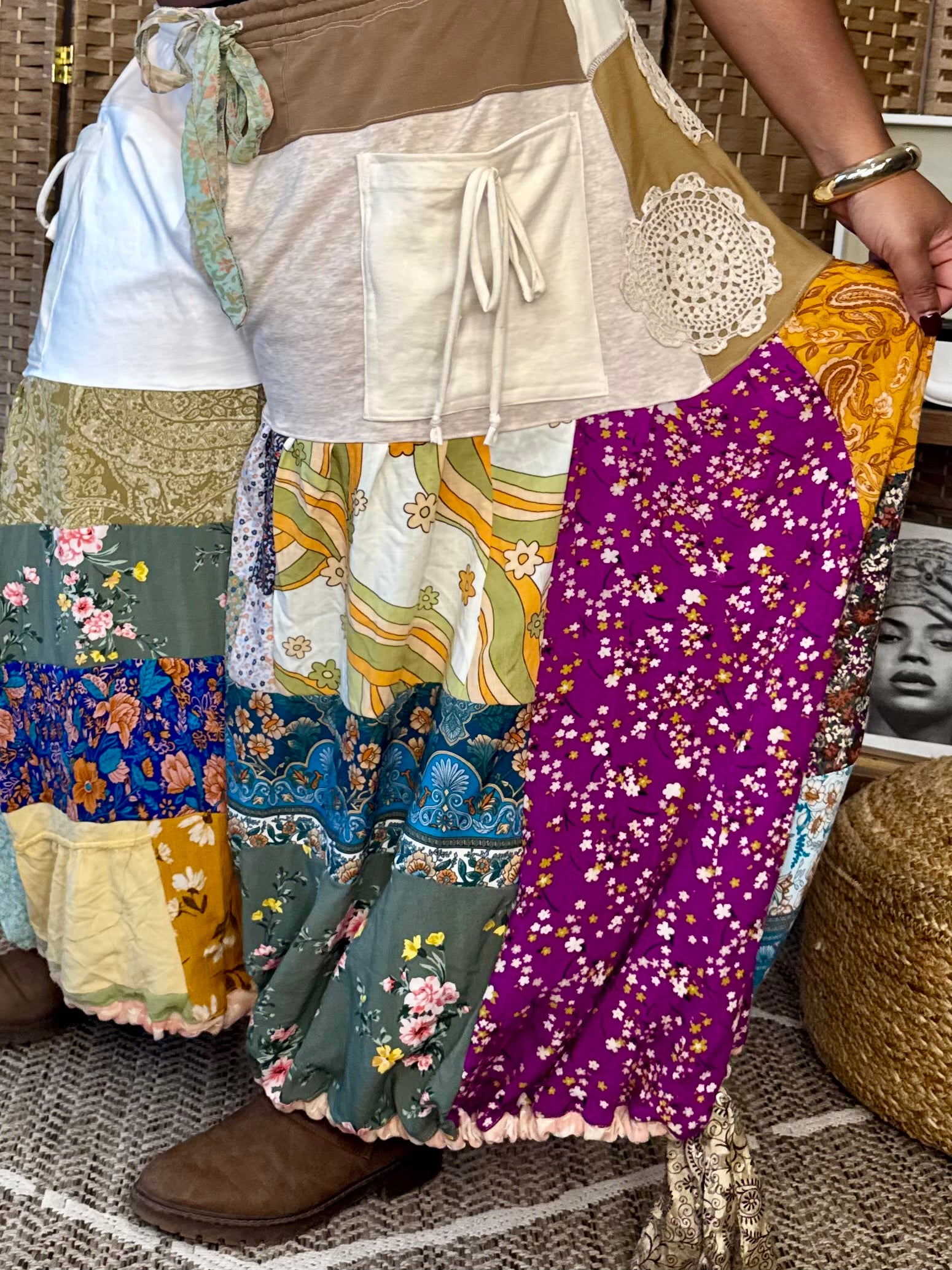 - Double lined tshirt fabric and a mix of fabrics from dresses and skirts.