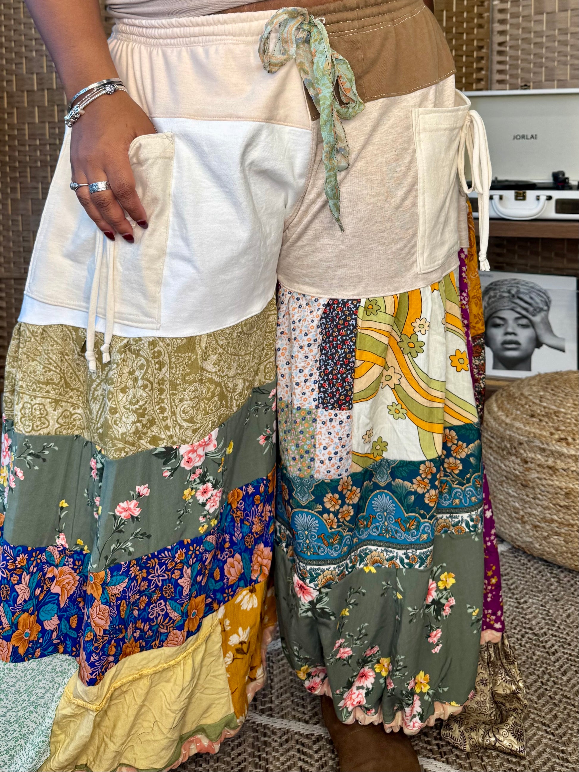 - All fabrics are hand arranged and cut into pieces to make beautiful pant legs.
