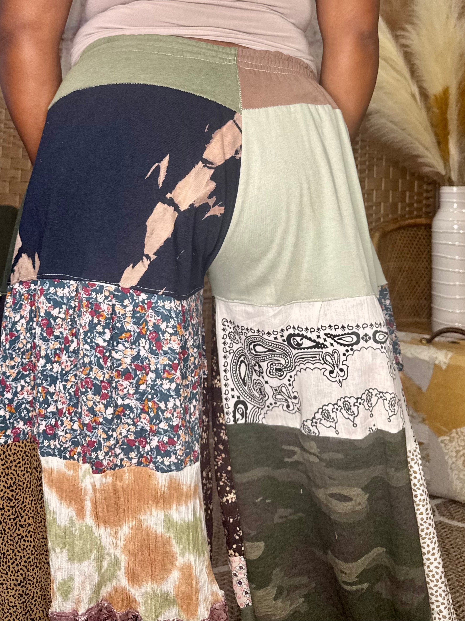 - All fabrics are hand arranged and cut into pieces to make beautiful pant legs.