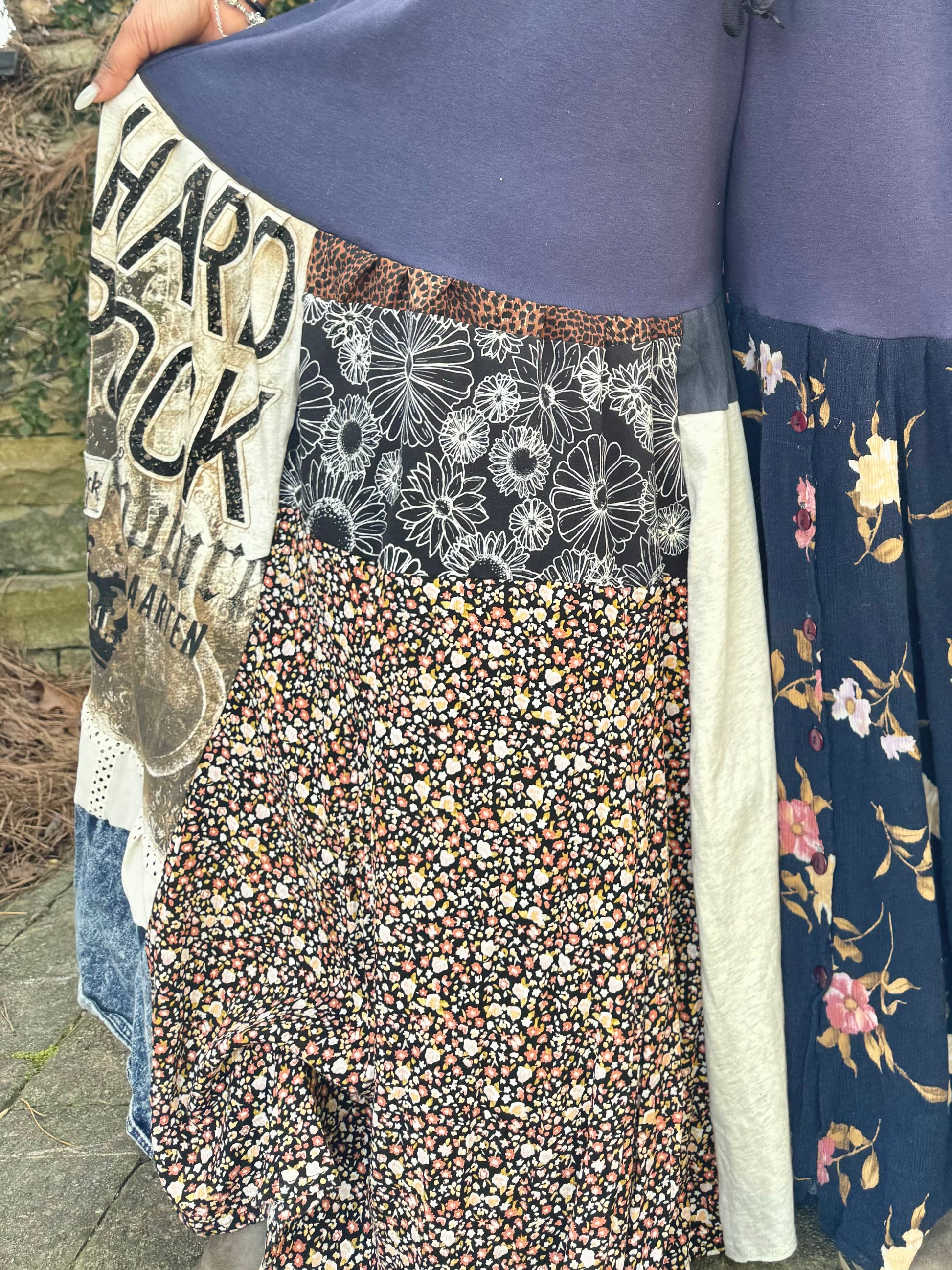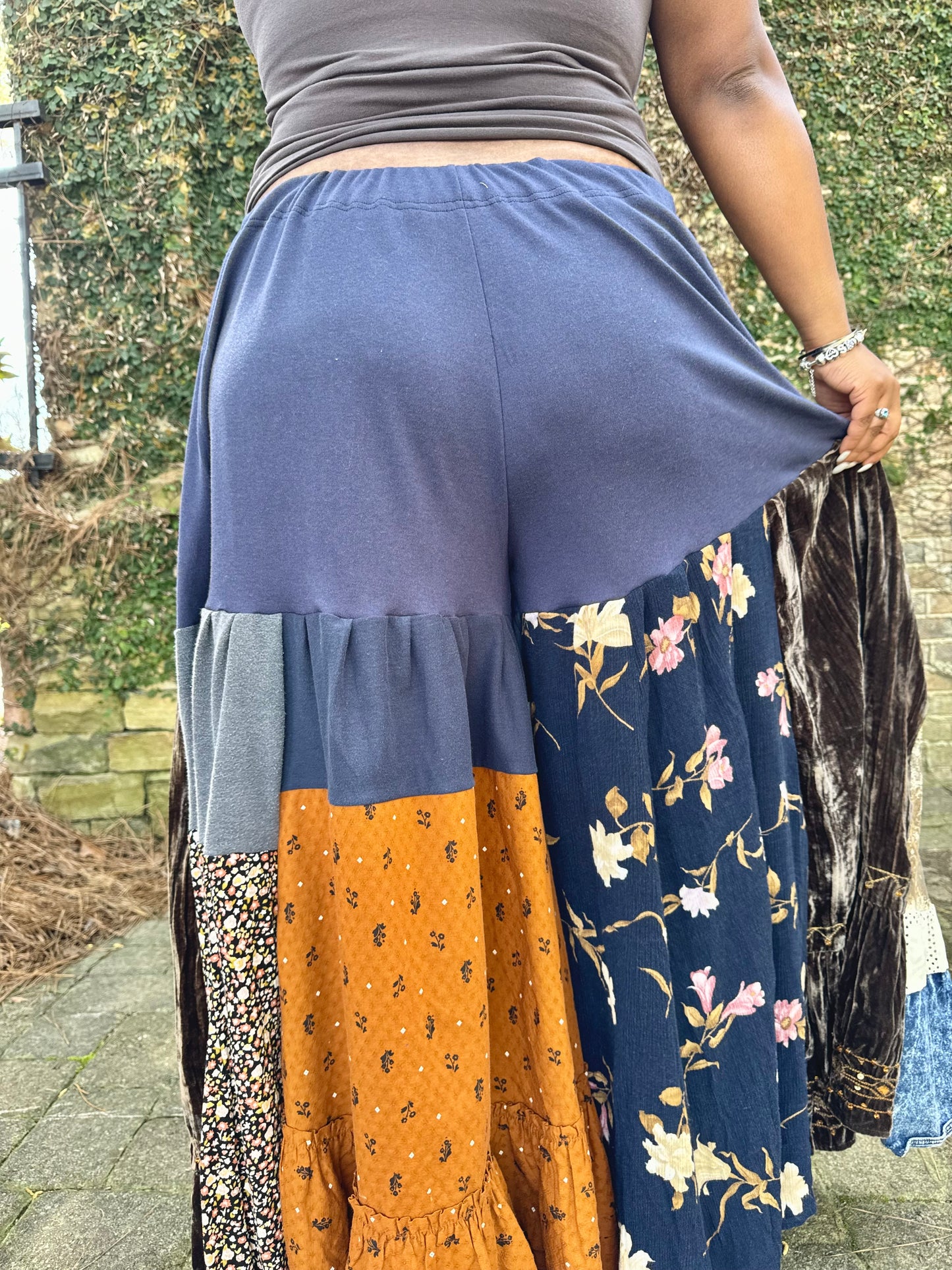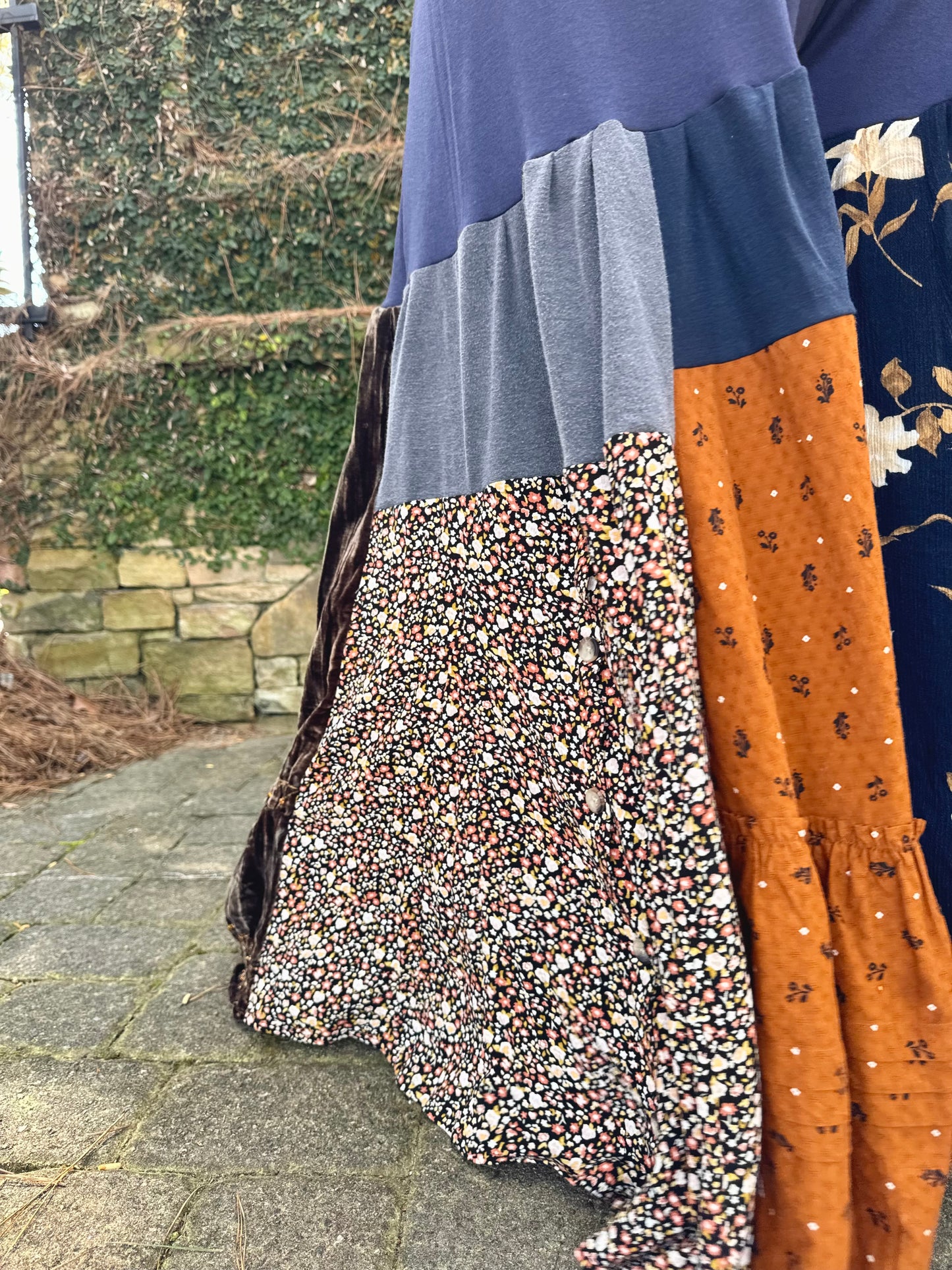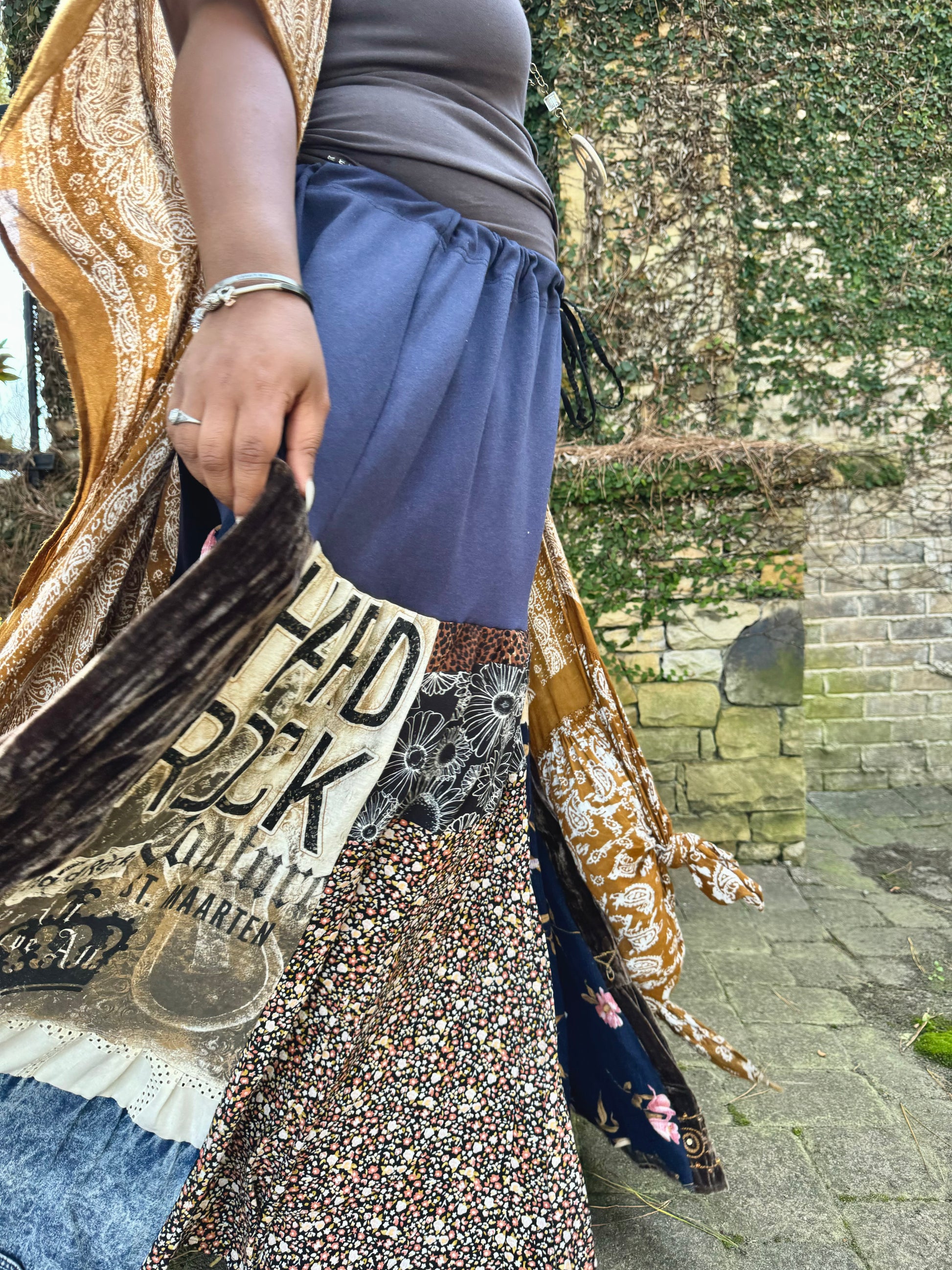 - Double lined tshirt fabric and a mix of fabrics from dresses and skirts.