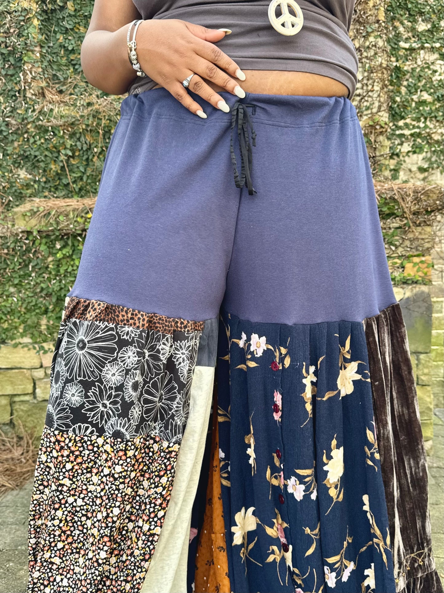 - All fabrics are hand arranged and cut into pieces to make beautiful pant legs.