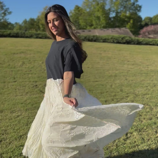 - All fabrics are hand arranged and cut into pieces to make a beautiful skirt.