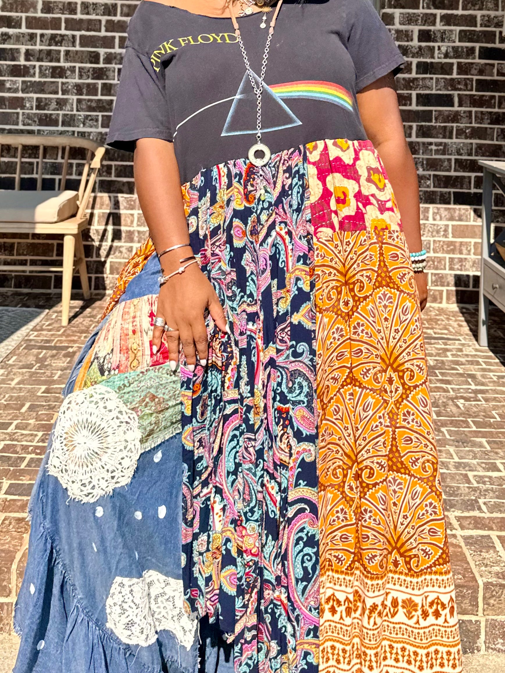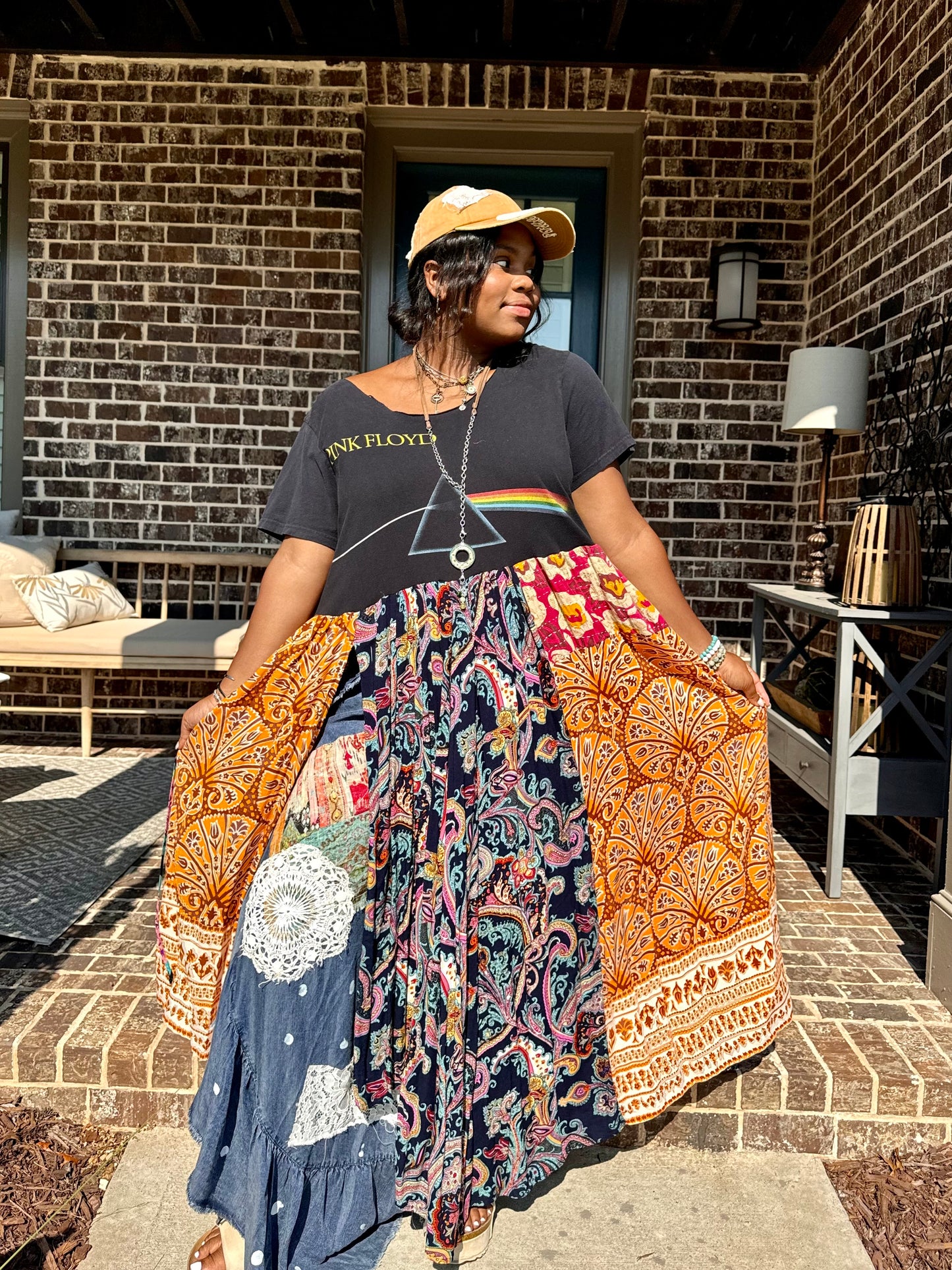 - All fabrics are hand arranged and cut into pieces to make a beautiful skirt.