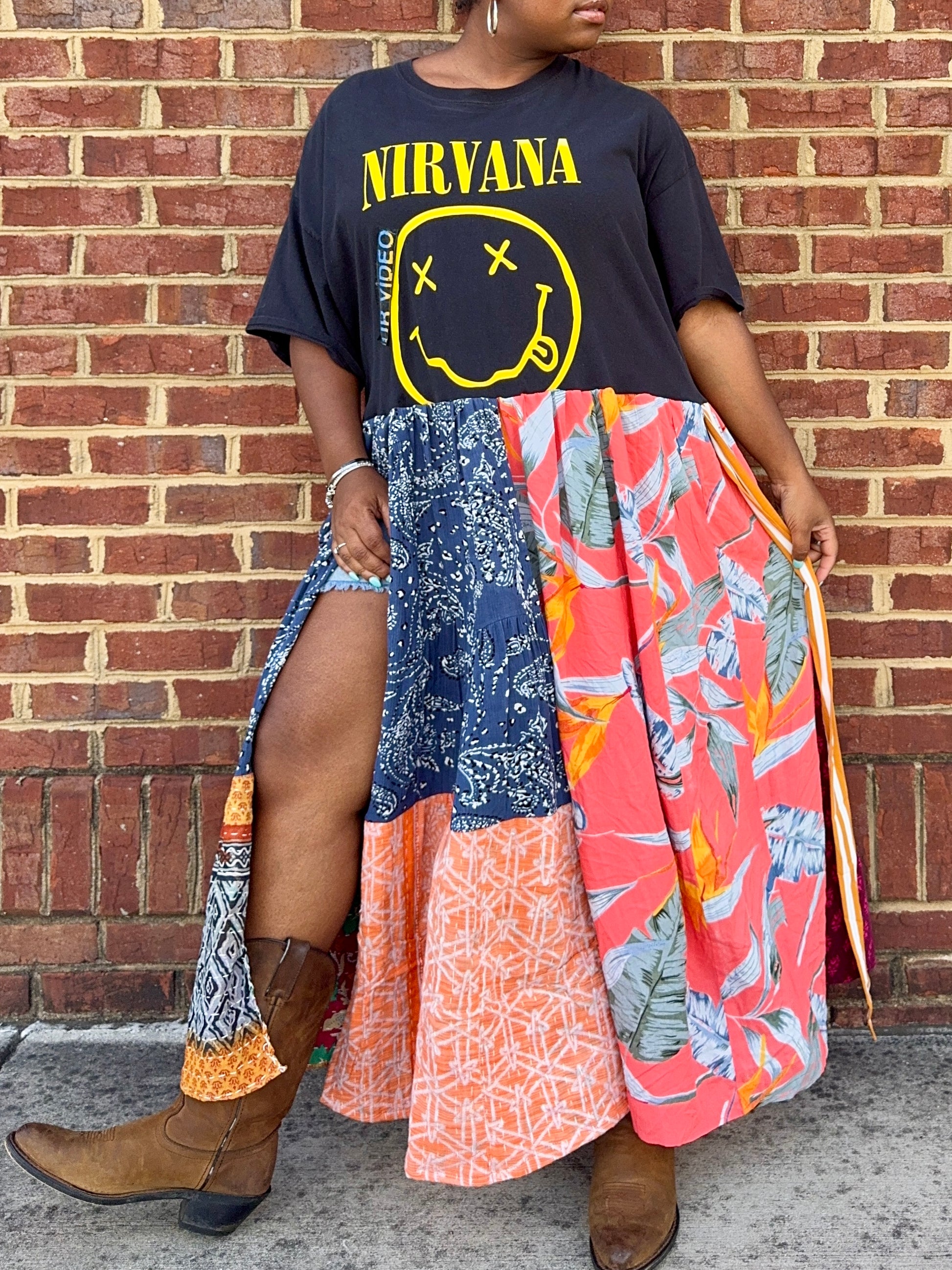 - All fabrics are hand arranged and cut into pieces to make a beautiful skirt.