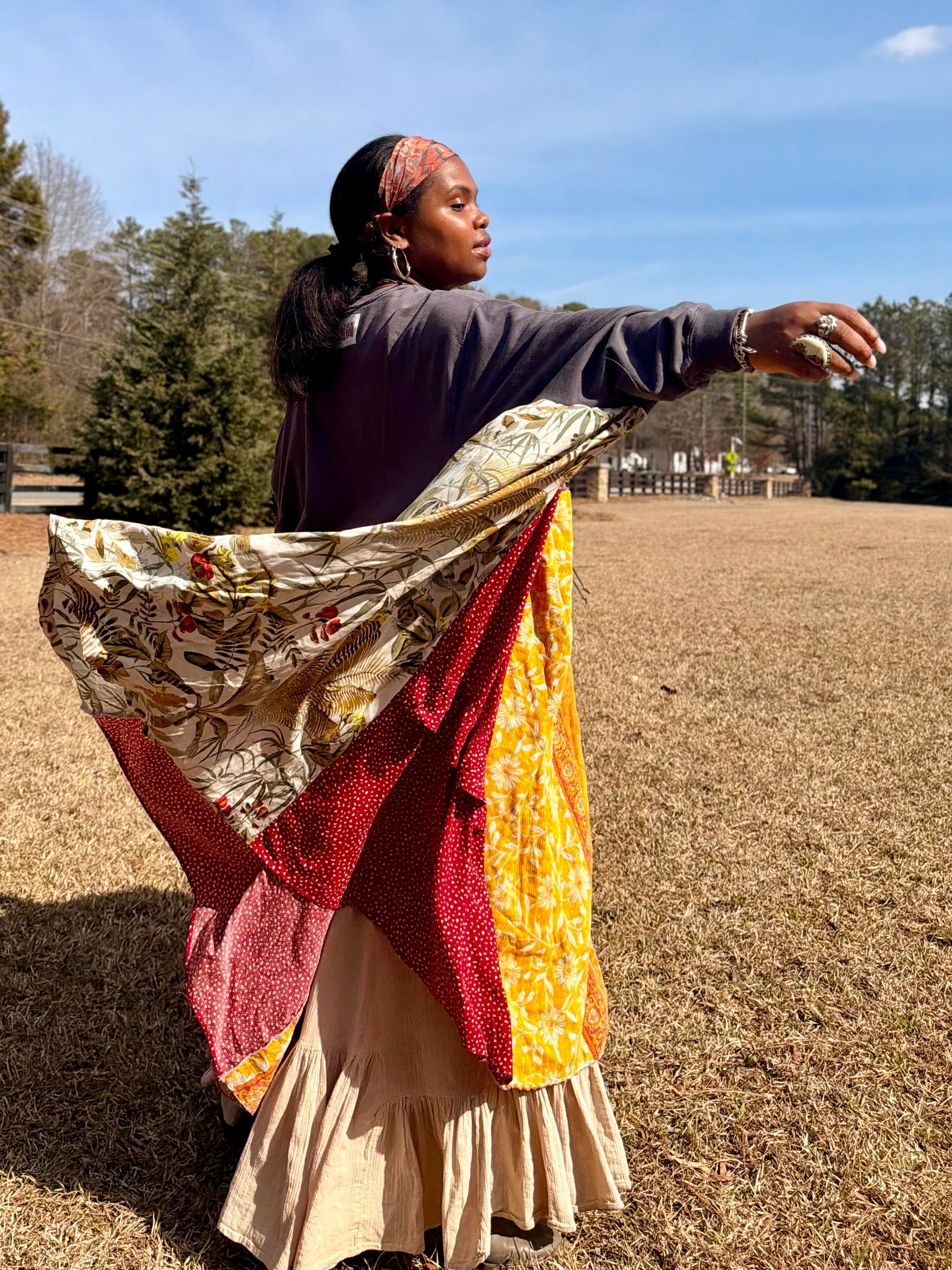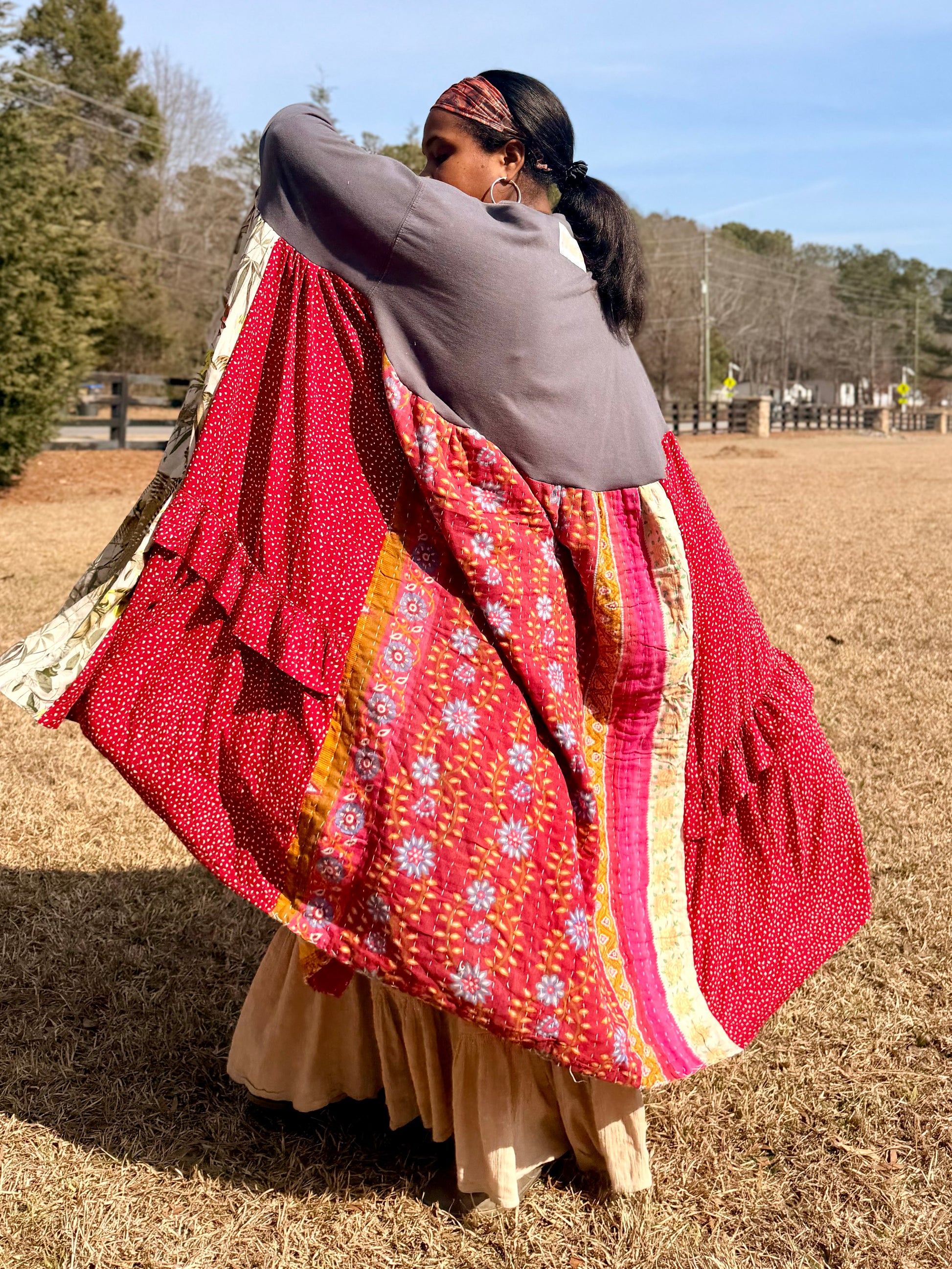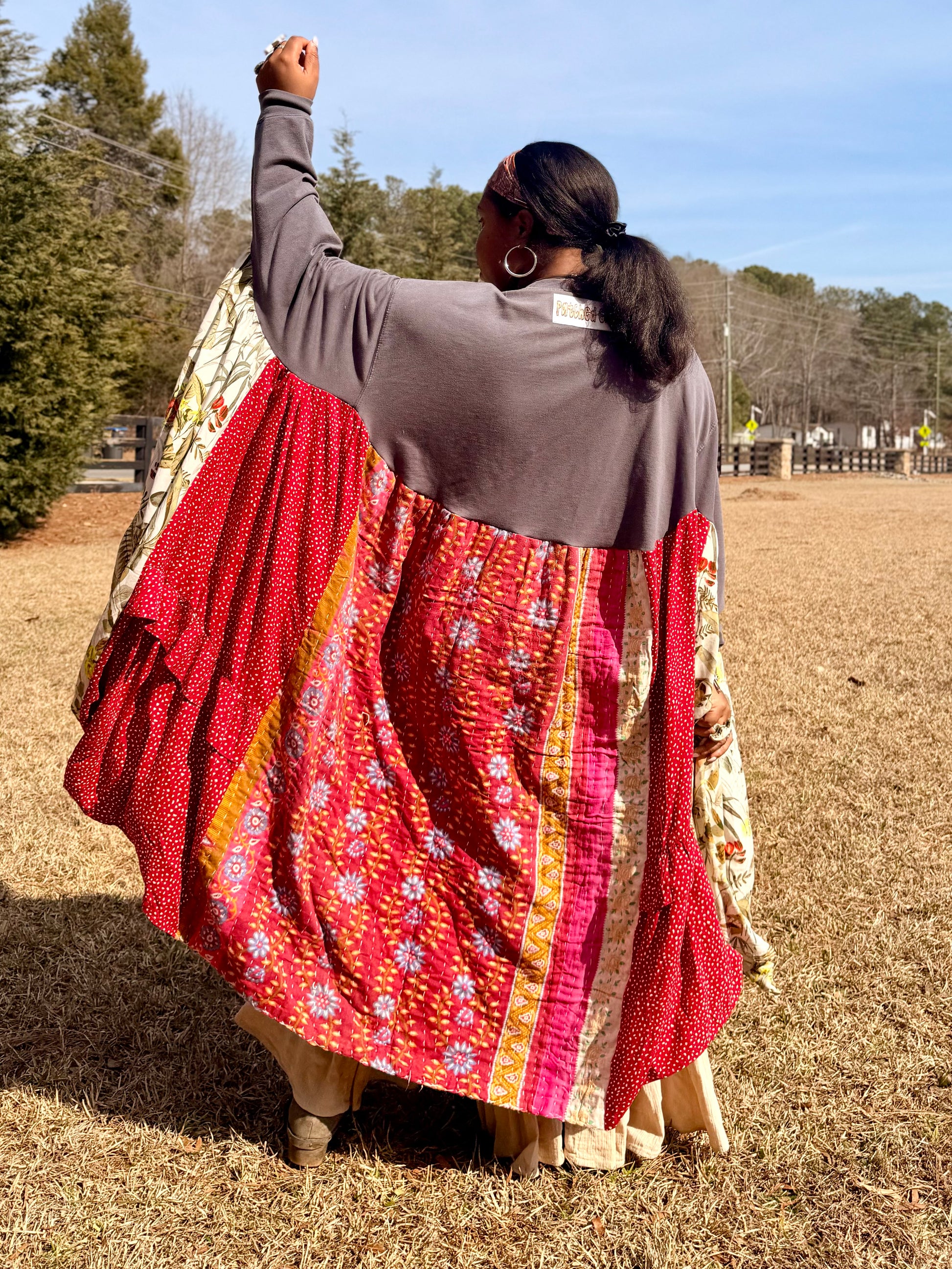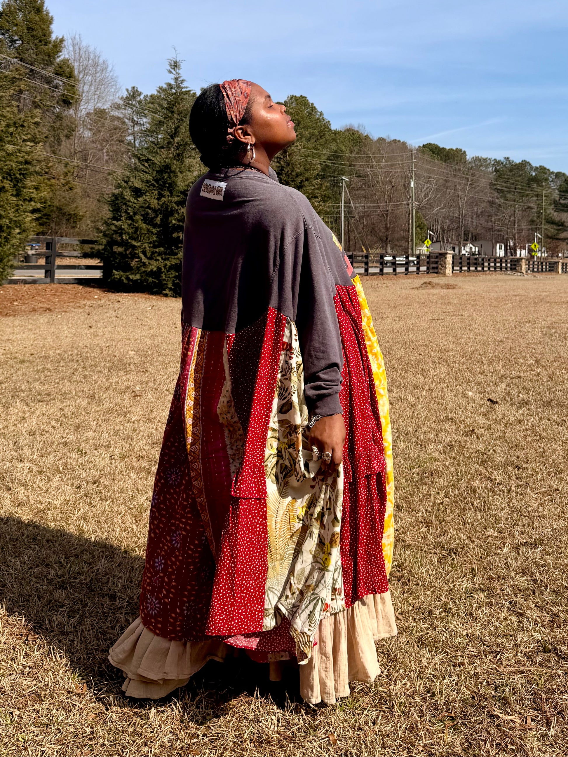 - All fabrics are hand arranged and cut into pieces to make a beautiful dress.