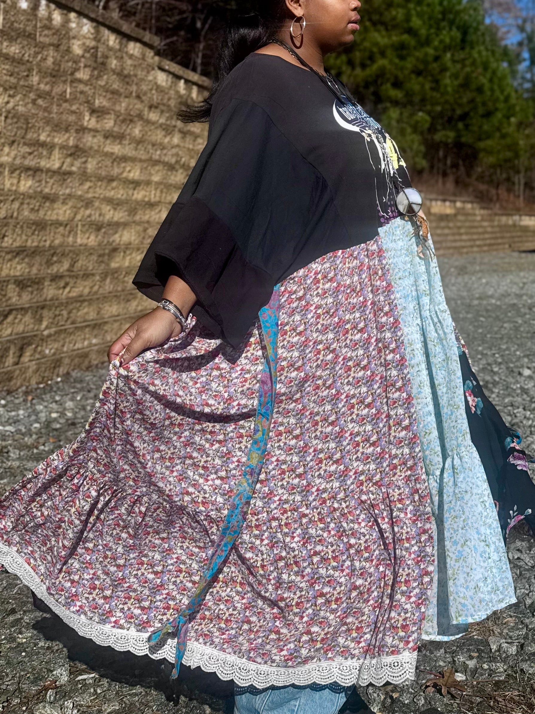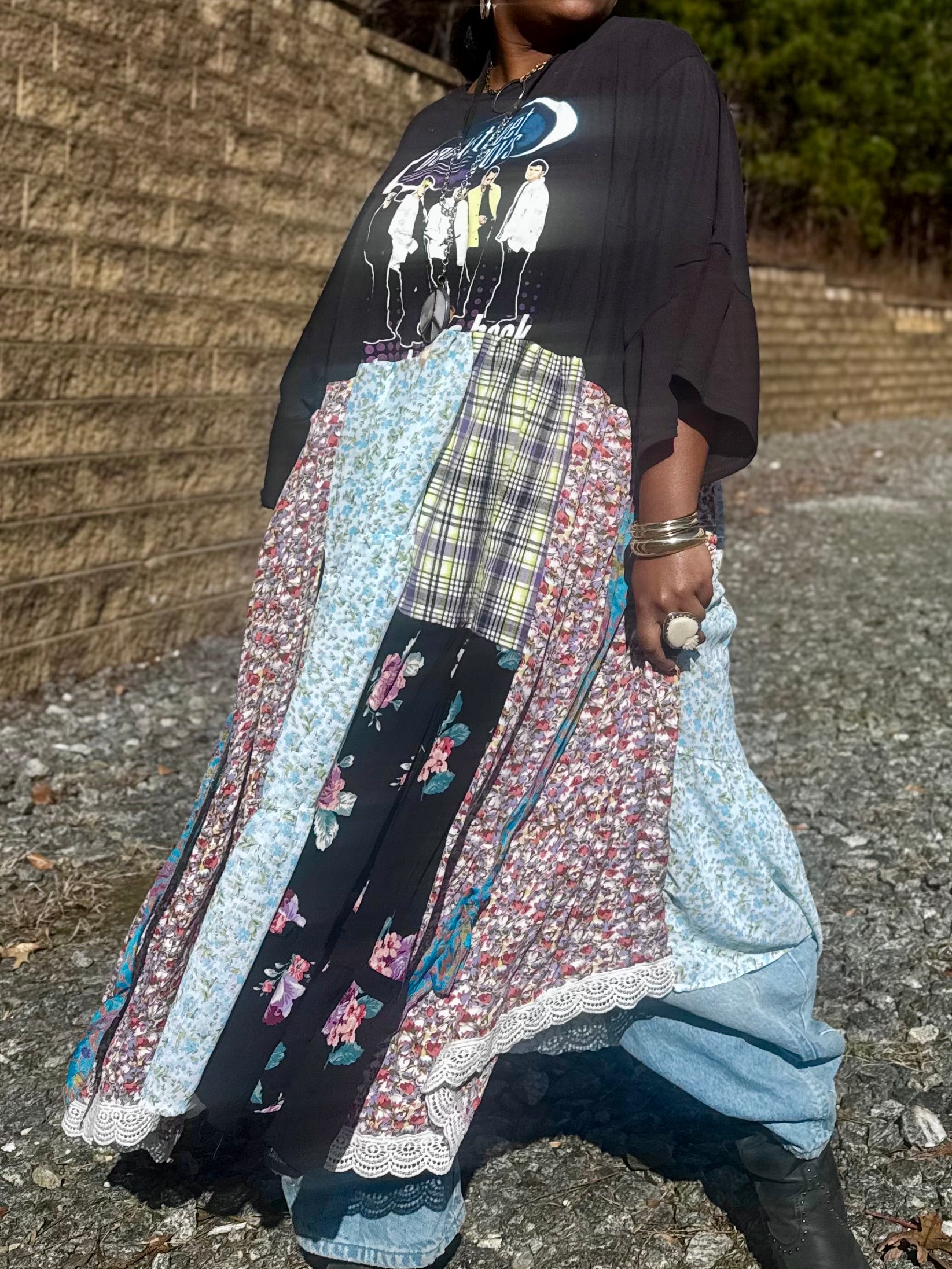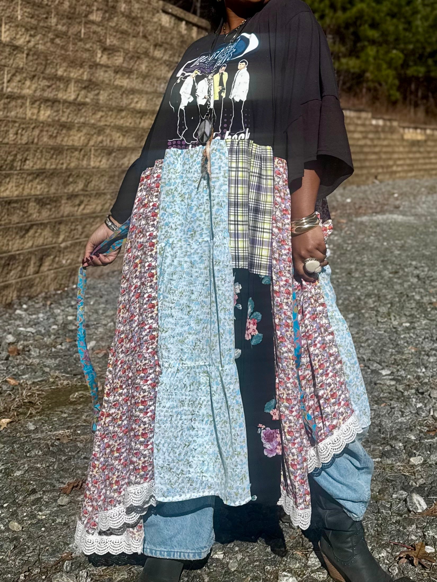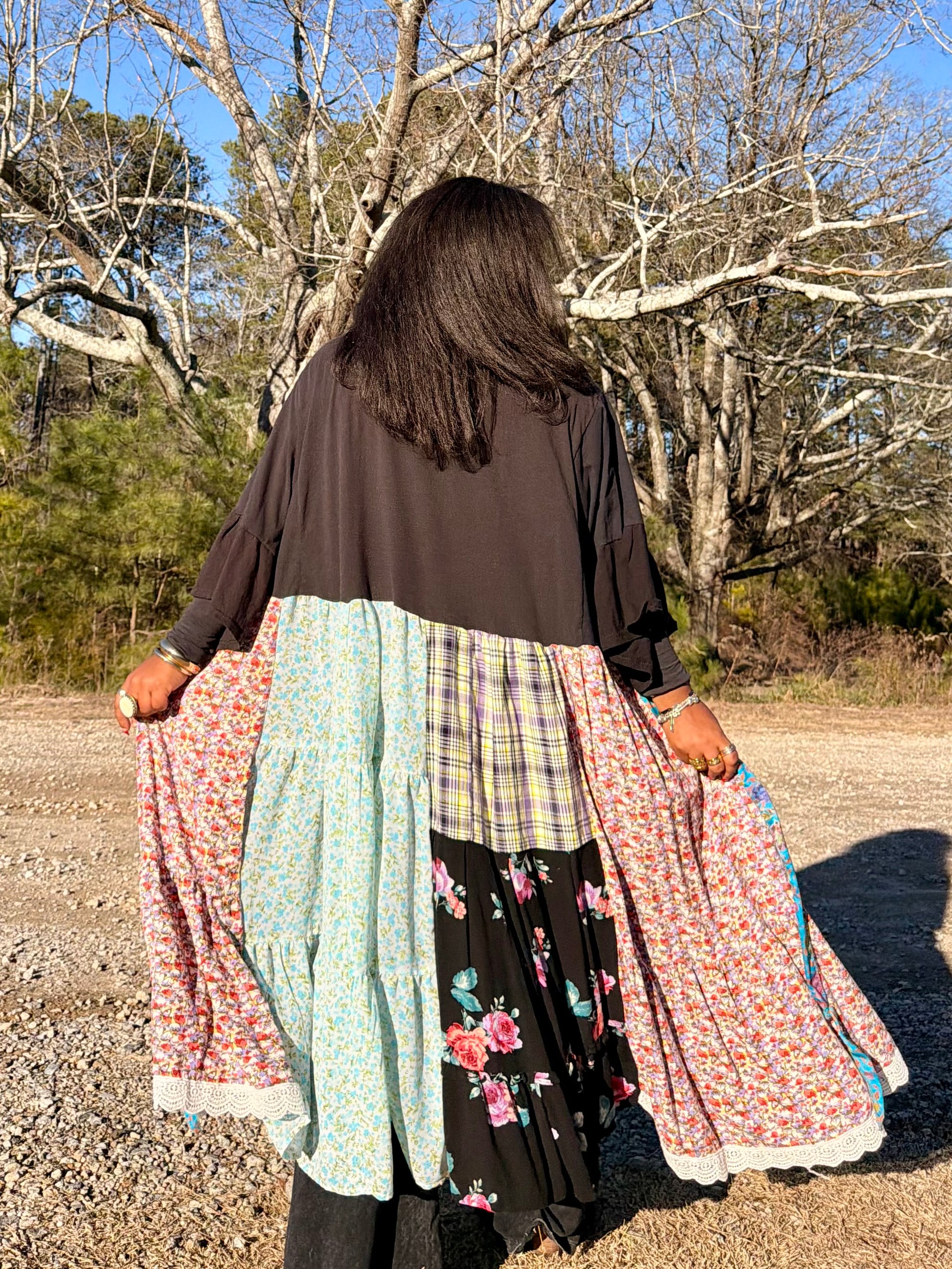 - All fabrics are hand arranged and cut into pieces to make a beautiful skirt.