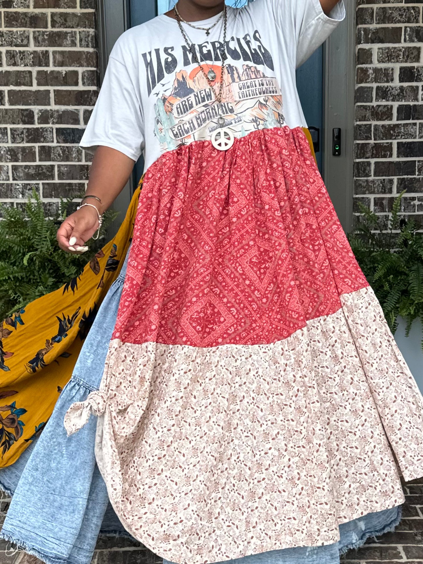 - All fabrics are hand arranged and cut into pieces to make a beautiful skirt.