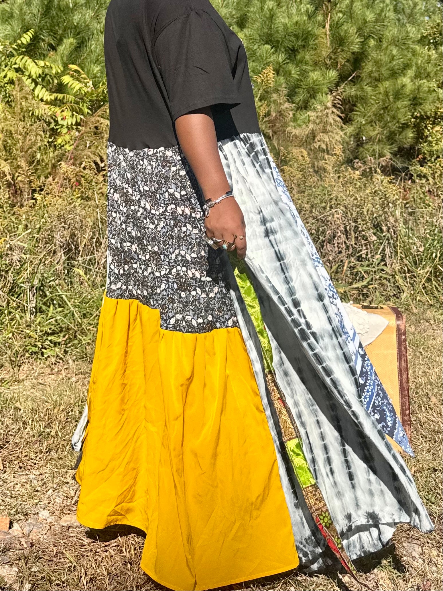 - All fabrics are hand arranged and cut into pieces to make a beautiful skirt.