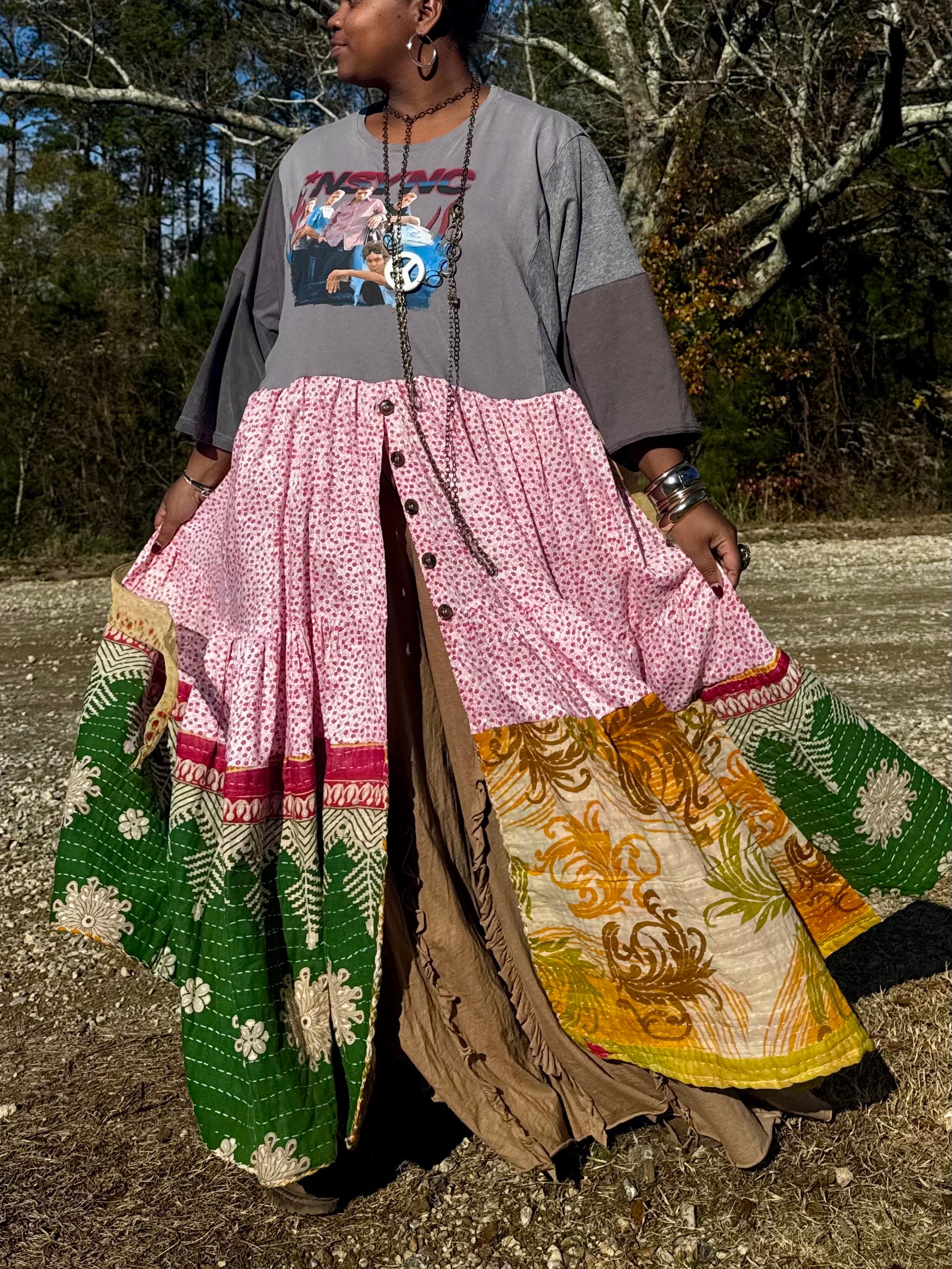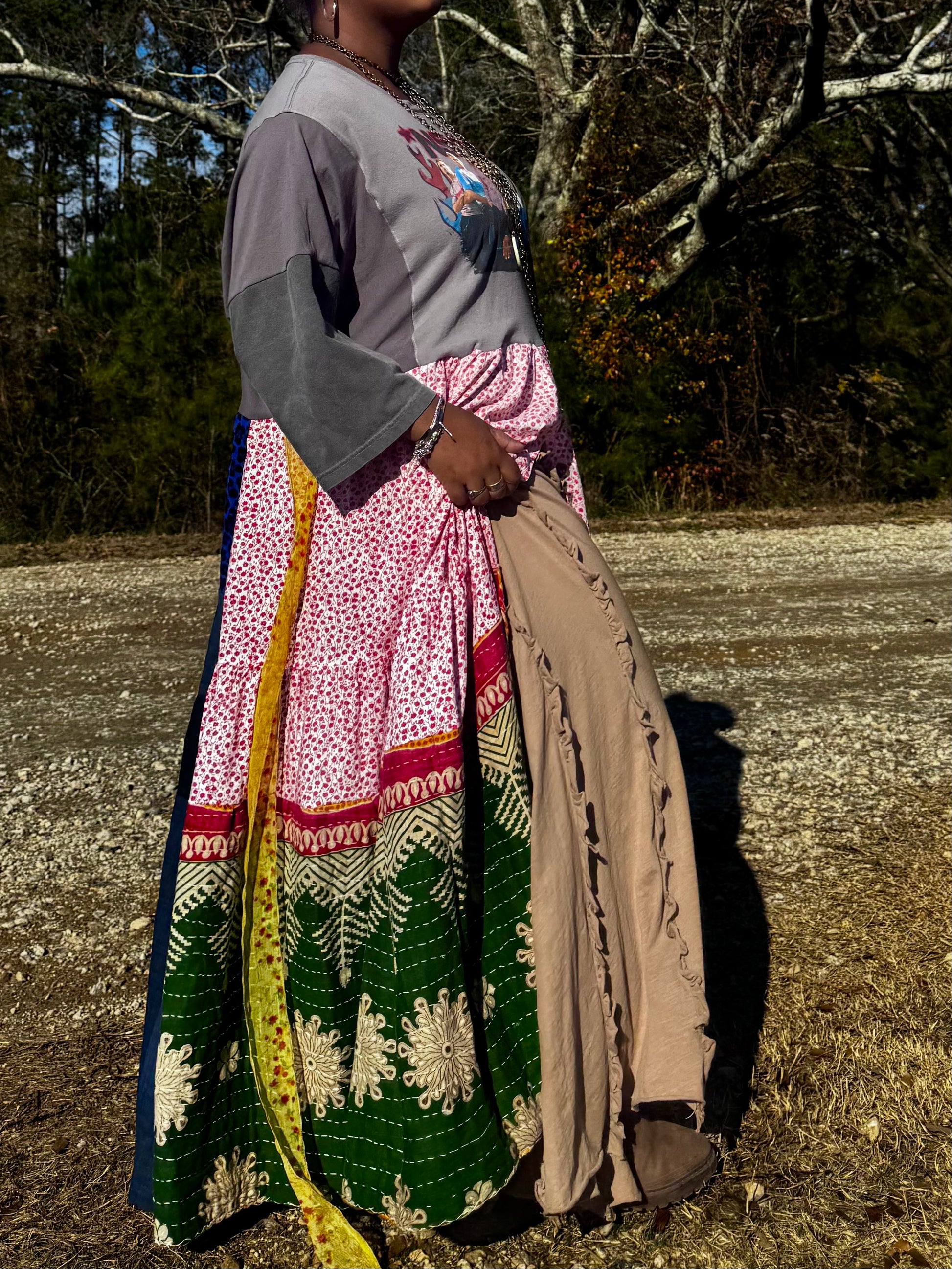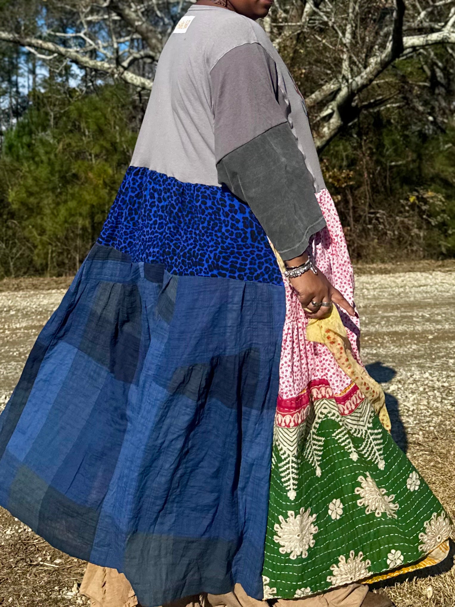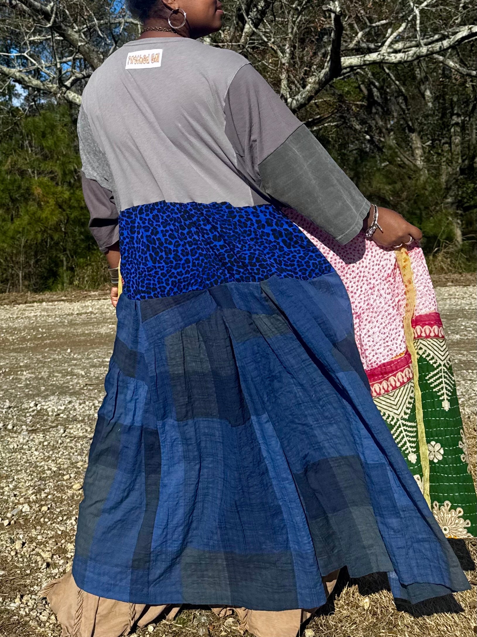 - All fabrics are hand arranged and cut into pieces to make a beautiful skirt.