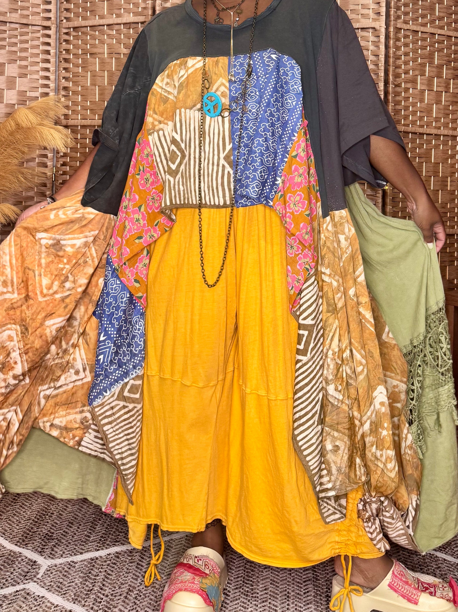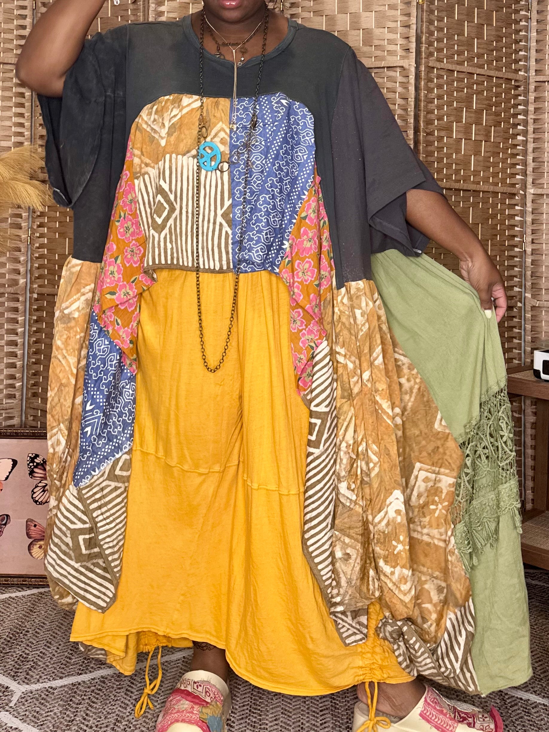 - All fabrics are hand arranged and cut into pieces to make a beautiful skirt.