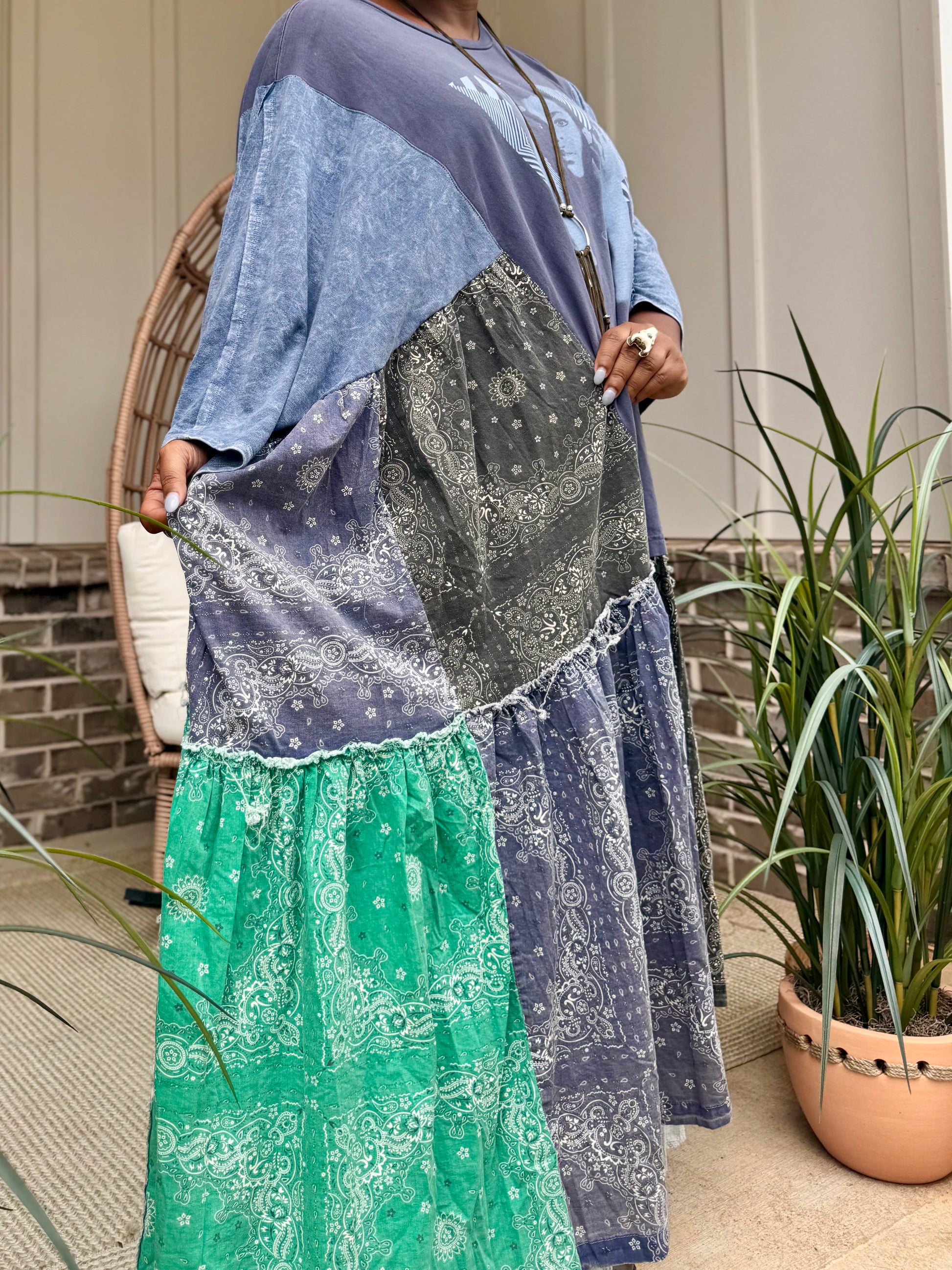 - All fabrics are hand-cut and arranged to make a beautiful patchwork silhouette.