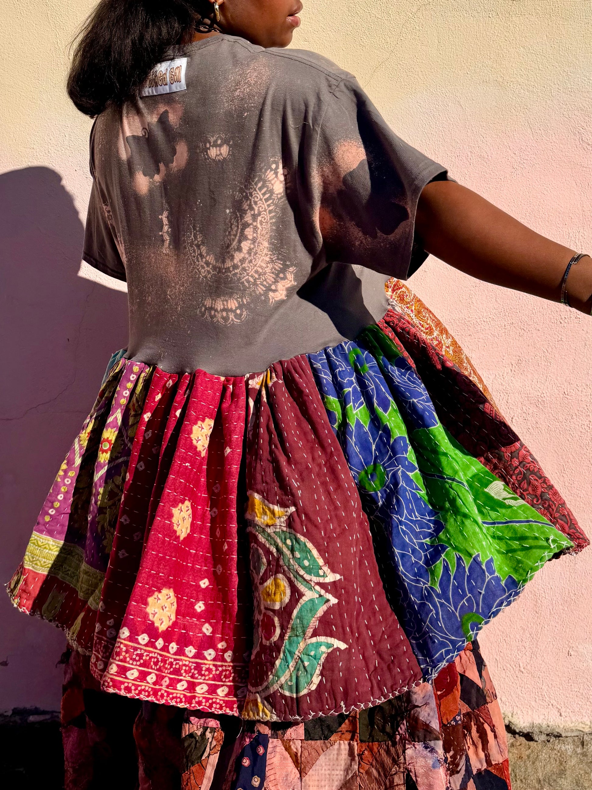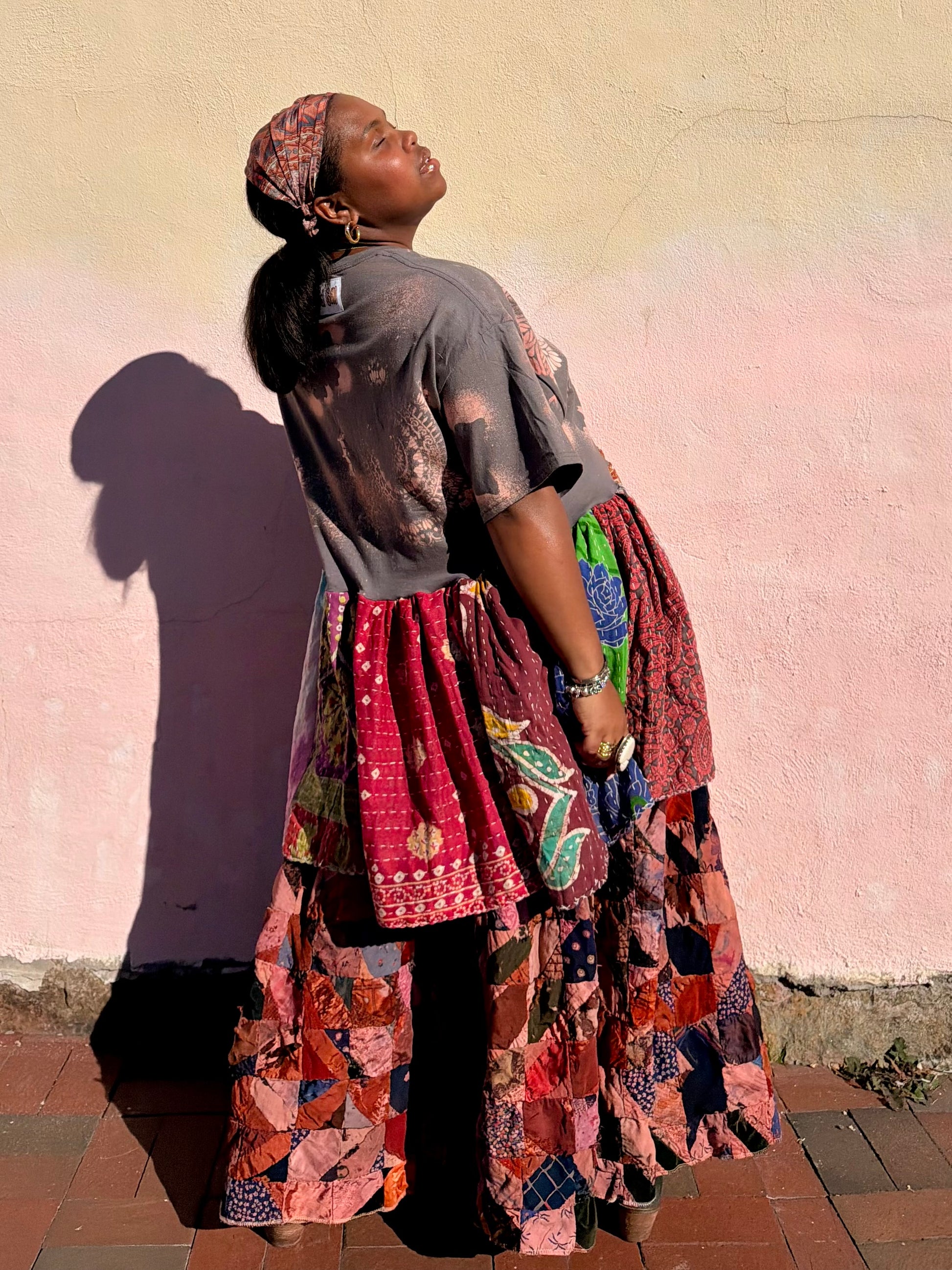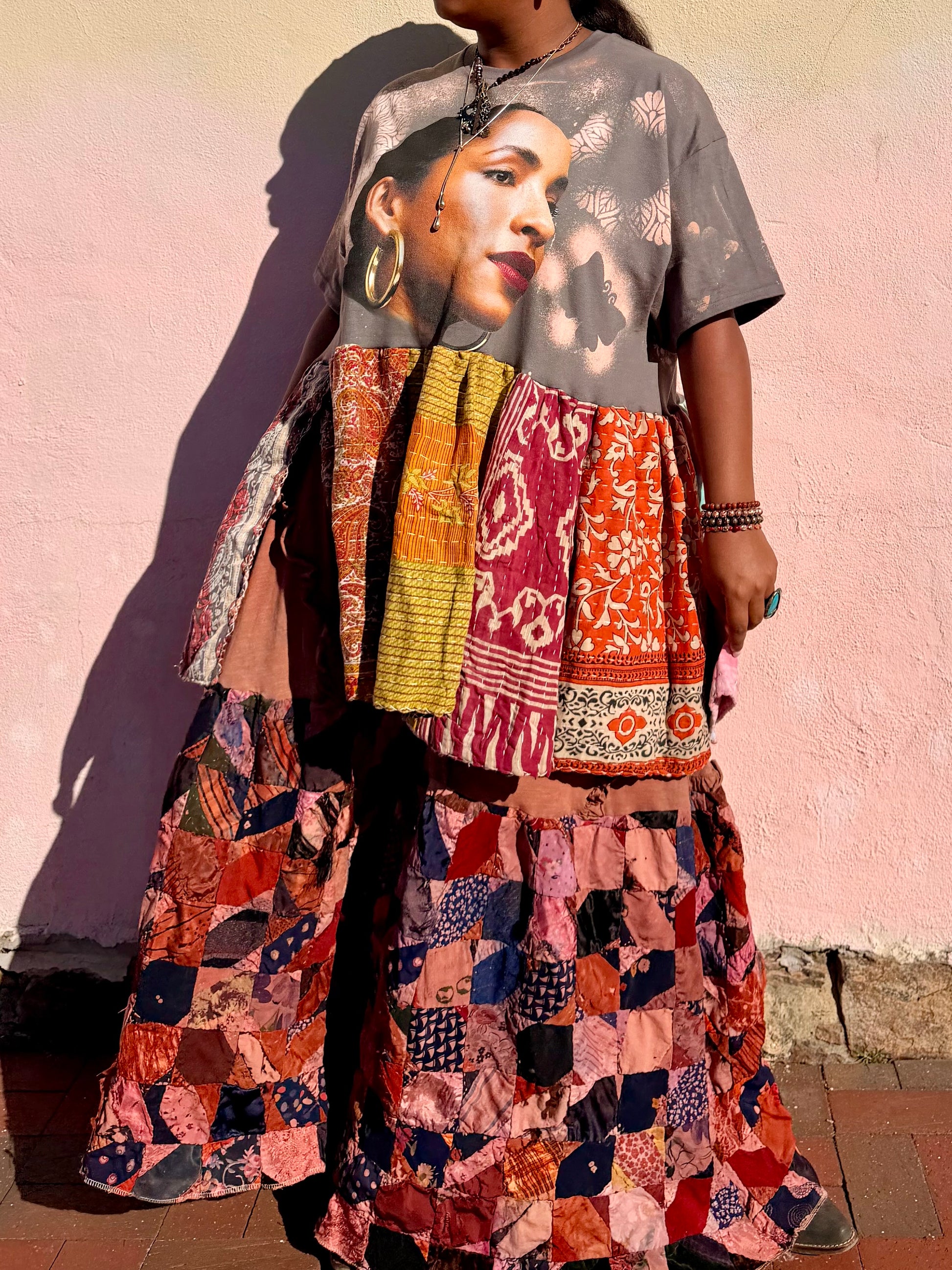 - All fabrics are hand arranged and cut into pieces to make a beautiful skirt.