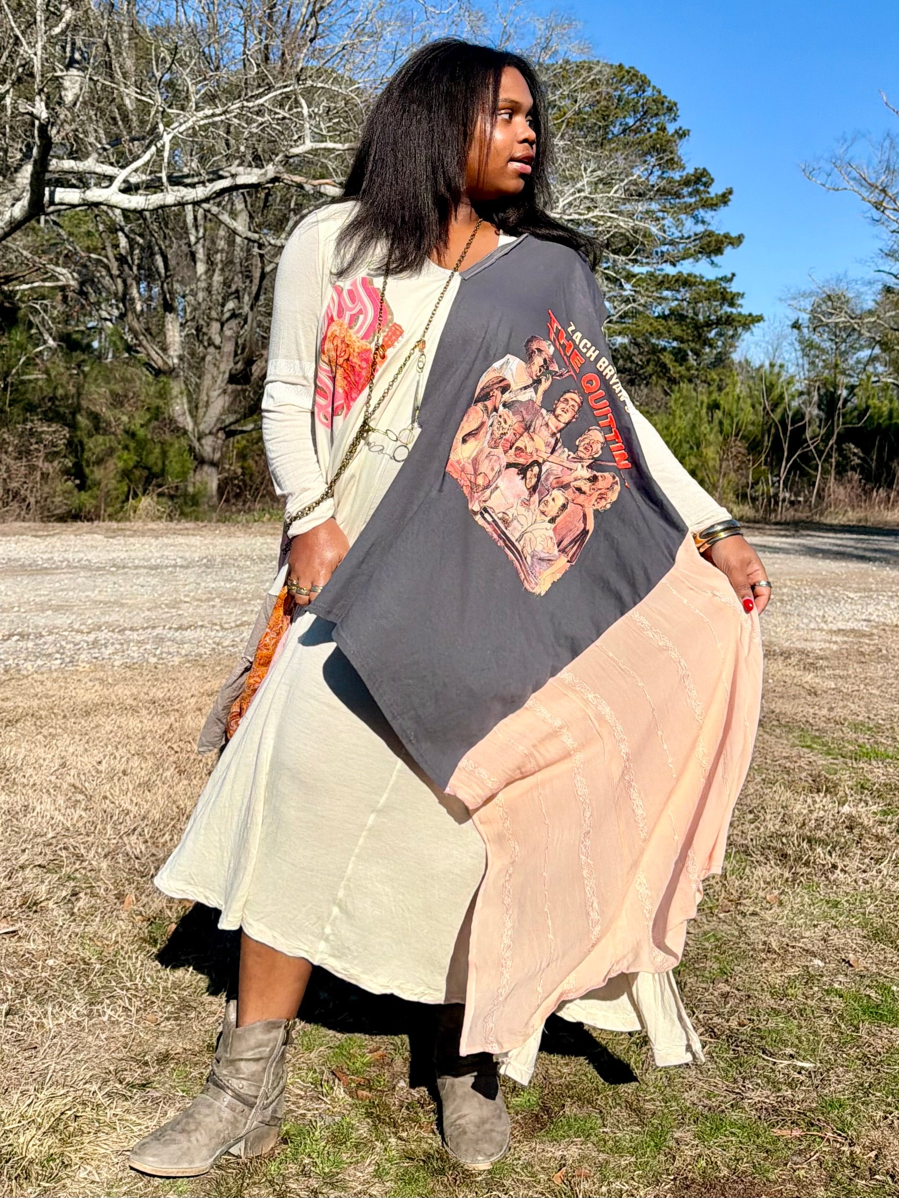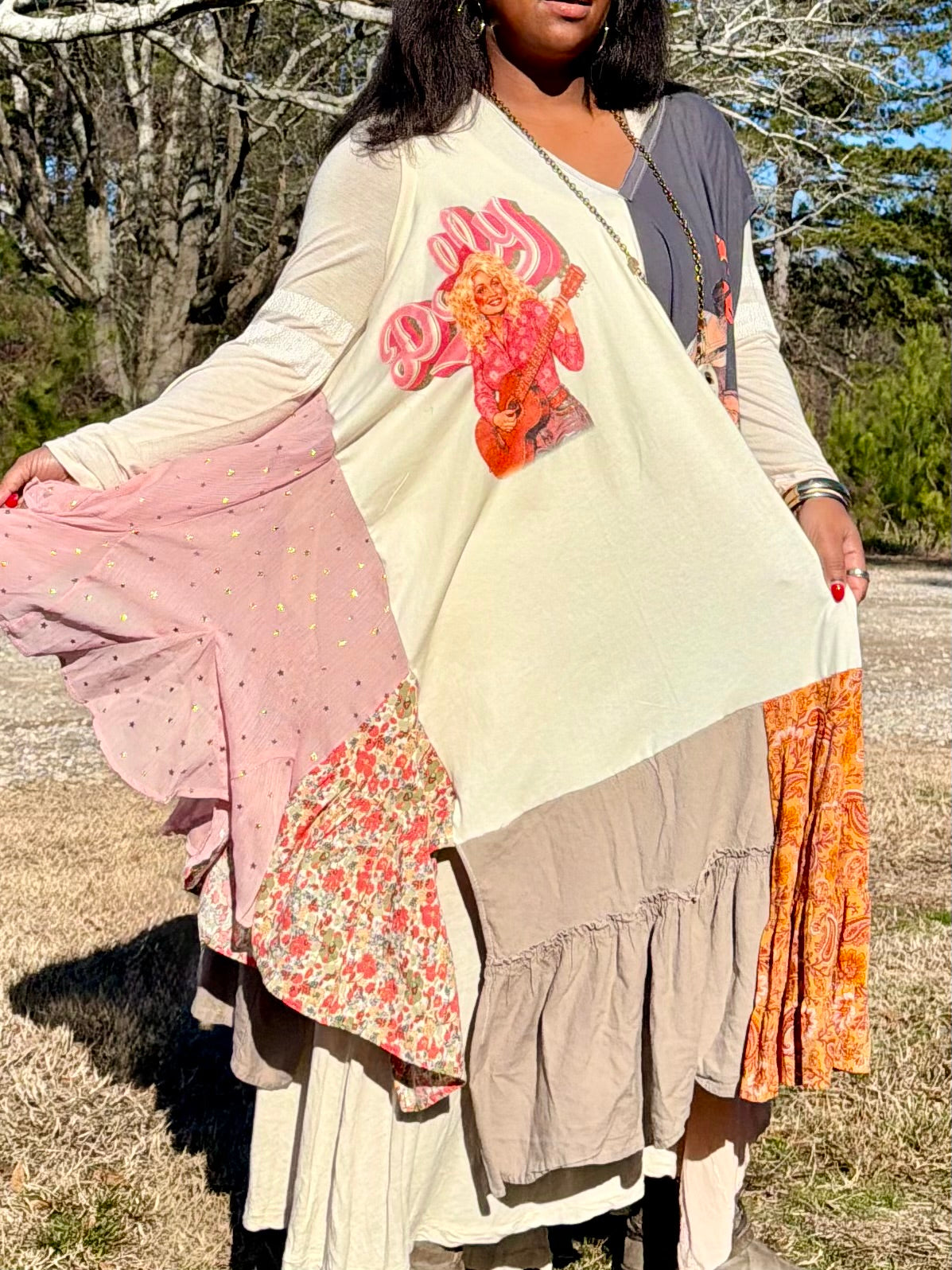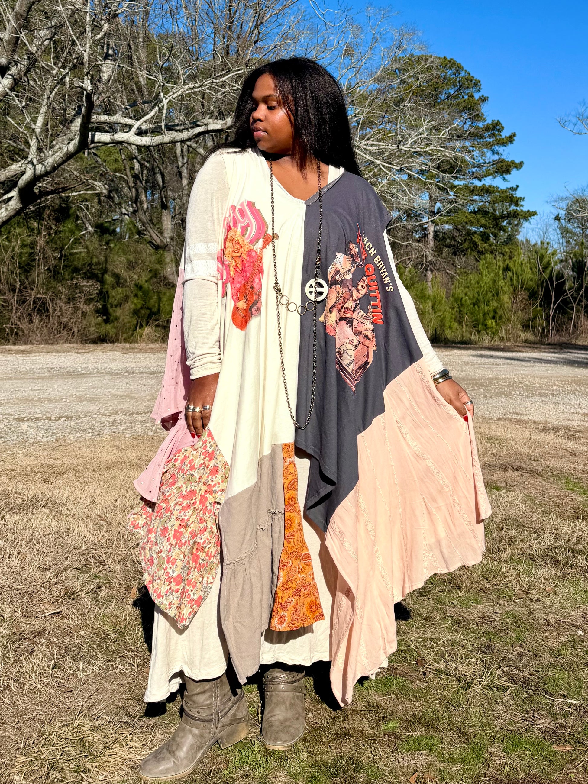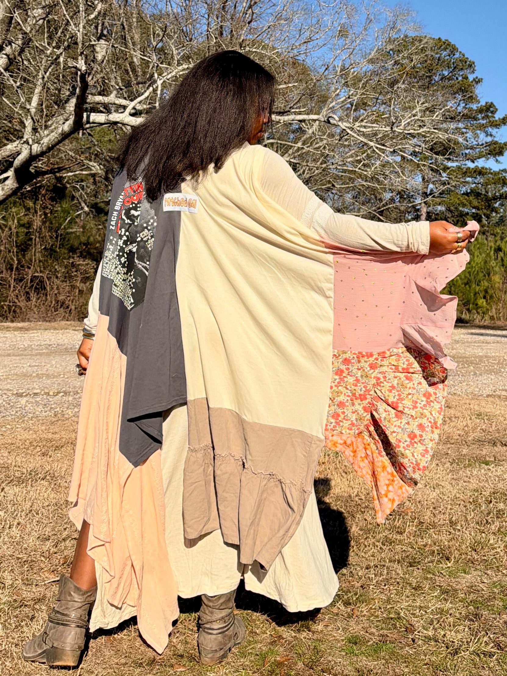 - Made with 2 tshirts and patchwork fabric.