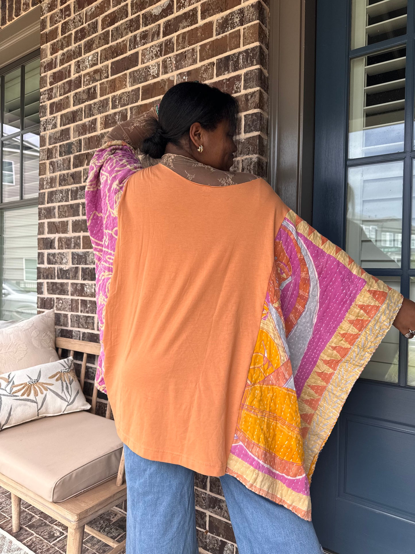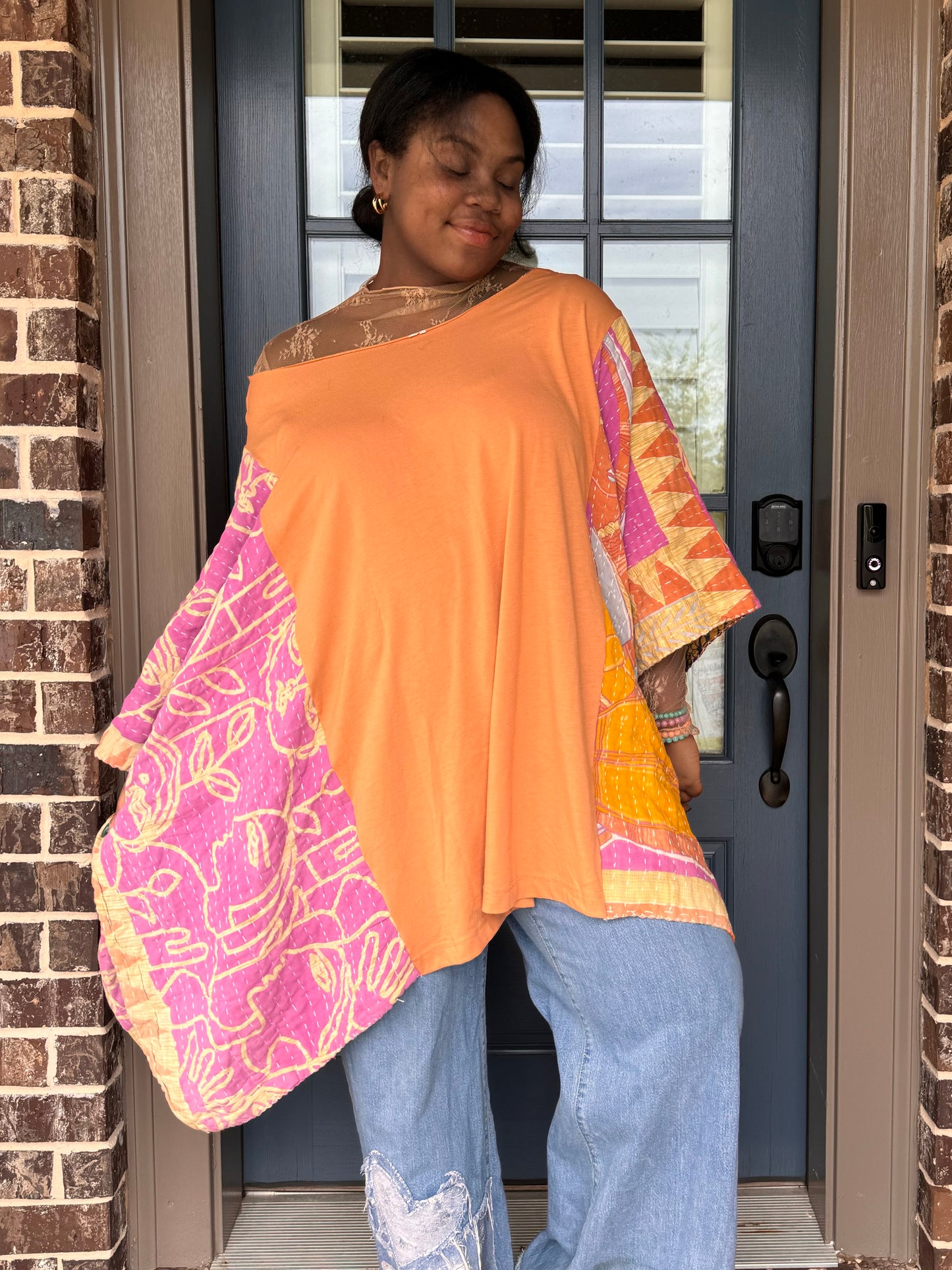 - Sierra is 5'4, usually a size large and can fit all of the poncho tees.