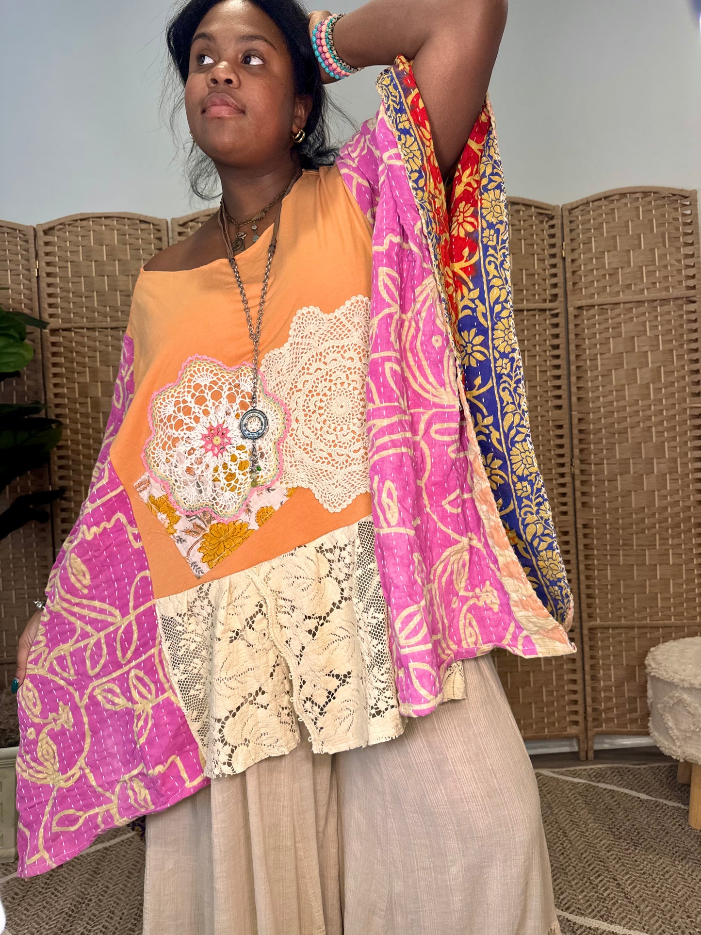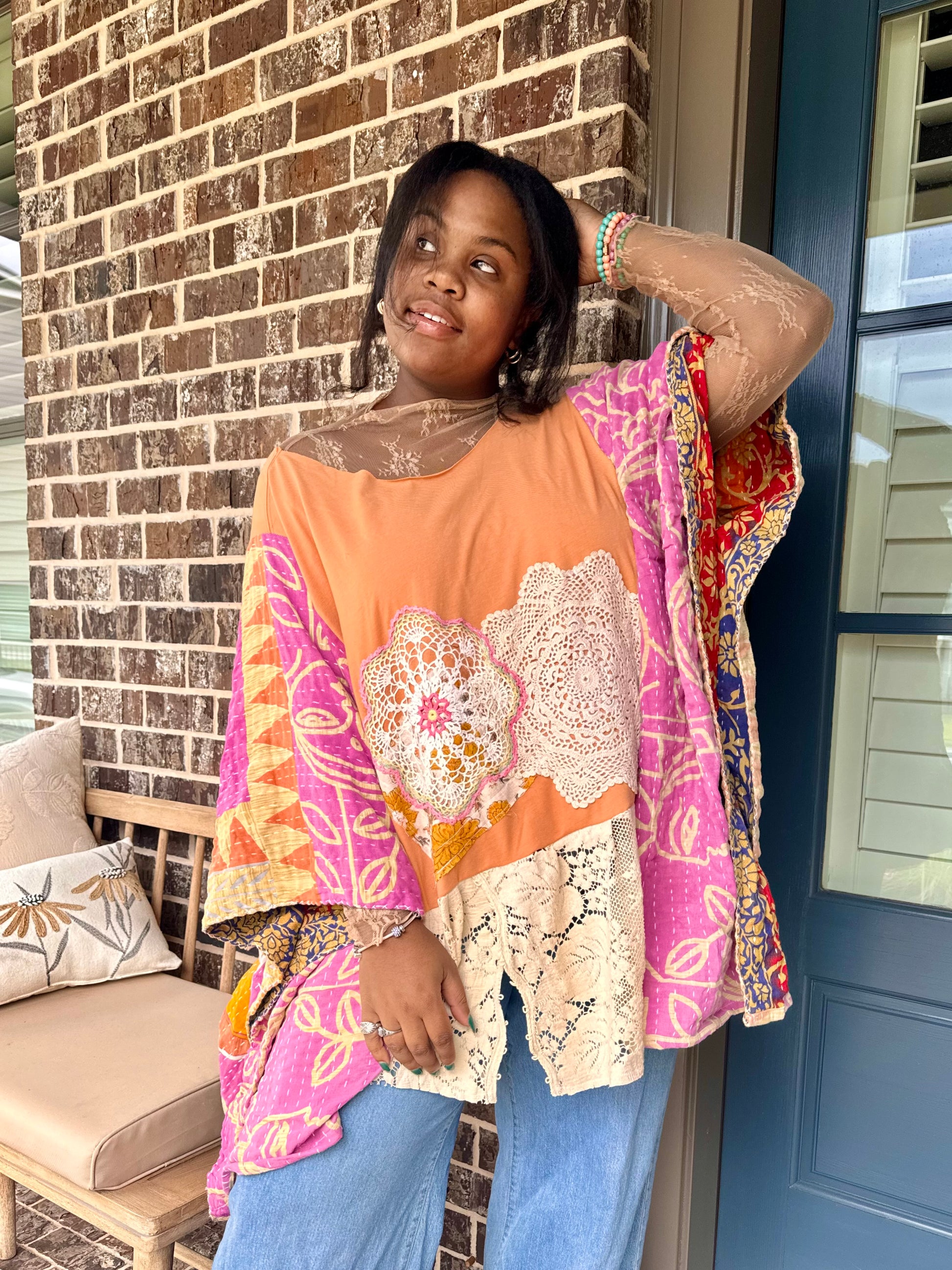 Large-4XL Lace Doiley Kaftan Poncho