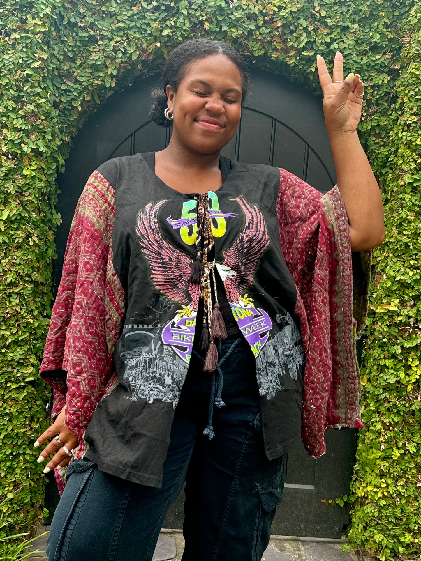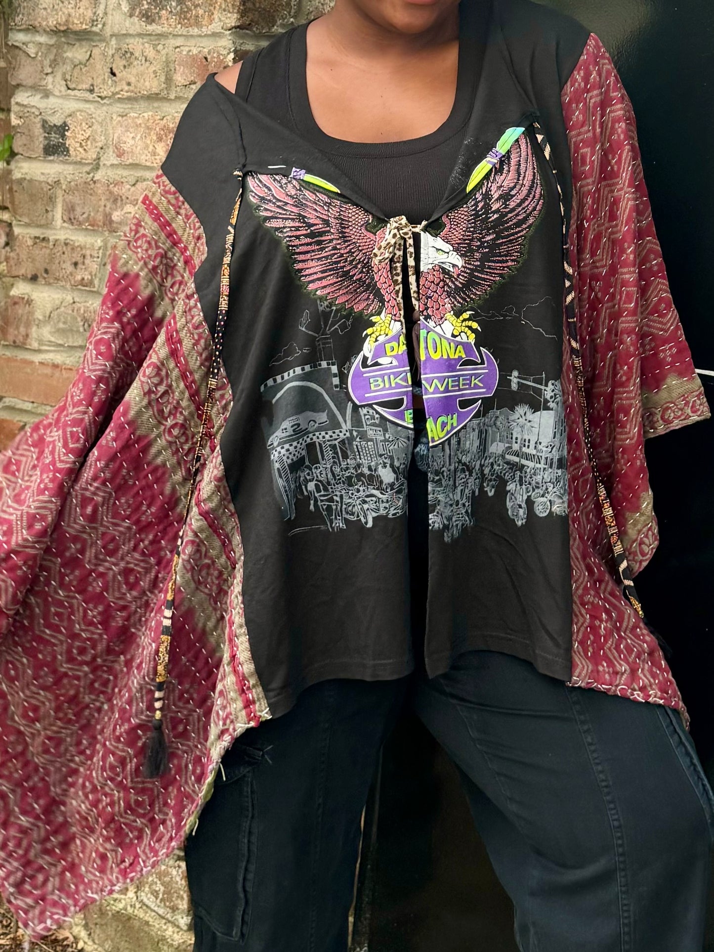 - This kimono can be converted into a top and is also reversible!