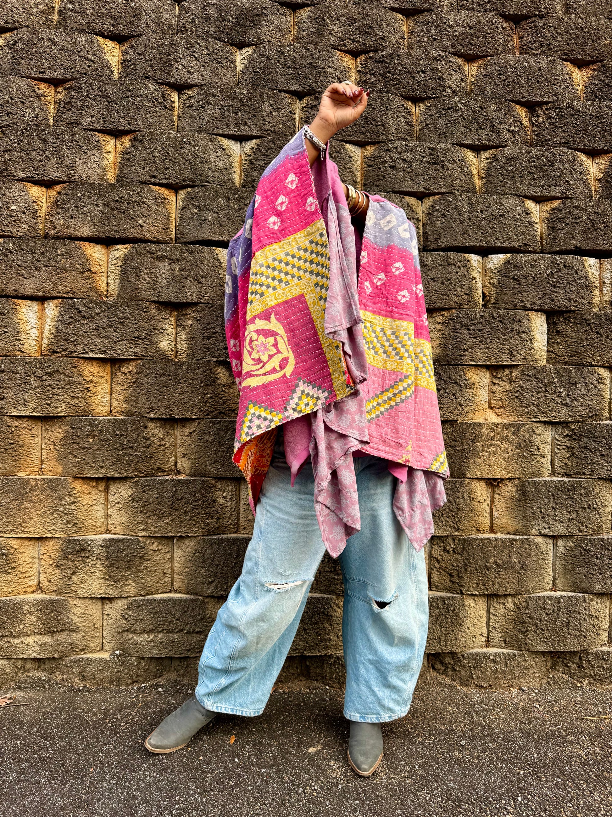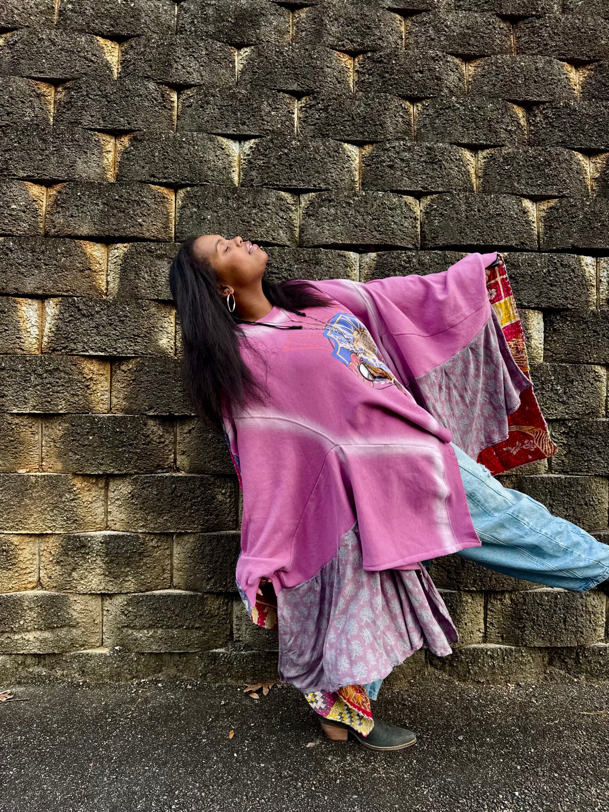 - Upcycled from a zip up jacket, lace doiley's, skirts, and table cloths.