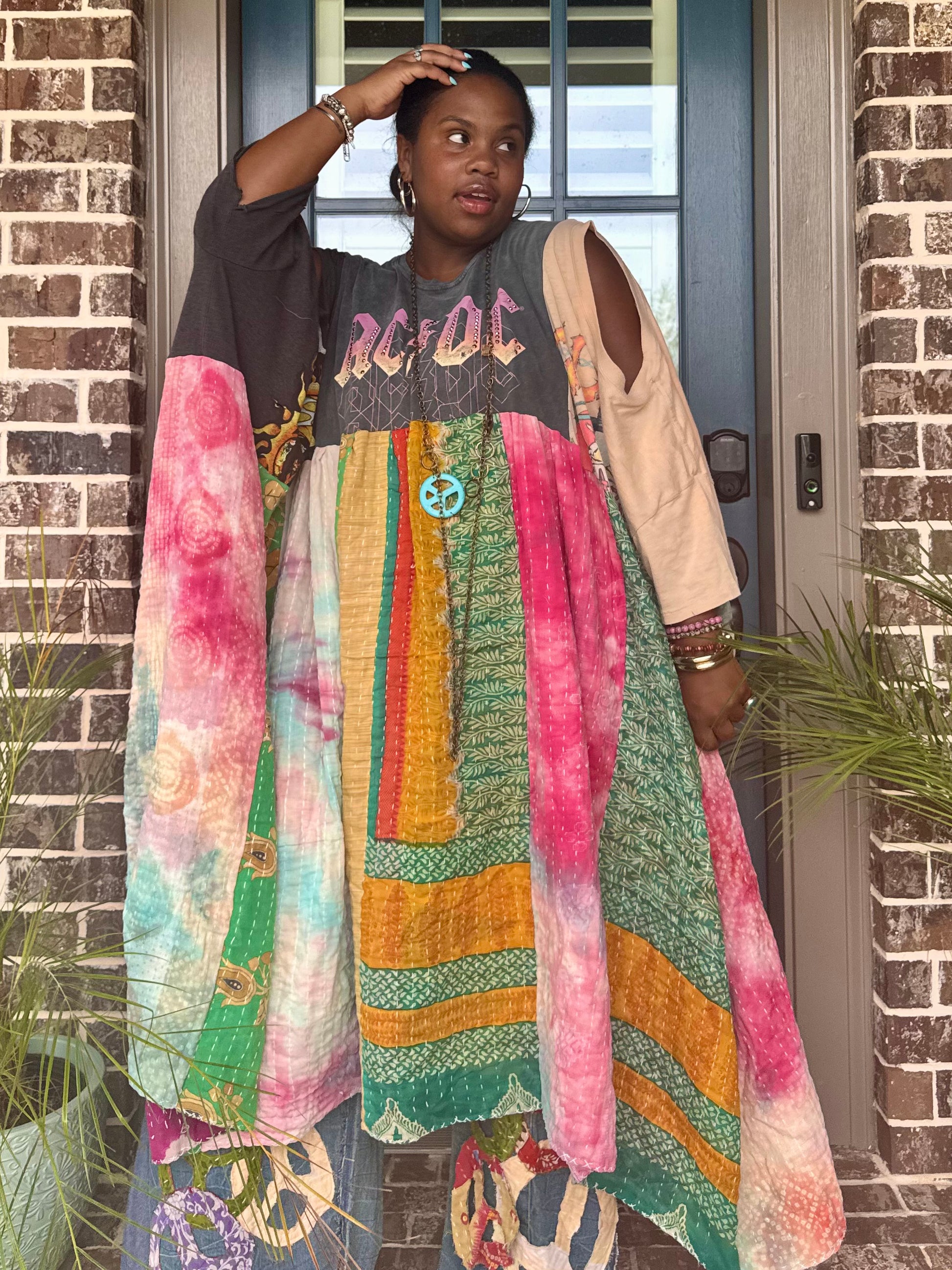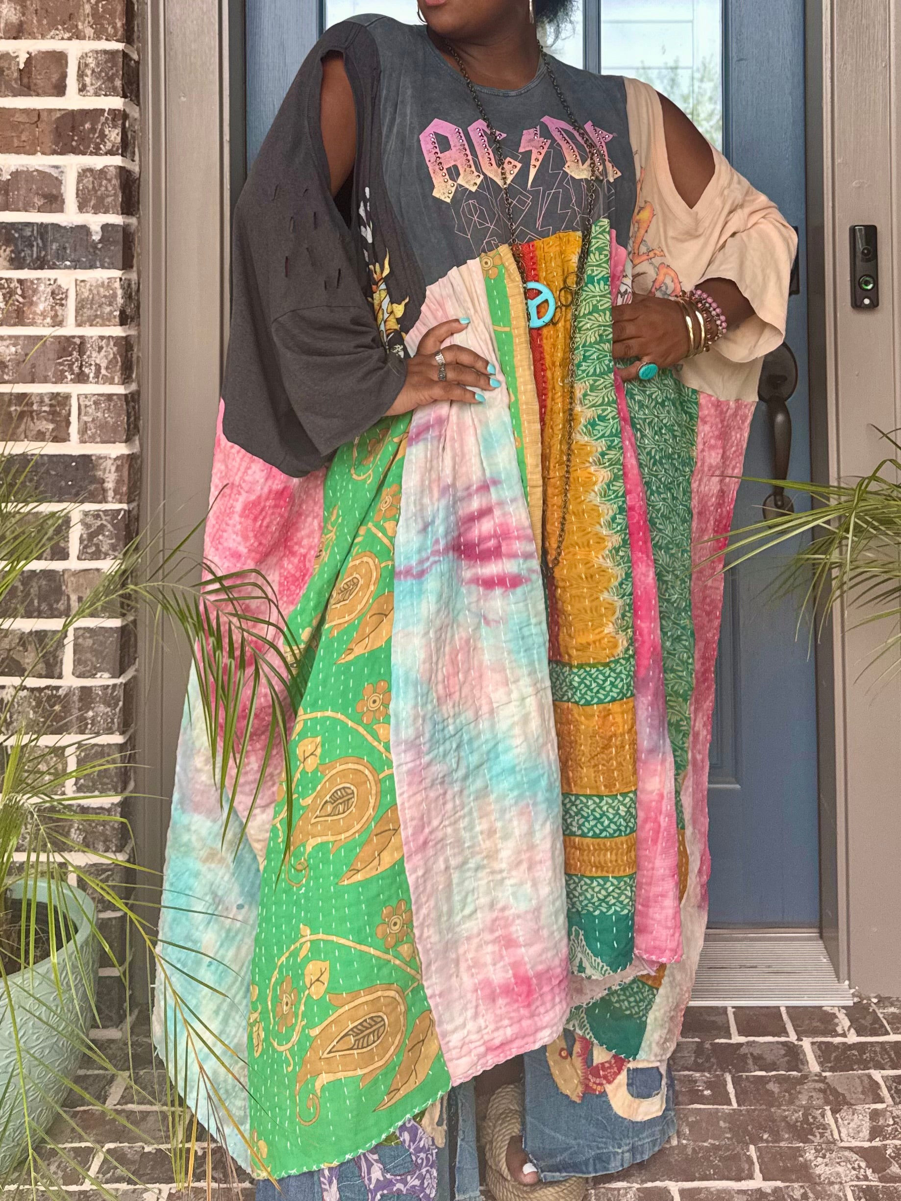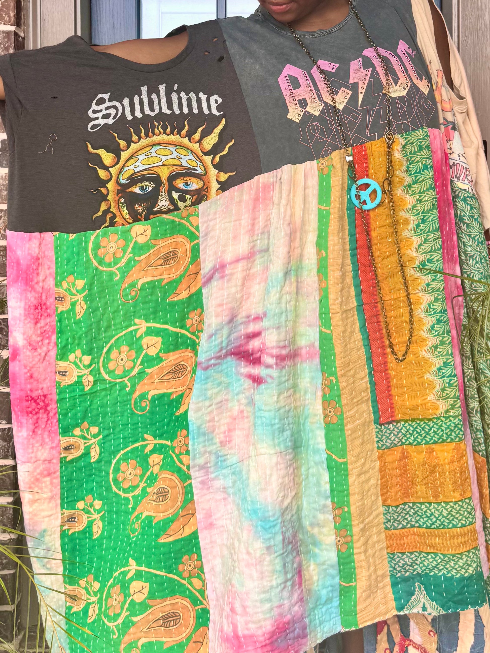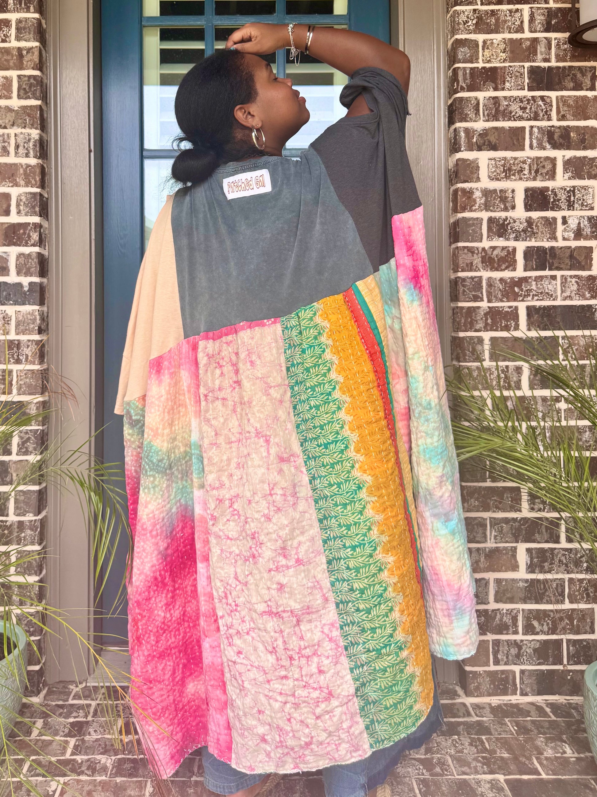 - Made with 3 tshirts and patchwork fabric.