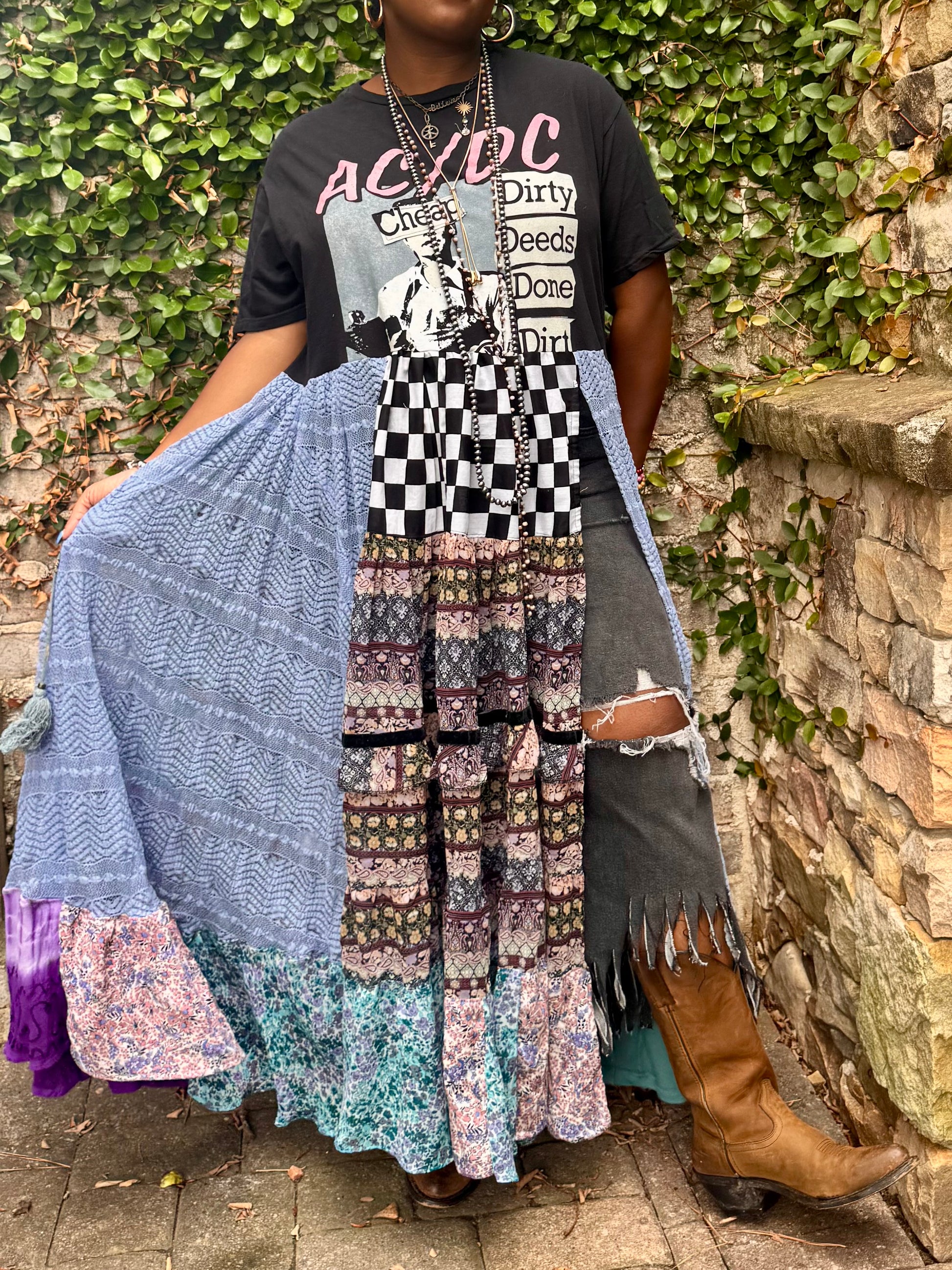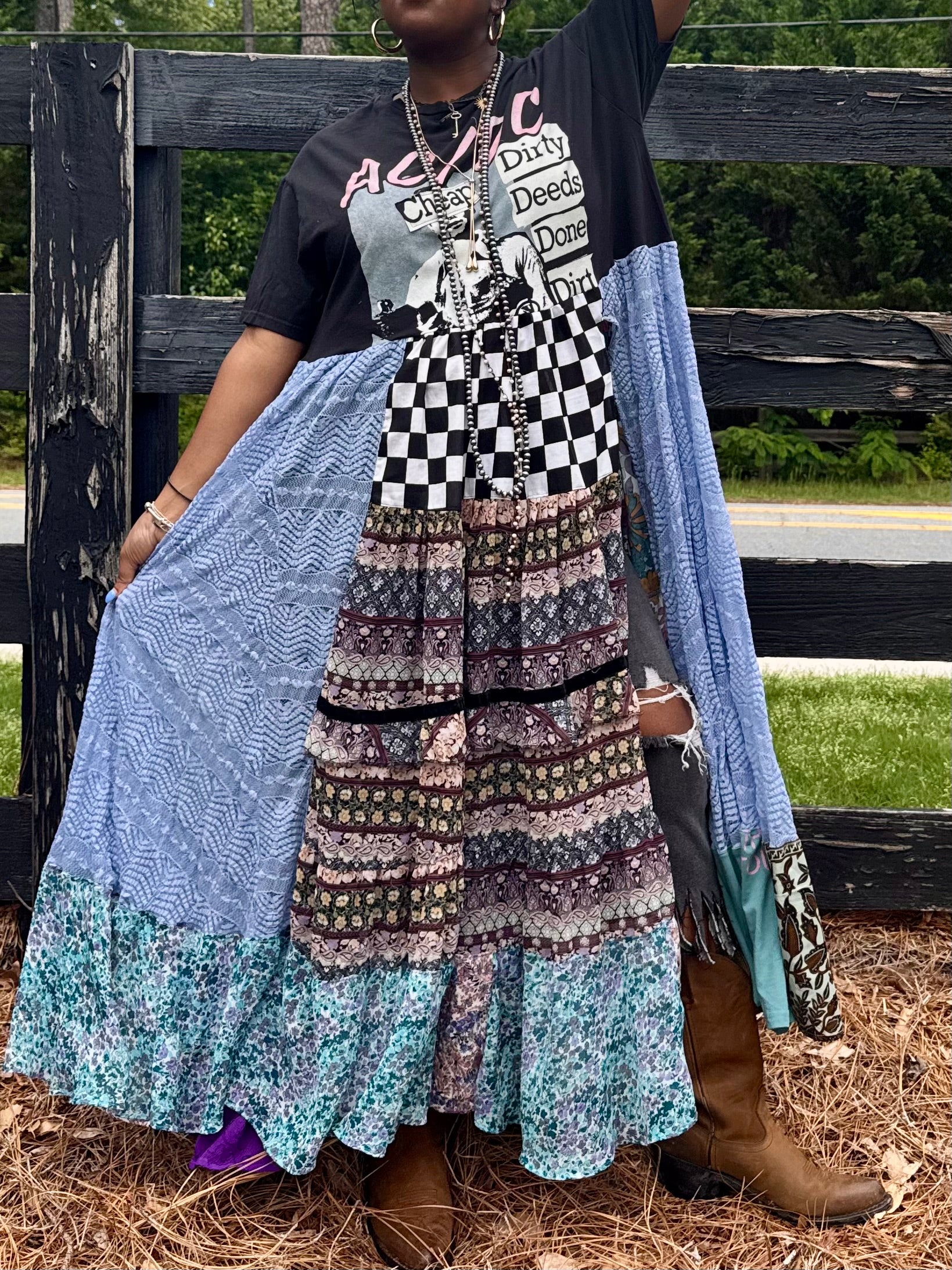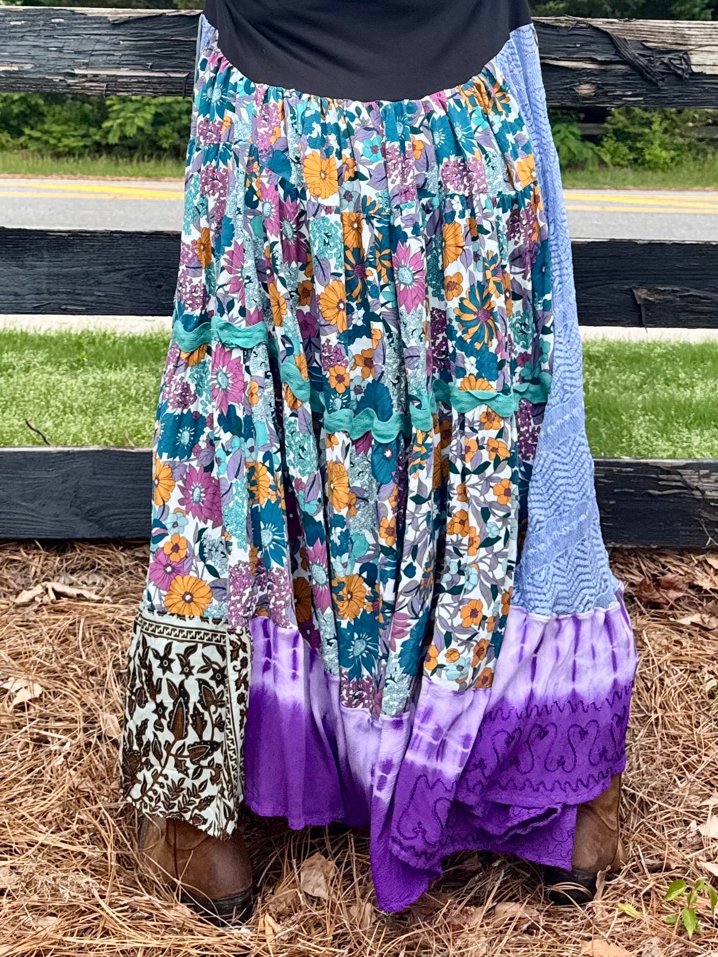 - All fabrics are hand arranged and cut into pieces to make a beautiful skirt.
