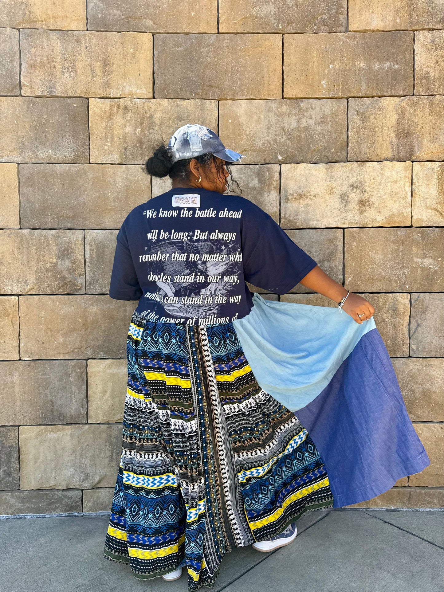 - All fabrics are hand arranged and cut into pieces to make a beautiful skirt.