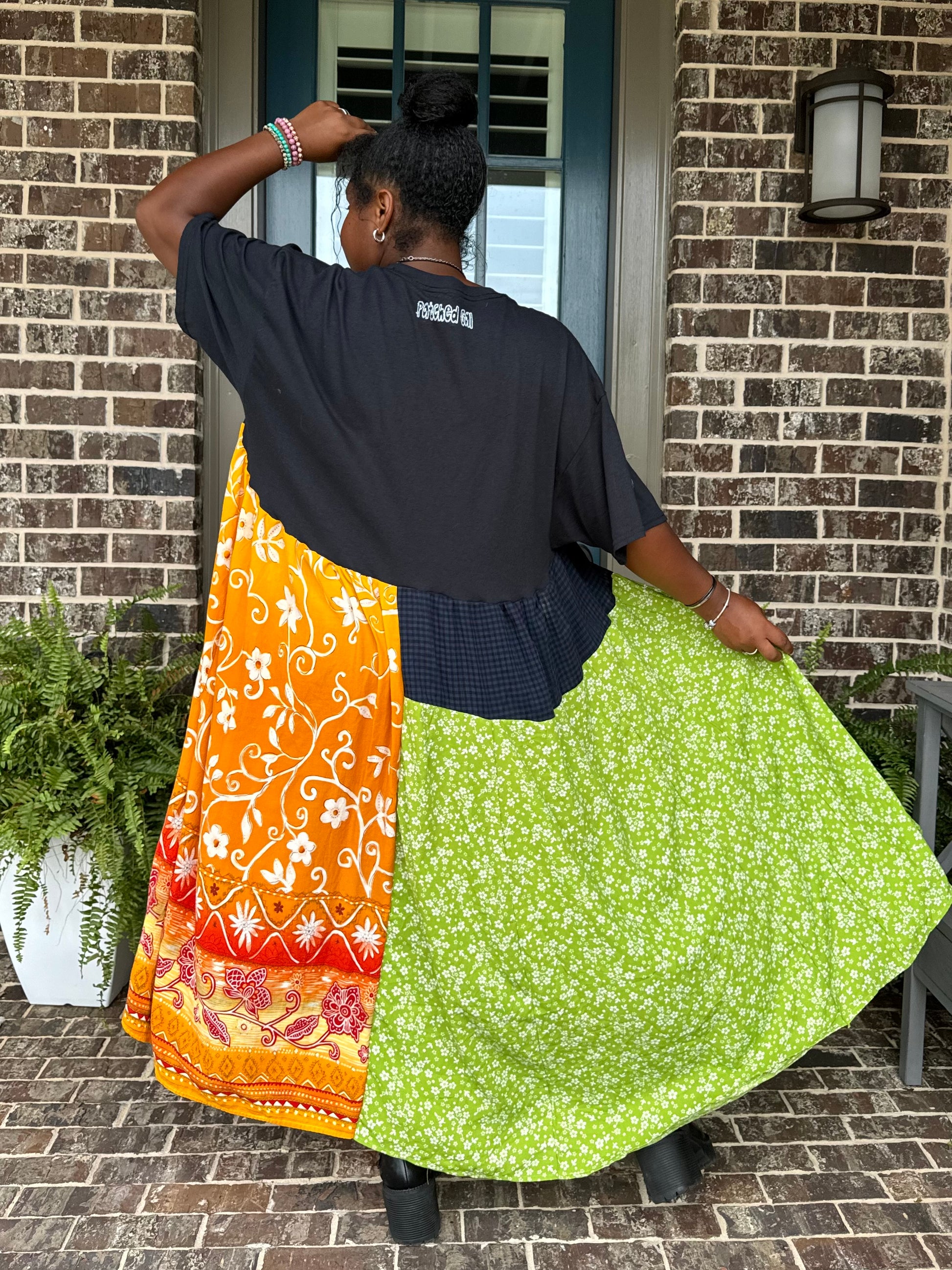 - All fabrics are hand arranged and cut into pieces to make a beautiful skirt.
