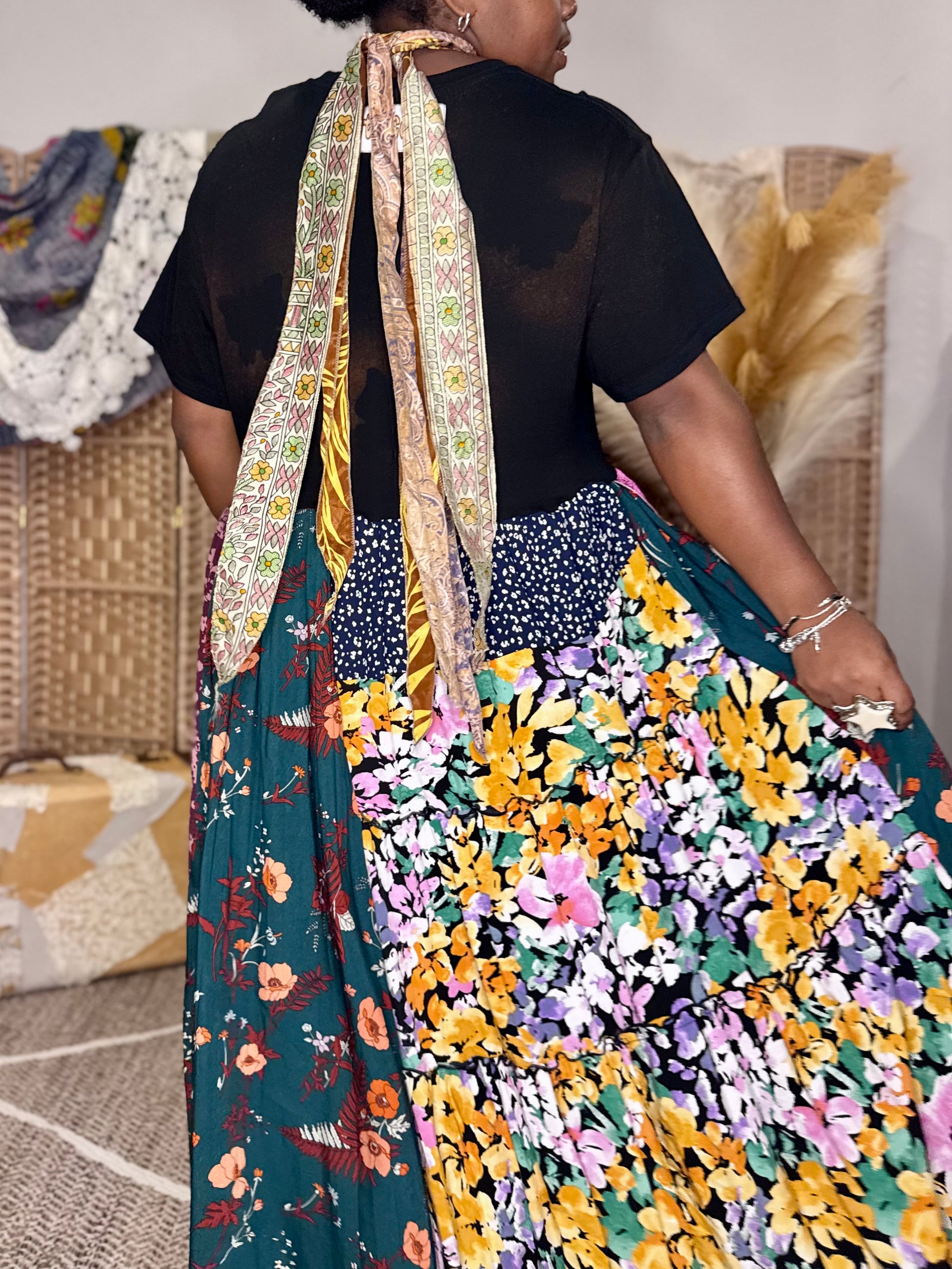 - All fabrics are hand arranged and cut into pieces to make a beautiful skirt.