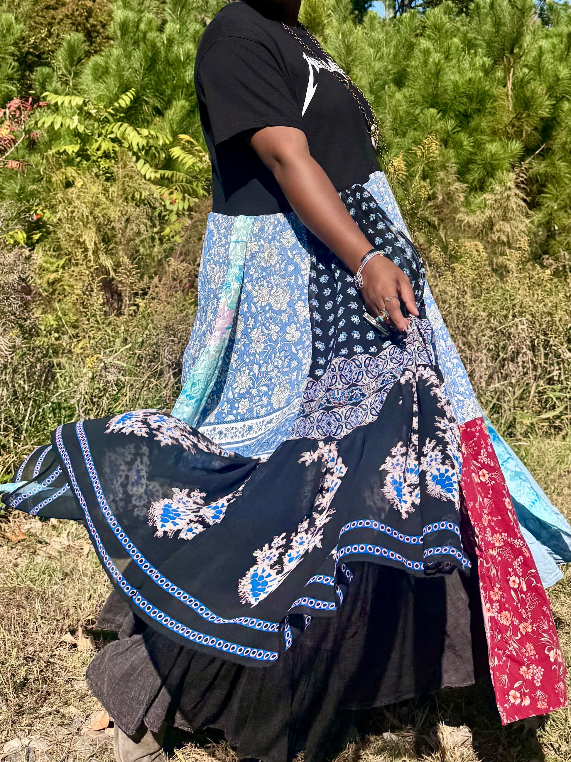 - All fabrics are hand arranged and cut into pieces to make a beautiful skirt.