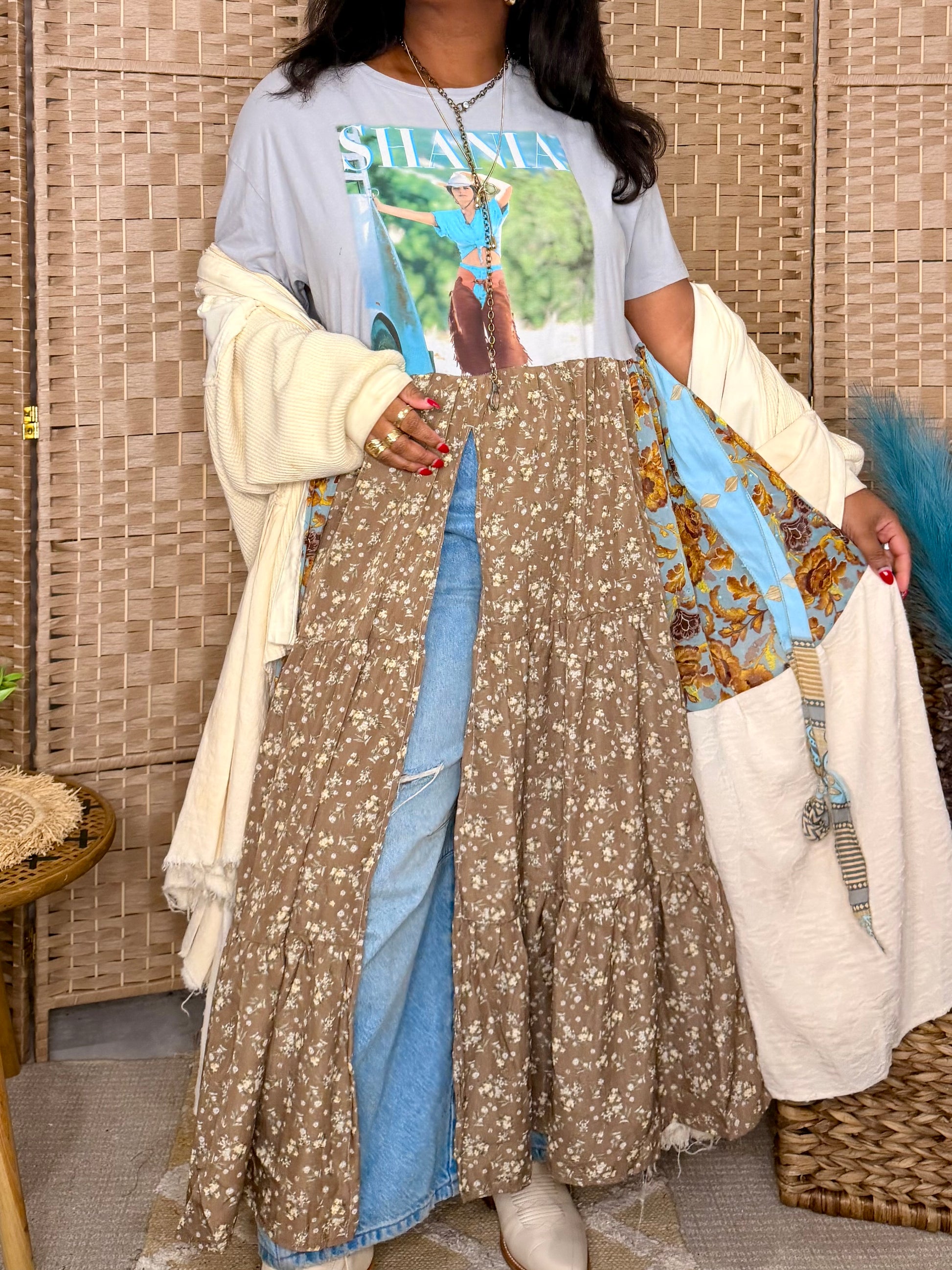 - All fabrics are hand arranged and cut into pieces to make a beautiful skirt.