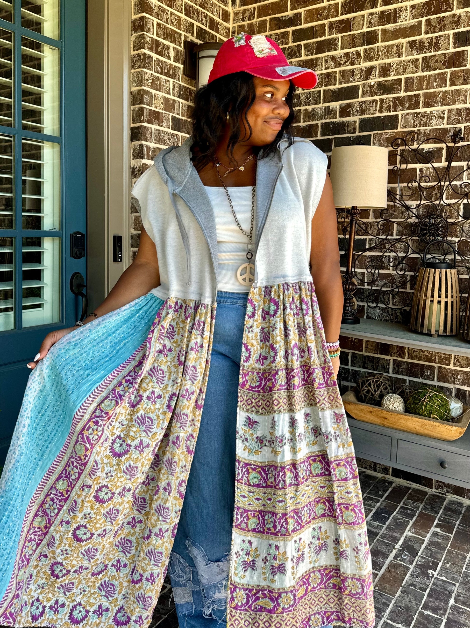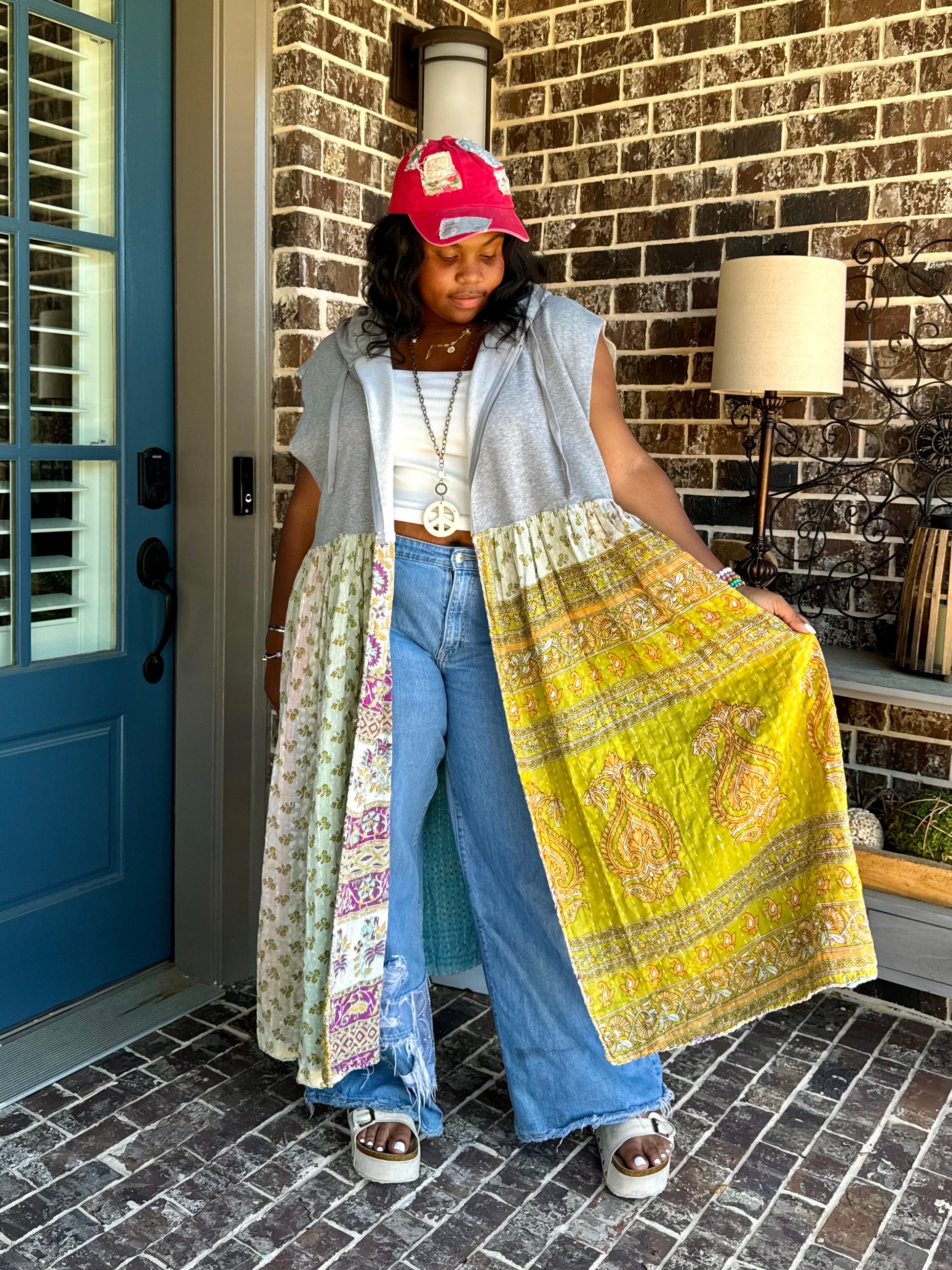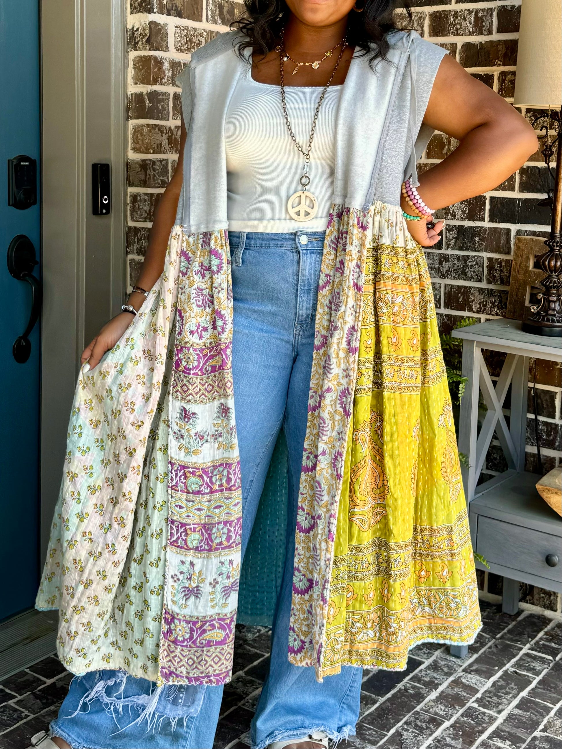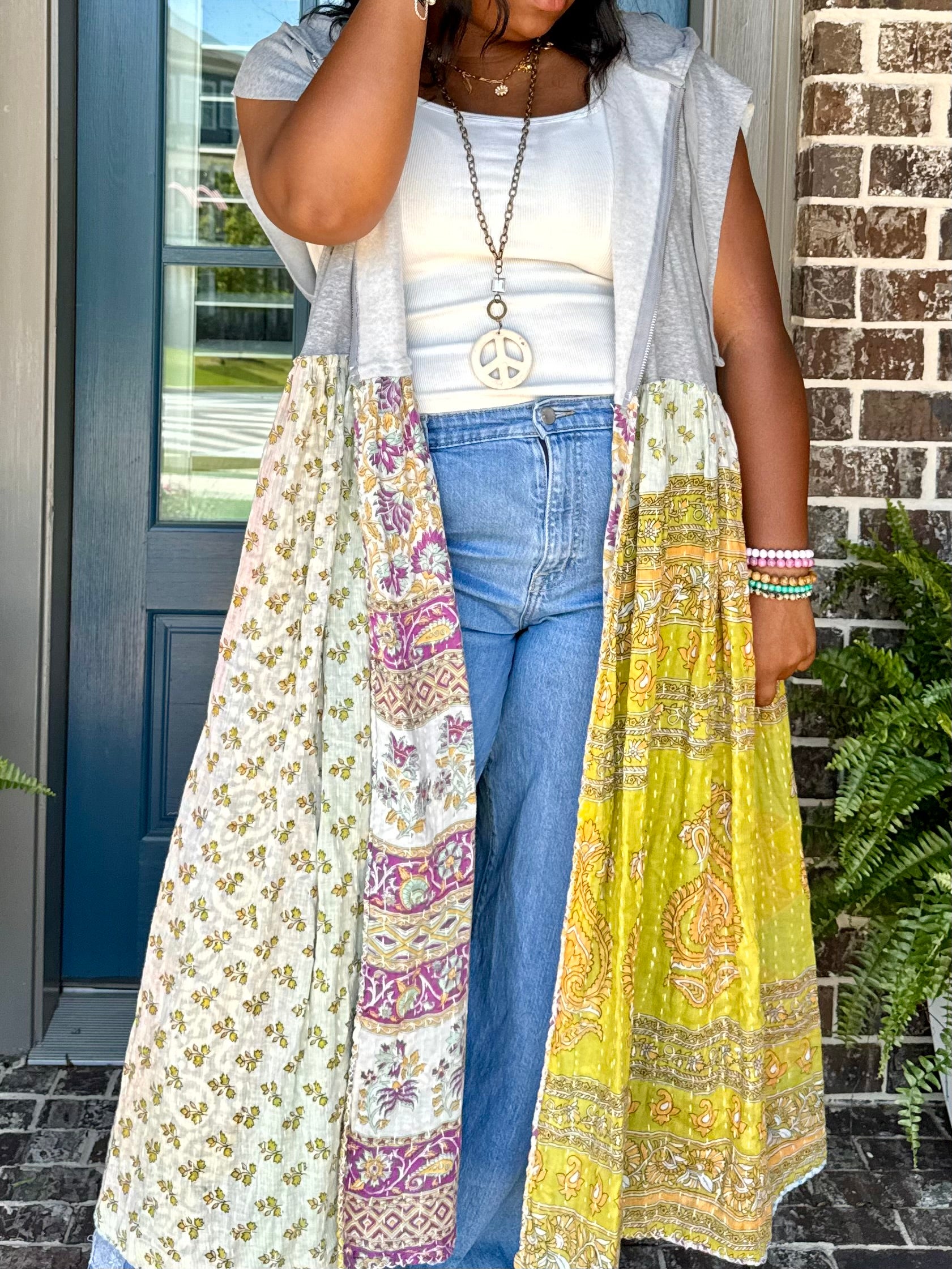 Large-3XL Upcycled Hoodie Duster Vest