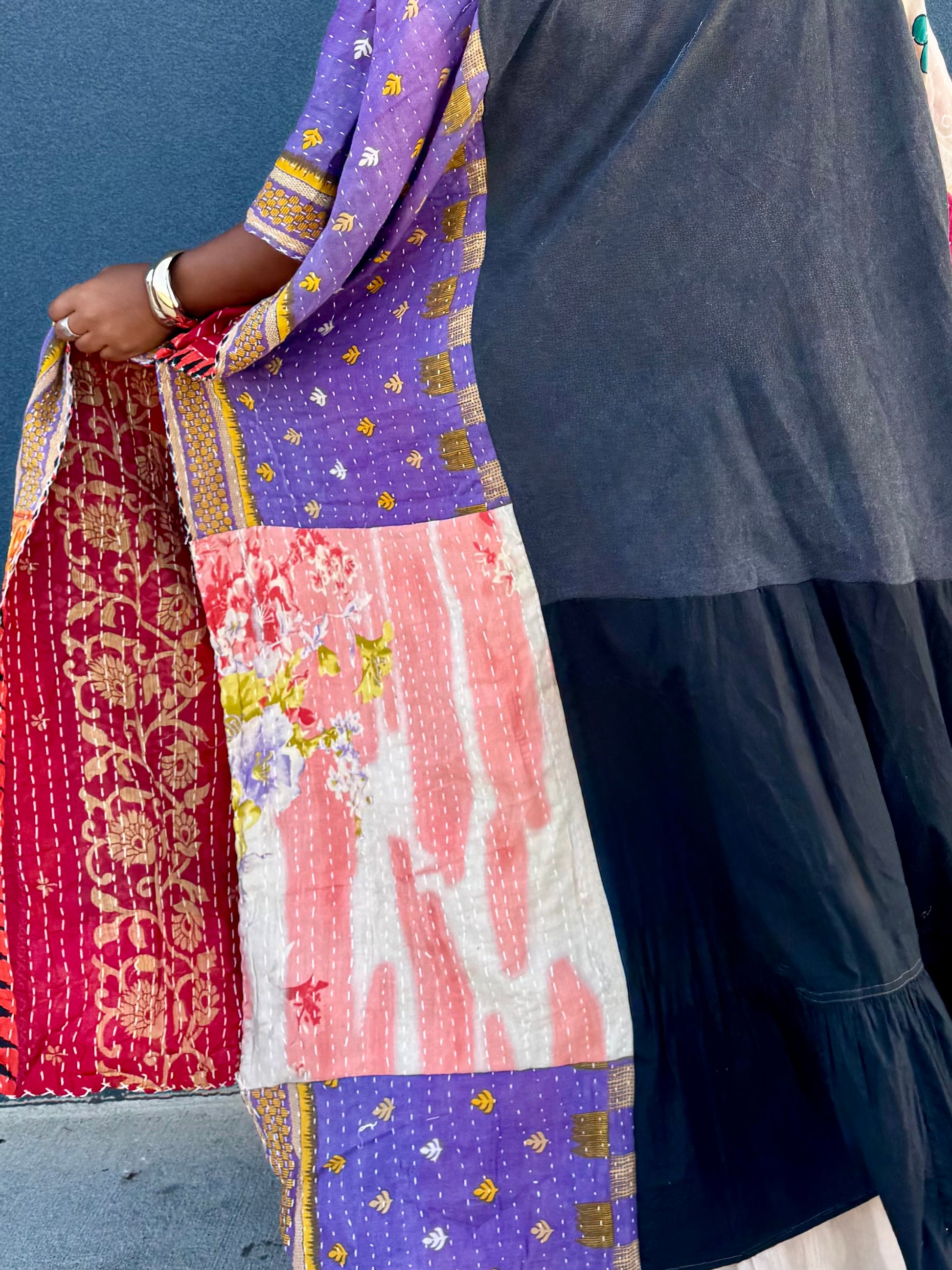 - All fabrics are hand arranged and cut into pieces to make a beautiful dress.